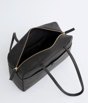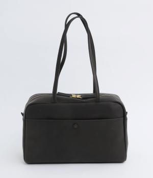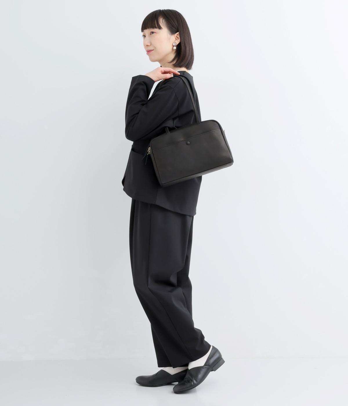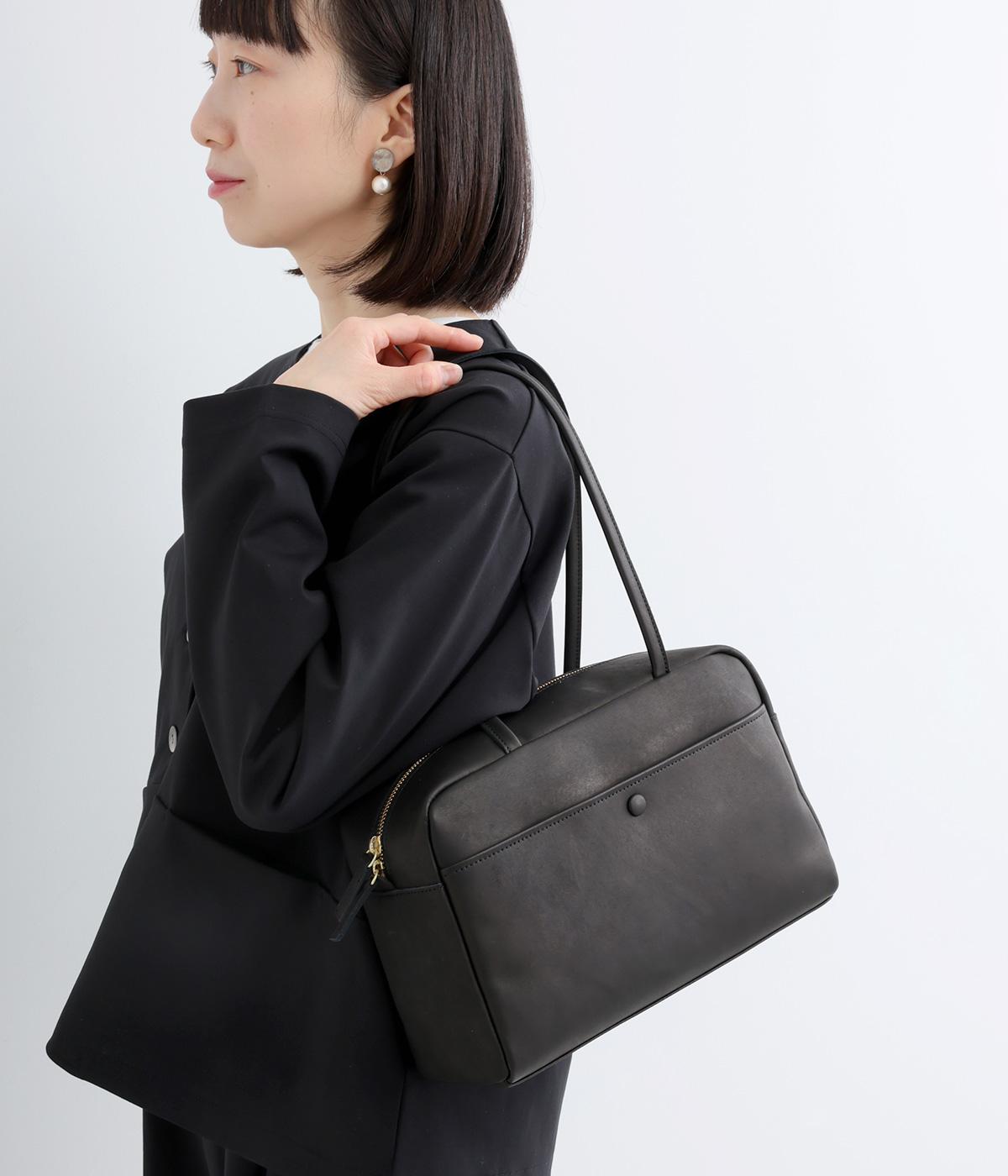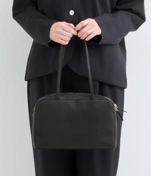 細身のハンドルが洗練された印象をもたらし、肩まわりをすっきりと見せます。本体と同素材のくるみボタンがさりげないアクセントに。しっかりとしたマチを備え、安心の収納力を確保しました。どんなスタイリングにもなじむシンプルなデザインです。