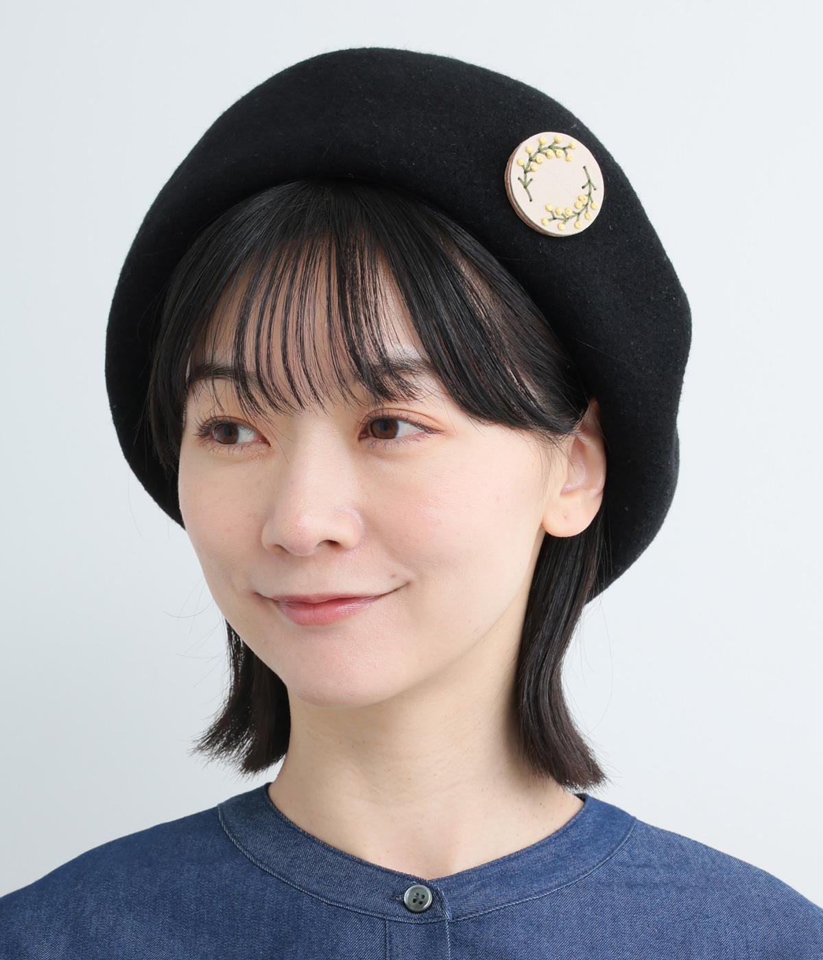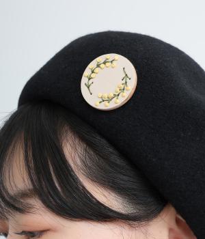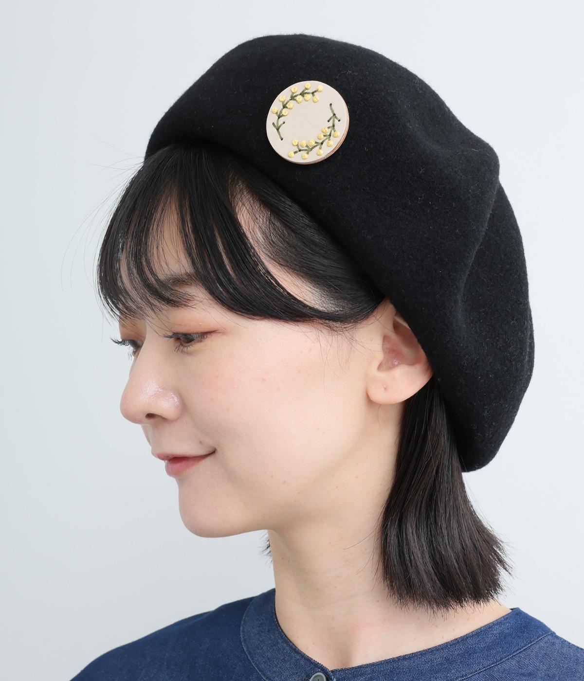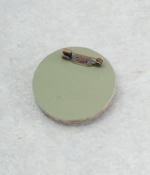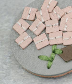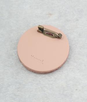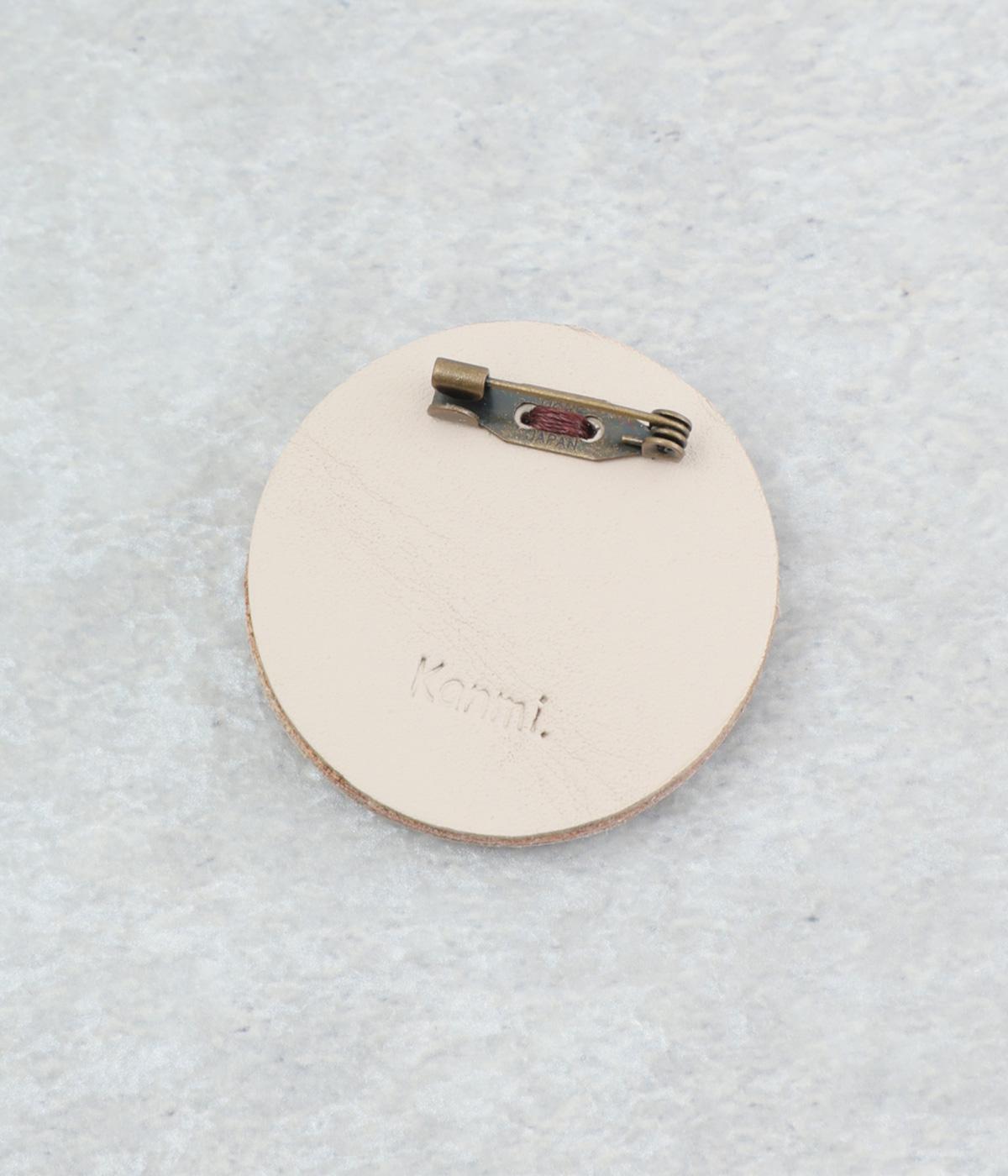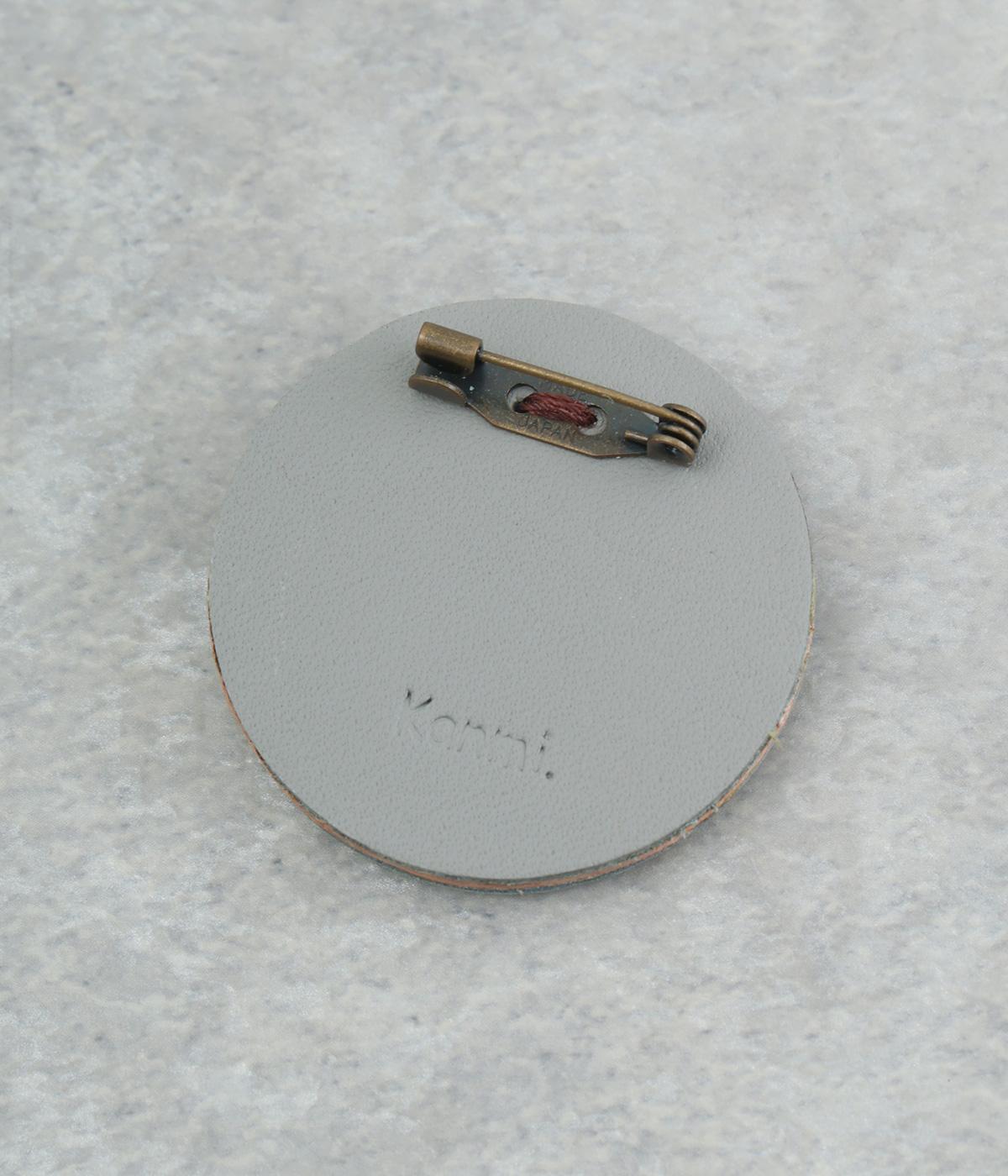 丸いフレームに草花モチーフがほっこりとあたたかみのあるブローチ。小ぶりなサイズながら、厚みと立体的な刺しゅうが目を惹き、切り込みを入れた革に1本ずつ糸を通す手刺しゅうのこだわりが存在感へとつながります。