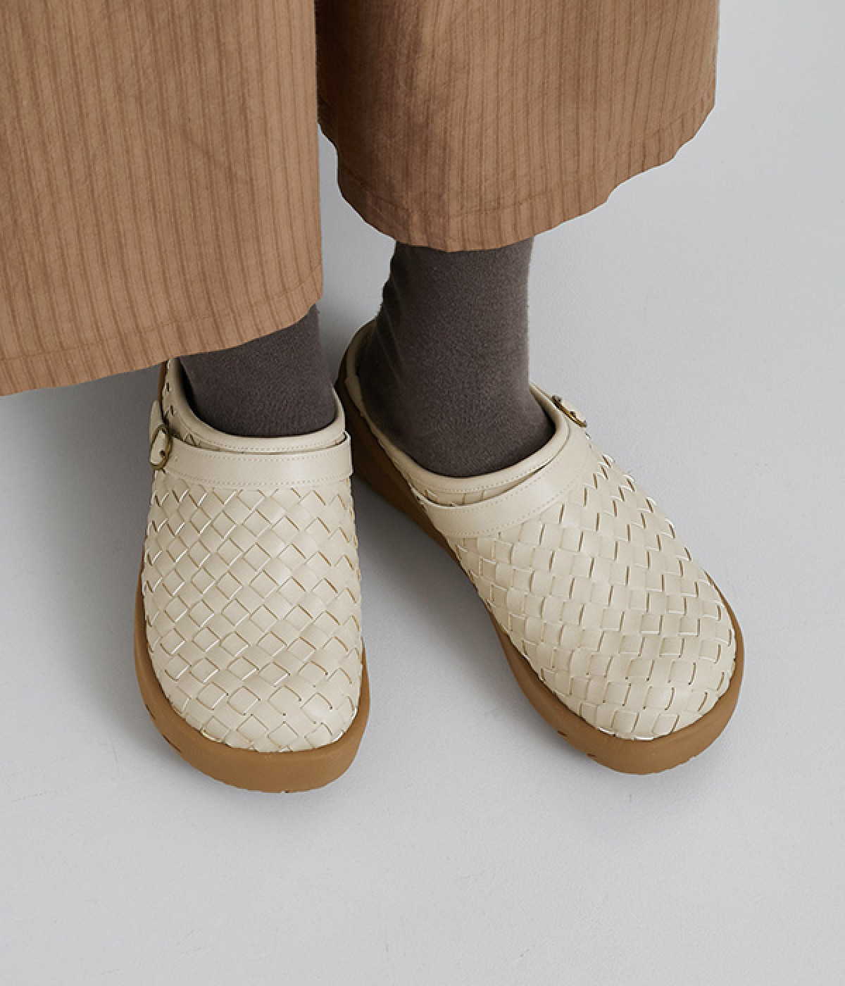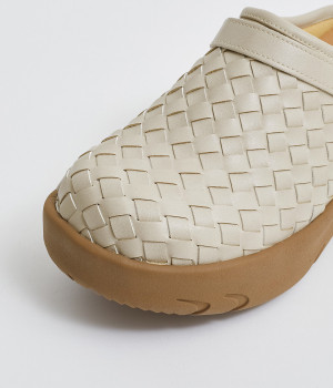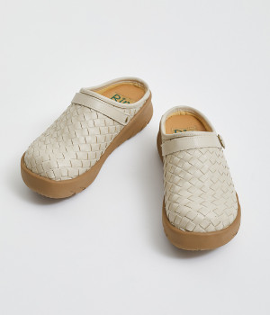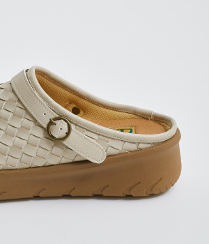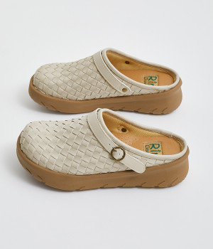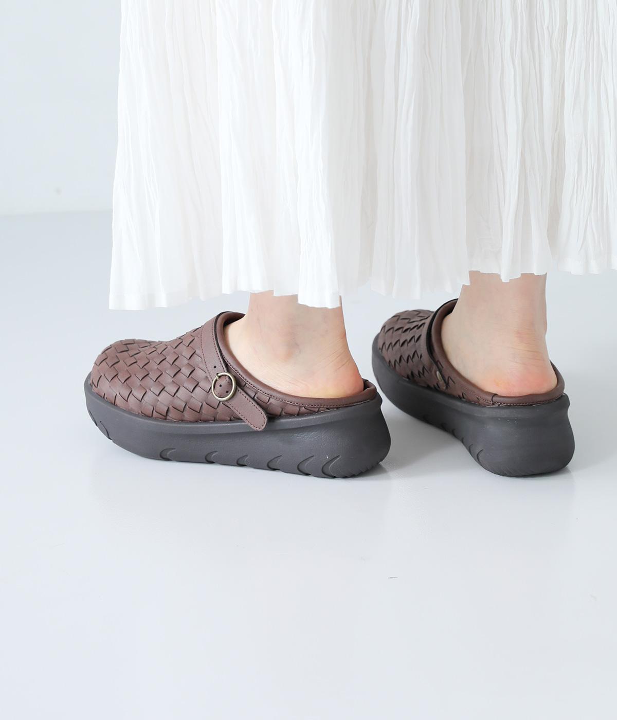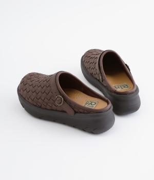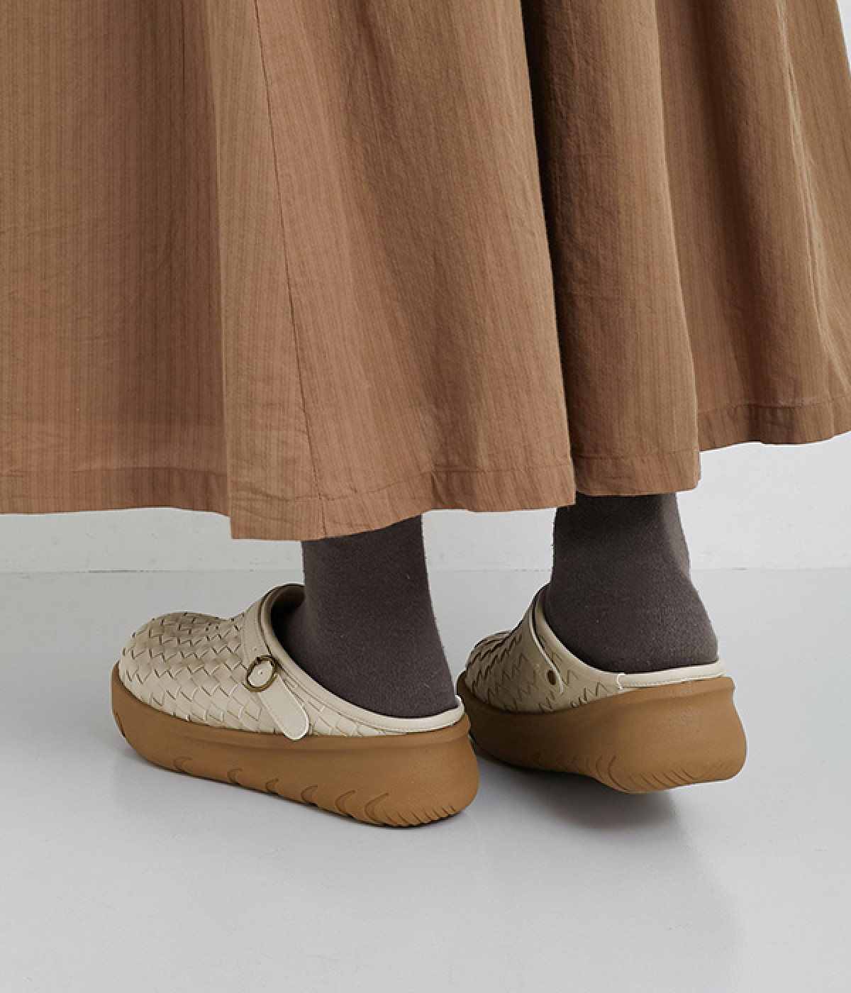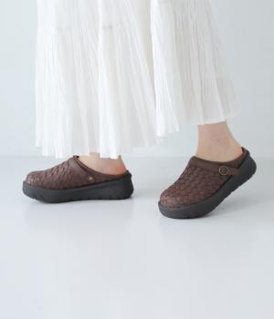 コロンとした丸みのあるフォルムが愛らしいサボ。丁寧に編みこまれたメッシュが奥行きのある表情を与えています。脚をすっきりと見せてくれる、厚みを持たせたソールが◎。さっと足を入れて気軽にはけるのもグッドポイントです。