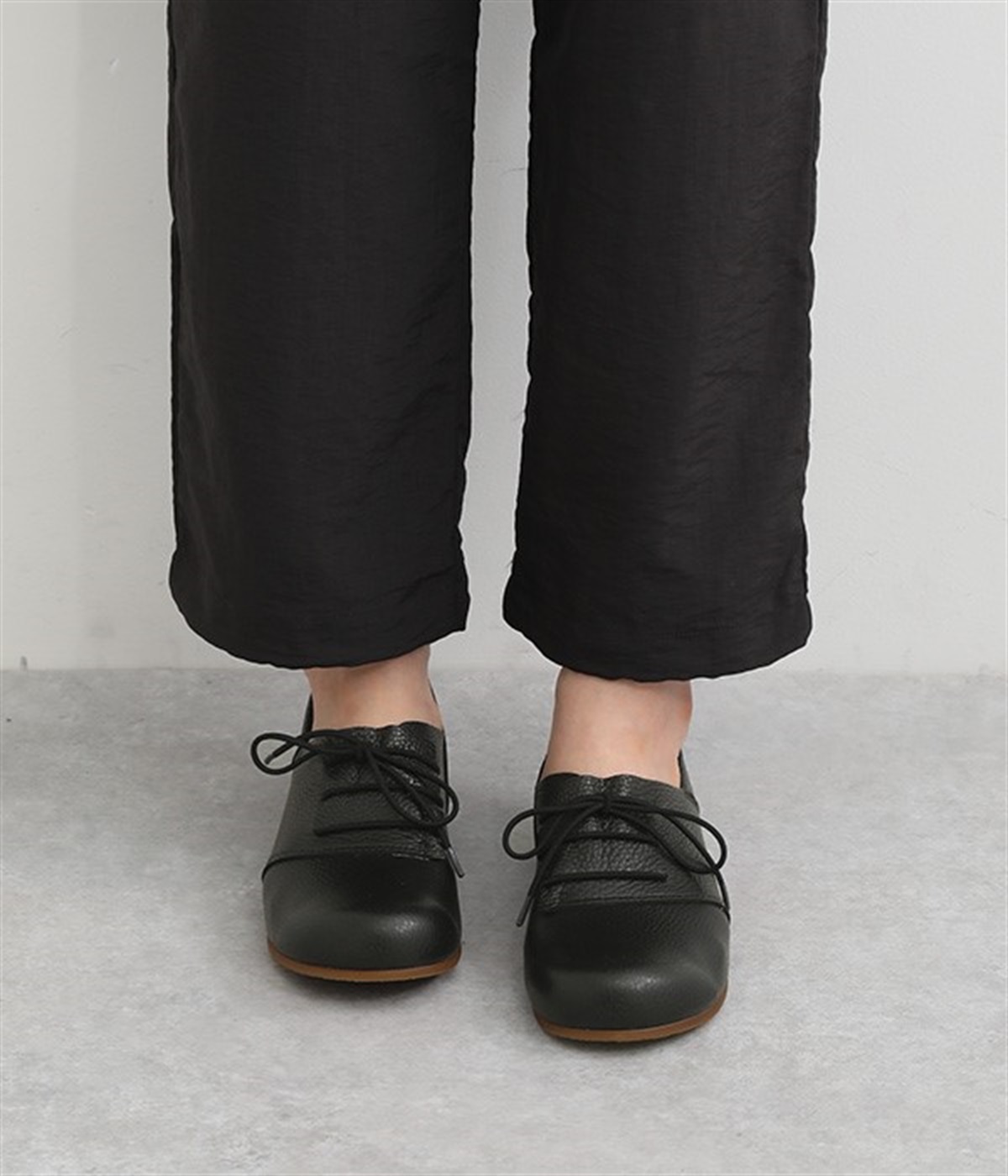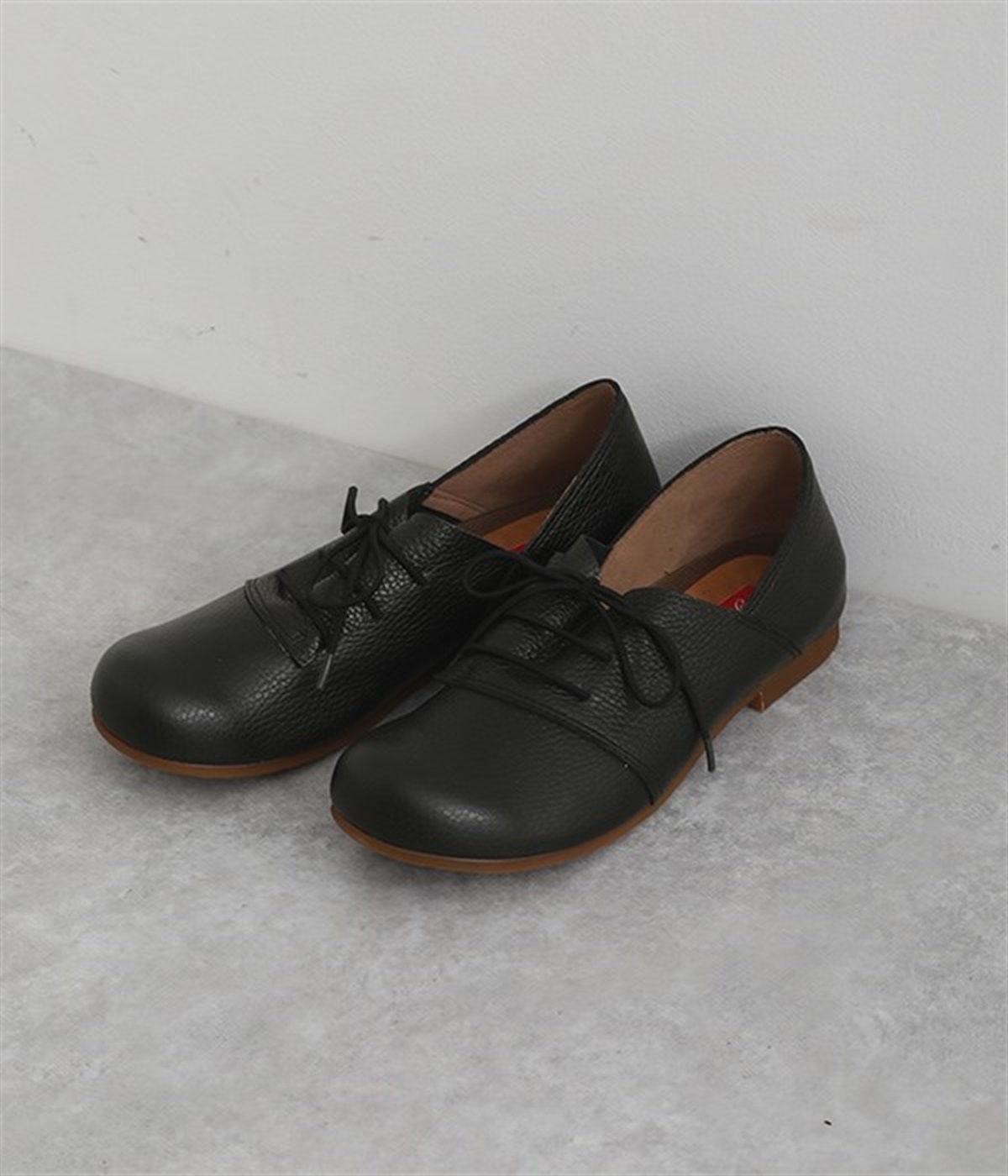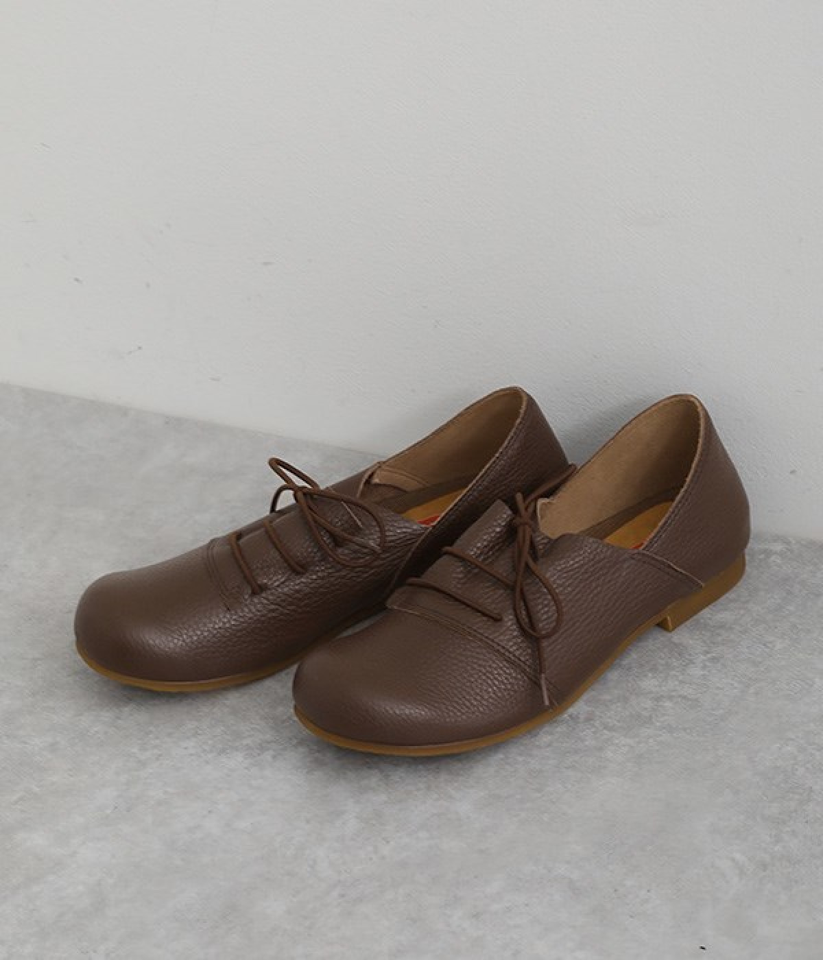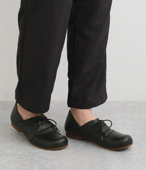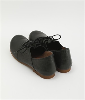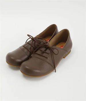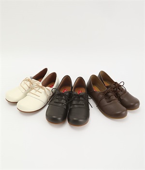 コロンと丸いフォルムが可愛い軽量レースアップシューズ。数ある中から厳選した柔らかな質感の本革素材を使用しました。優しい足当たりで履き込むほどに革の質感や表情の変化を楽しめます。レースアップとステッチ使いがシンプルなデザインをマニッシュな印象に。横幅ゆったりの4Eワイズ設計なので、甲高幅広の方も安心して選べます。取り外し可能なふわふわのインソールで長時間履いても疲れにくいのも◎。タイトボトムスと合わせてメンズライクにコーディネートしたり、マーメイドシルエットのロングスカートと合わせてキレイめに仕上げても素敵です。