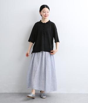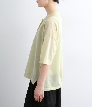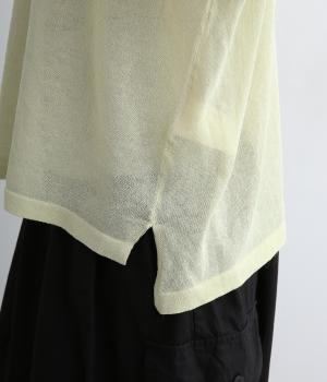強撚糸で仕立てたニットは、シャリ感のあるさらりとした肌ざわりが魅力。シアーな質感が軽やかな印象を添え、風を通して心地よく着用できます。のびのよいやわらかな編み地が自然と体になじみ、動きやすさも◎