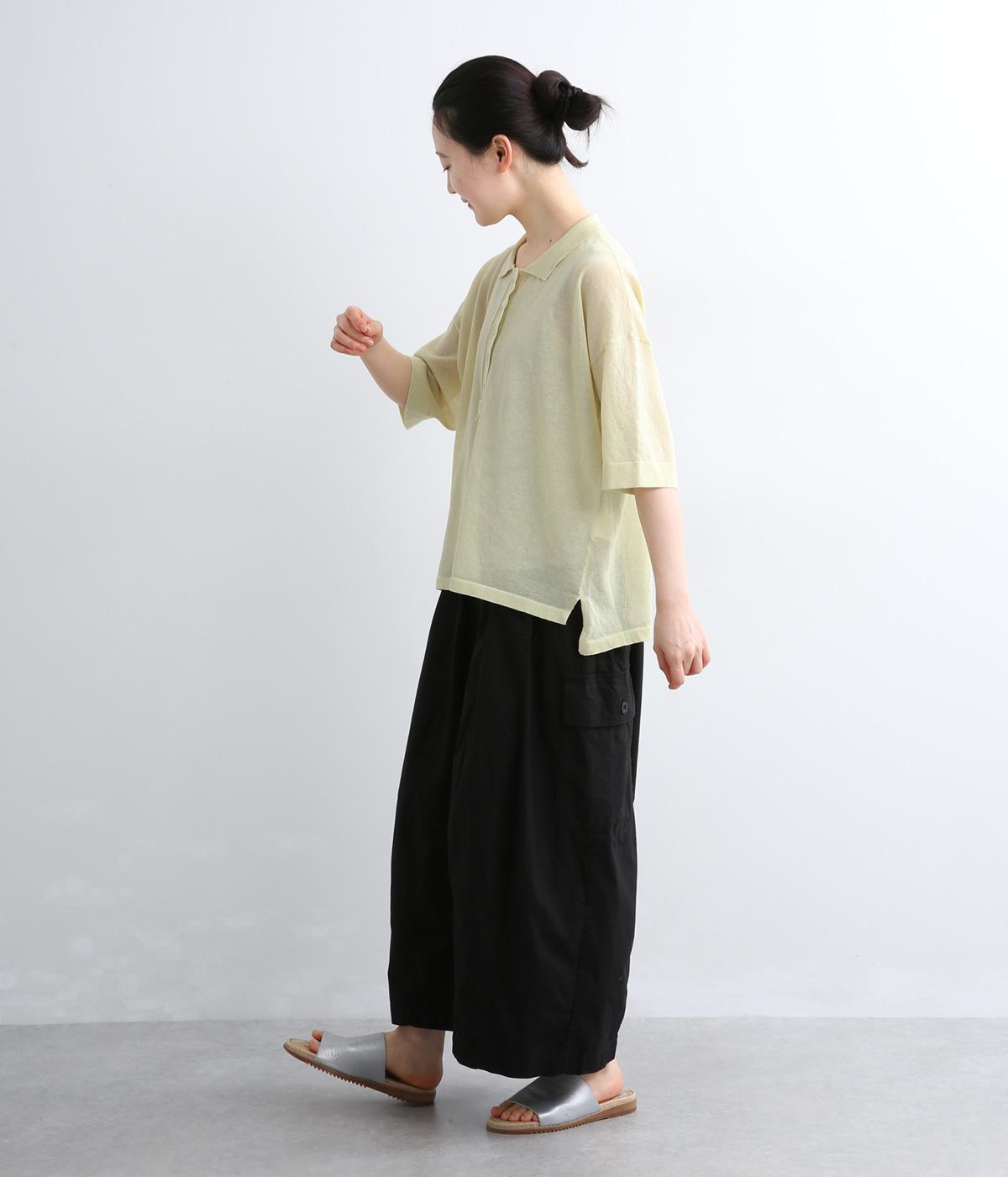 ゆったりとしたシルエットで、リラックス感のある佇まいに仕上げたニットポロシャツです。前後差をつけた裾にスリットを添えて、軽やかさをプラスしました。やや長めの袖丈が、腕のラインをさりげなくカバー。ポロデザインのきちんと感を残しつつ、肩の力を抜いたナチュラルな着こなしにも合わせやすい一枚です。
