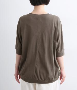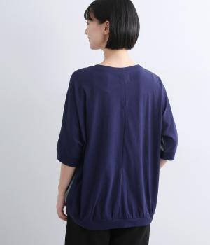 さらりとした肌ざわりと、しなやかな落ち感が魅力のレーヨン混素材です。ほのかに凹凸のある表面感が肌離れをよくし、汗ばむ季節も快適な着心地に。背面はやわらかなコットンカットソーで仕立て、のびのよさとリラックス感を備えています。