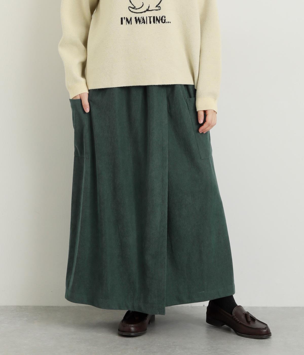 フロントを重ね合わせたラップ仕様が、やさしいゆれ感を生む一着。スカート見えするシルエットながら、パンツならではの動きやすさも備えています。腰の位置から生地を重ねているので、ウエストまわりがもたつかないのも◎。大きめのパッチポケットは実用性もあり、デイリー使いに活躍します。