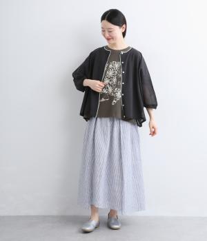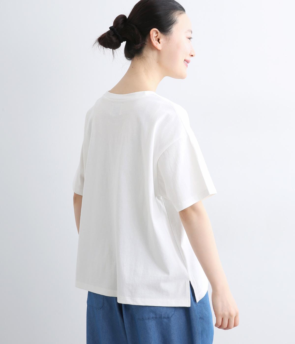 ドライなタッチが心地よい、コットン天竺素材です。くたっとしたしなやかさもあり、肌にやさしくなじみます。吸湿性と通気性に優れ、汗ばむ季節にも快適な着心地に。ほどよくのびて動きやすく、デイリーに頼れる生地感です。