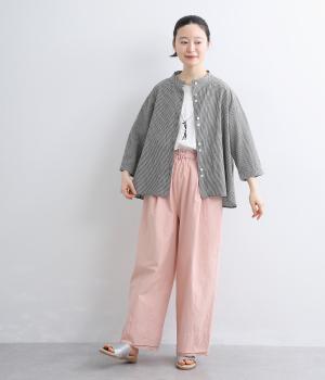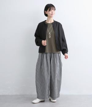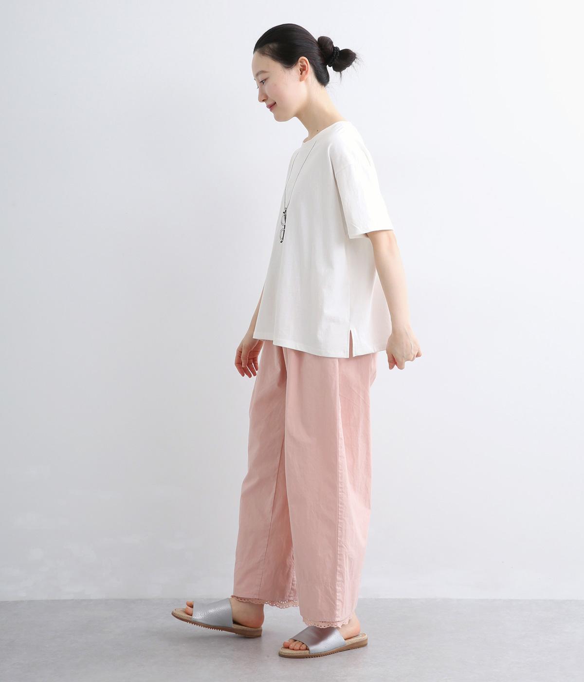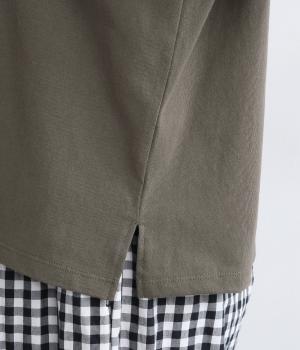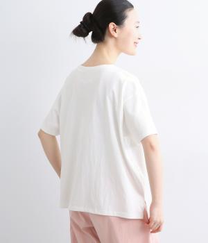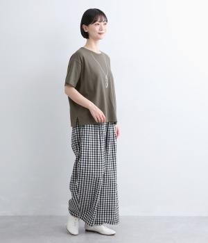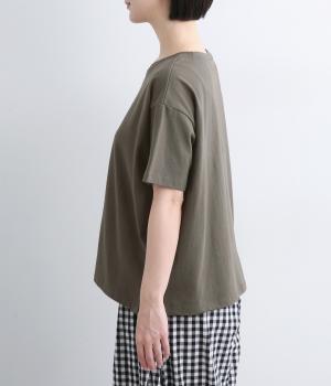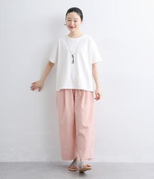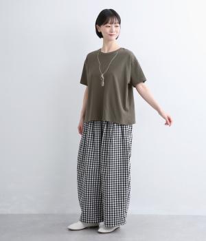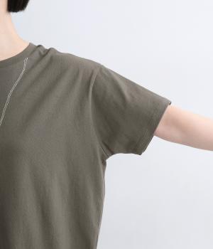 ドライなタッチが心地よい、コットン天竺素材です。くたっとしたしなやかさもあり、肌にやさしくなじみます。吸湿性と通気性に優れ、汗ばむ季節にも快適な着心地に。ほどよくのびて動きやすく、デイリーに頼れる生地感です