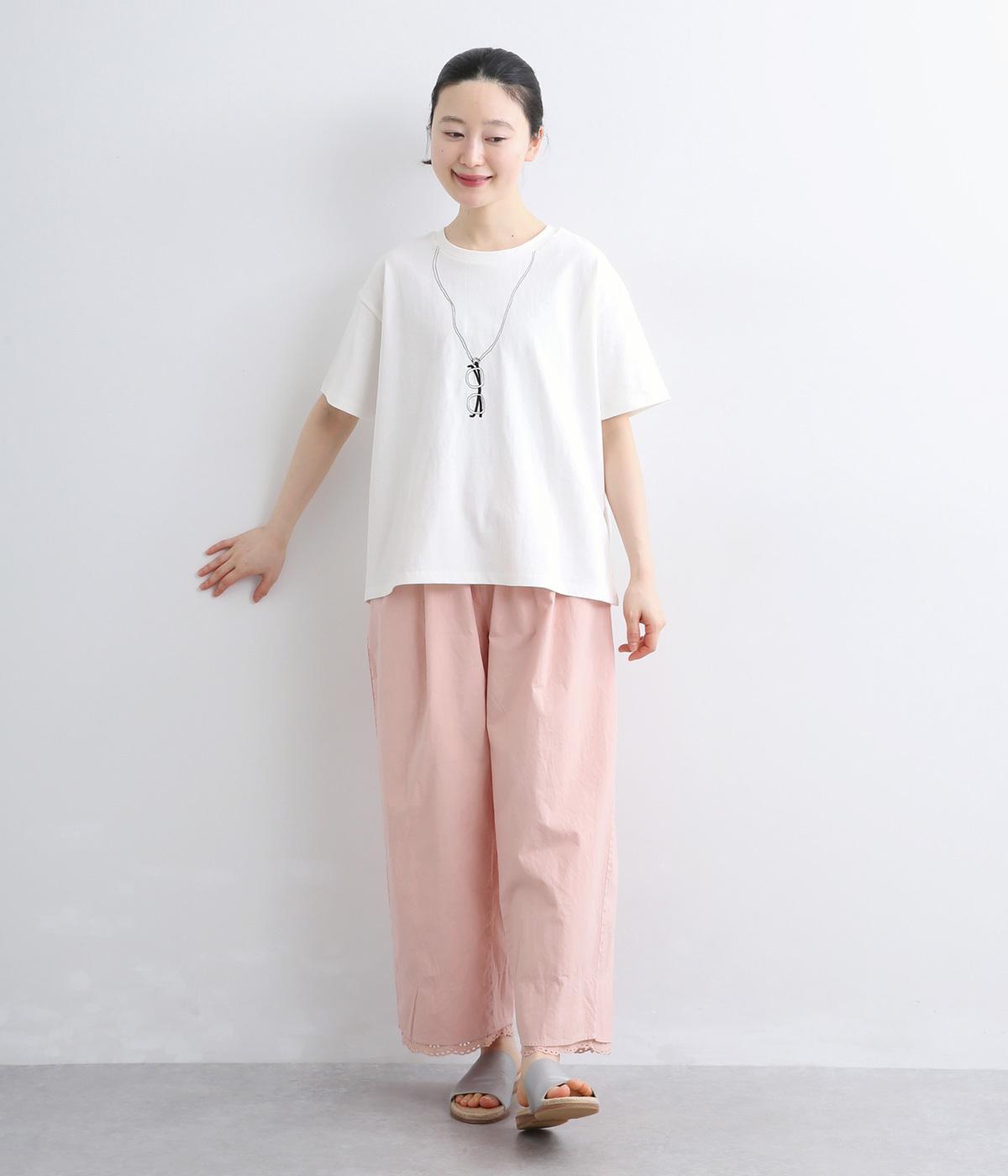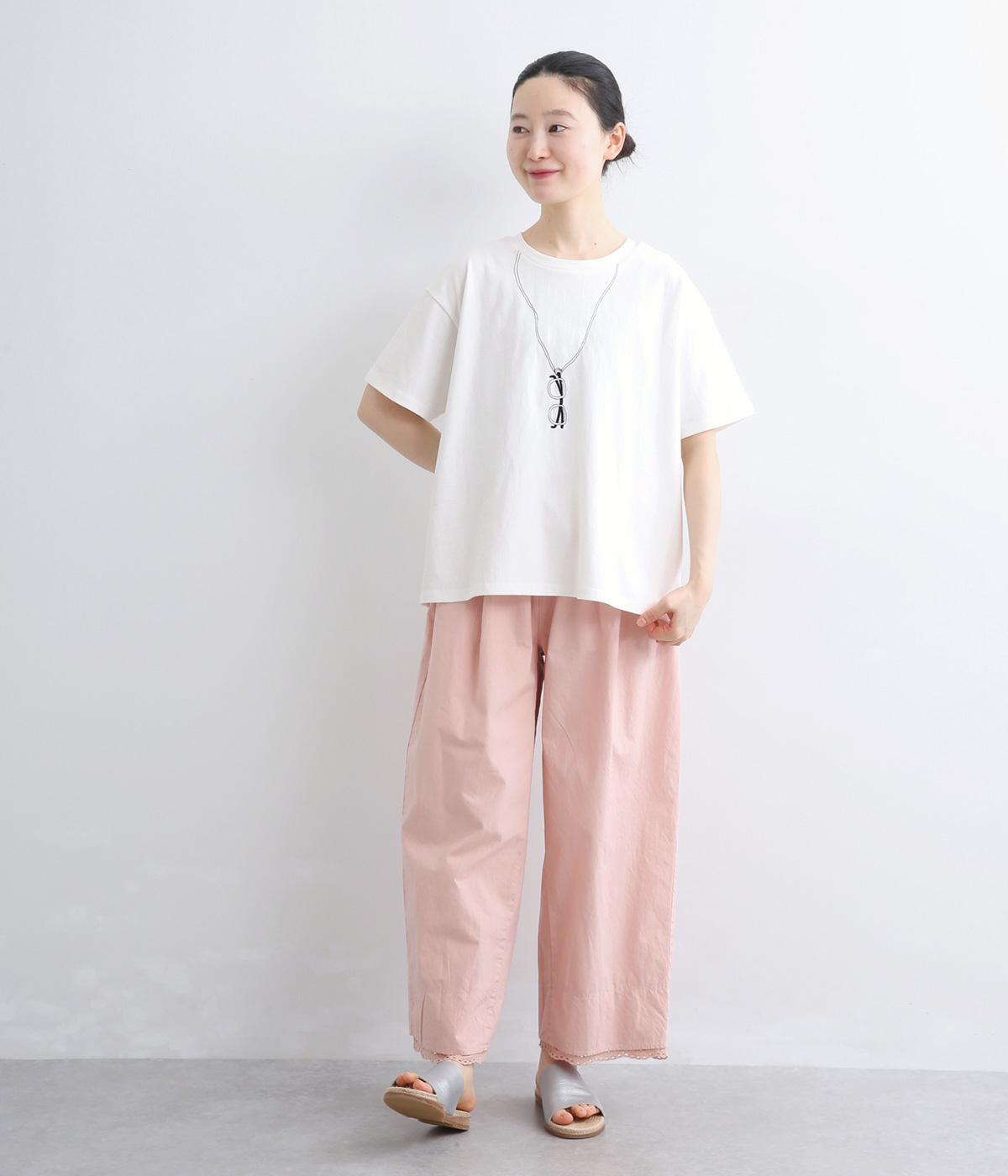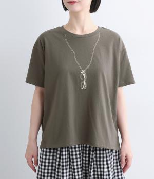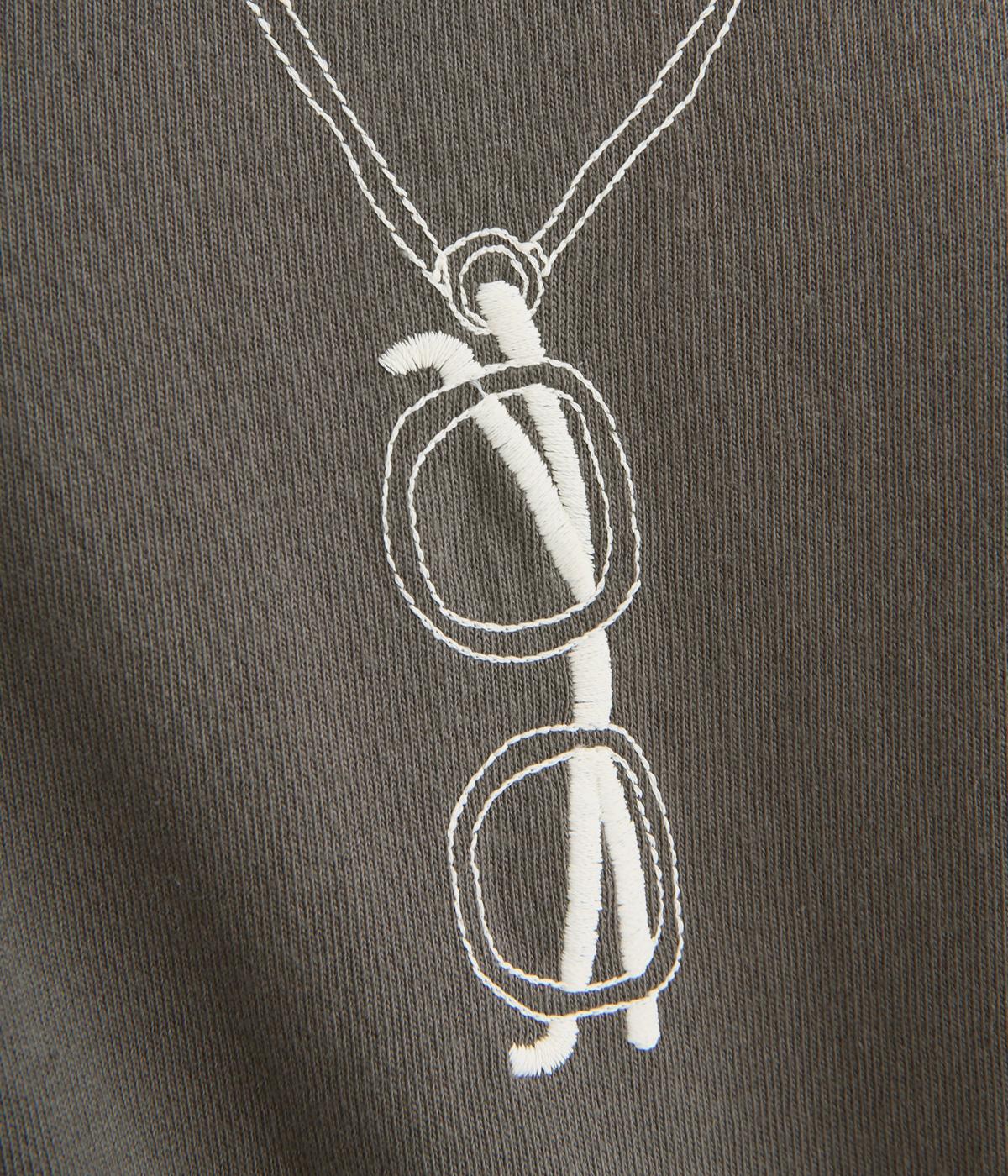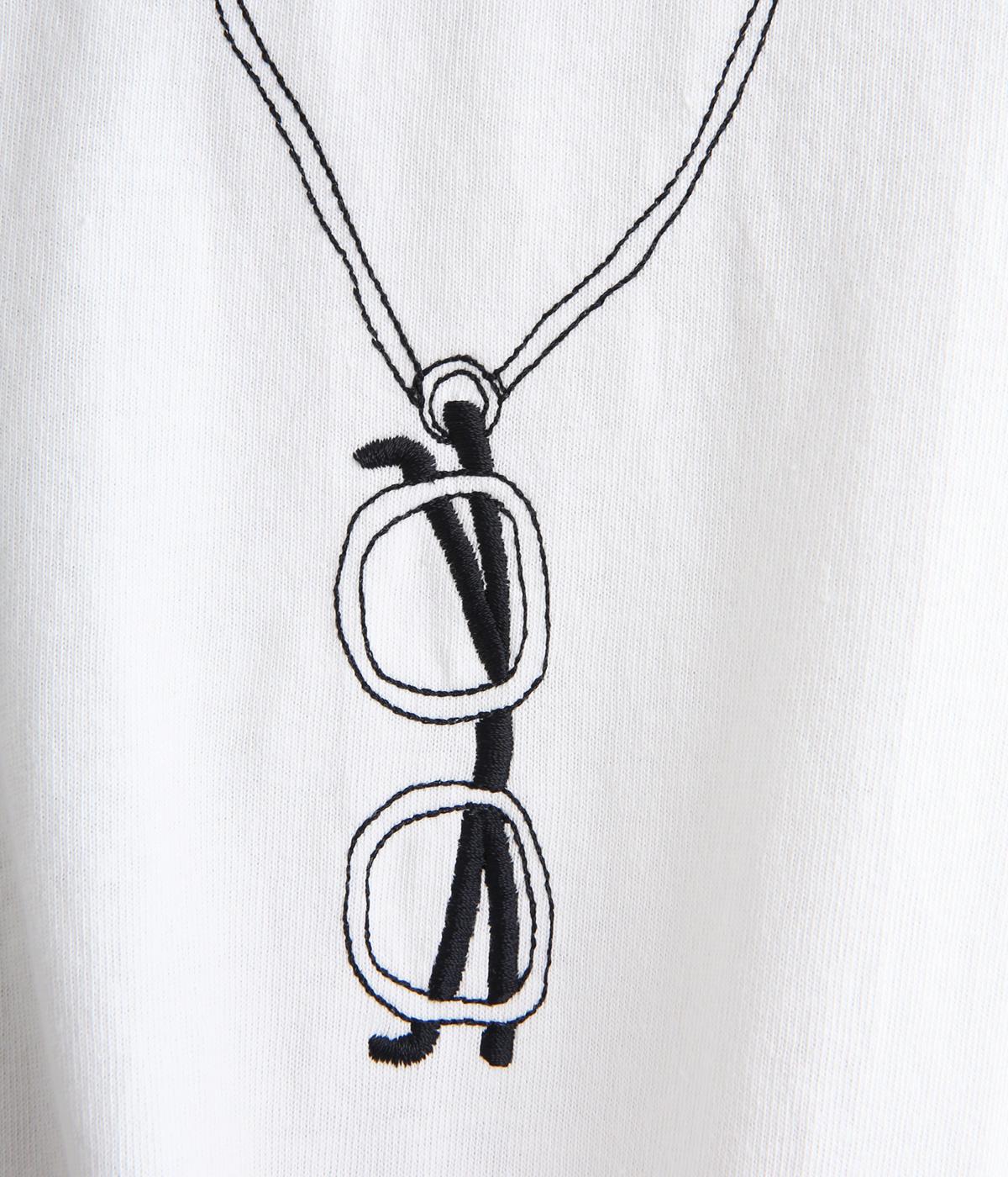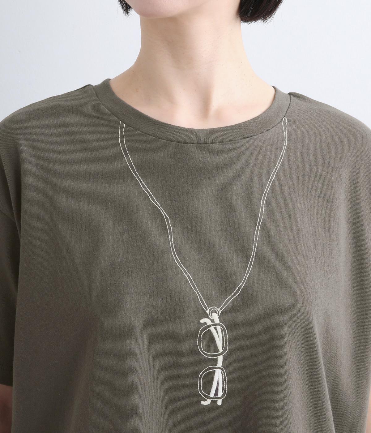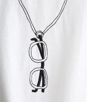 まるでメガネをぶら下げているかのように見える、ユニークな刺しゅうTシャツです。ほどよくゆとりのあるシルエットと裾のスリットで、幅広いボトムスに合わせやすいのも◎。シャツやカーディガンのインナーとしてメガネをちらりとのぞかせた、遊び心のあるコーディネートもおすすめです。