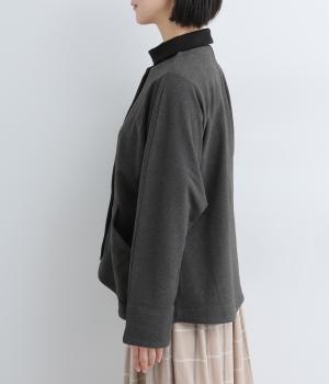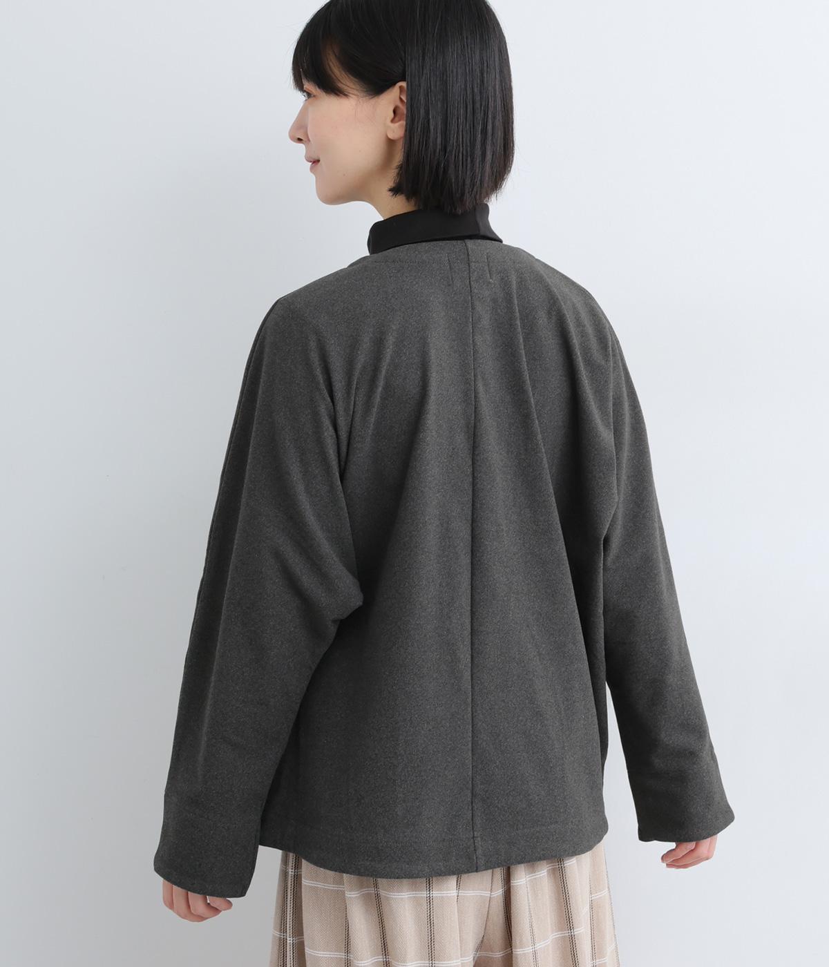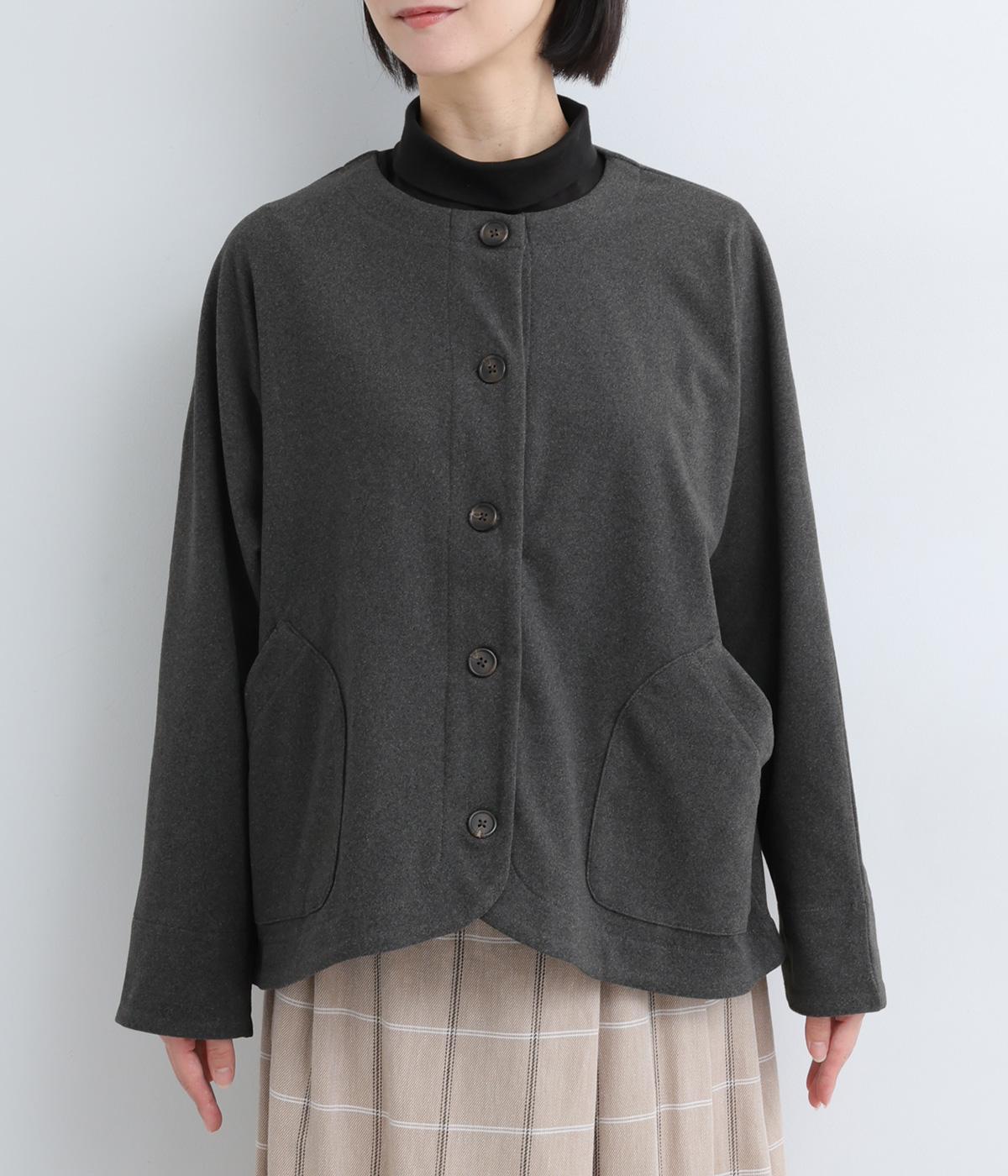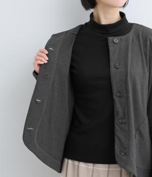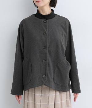 カジュアルにもきれいめにも羽織れるシンプルさが魅力のノーカラージャケット。身頃と袖の切り替えを省くことで、体のラインになじみやすいきれいなドルマンスリーブを表現しました。形にこだわった上品見えするフロントのポケットにも注目です。