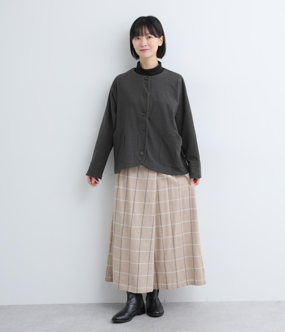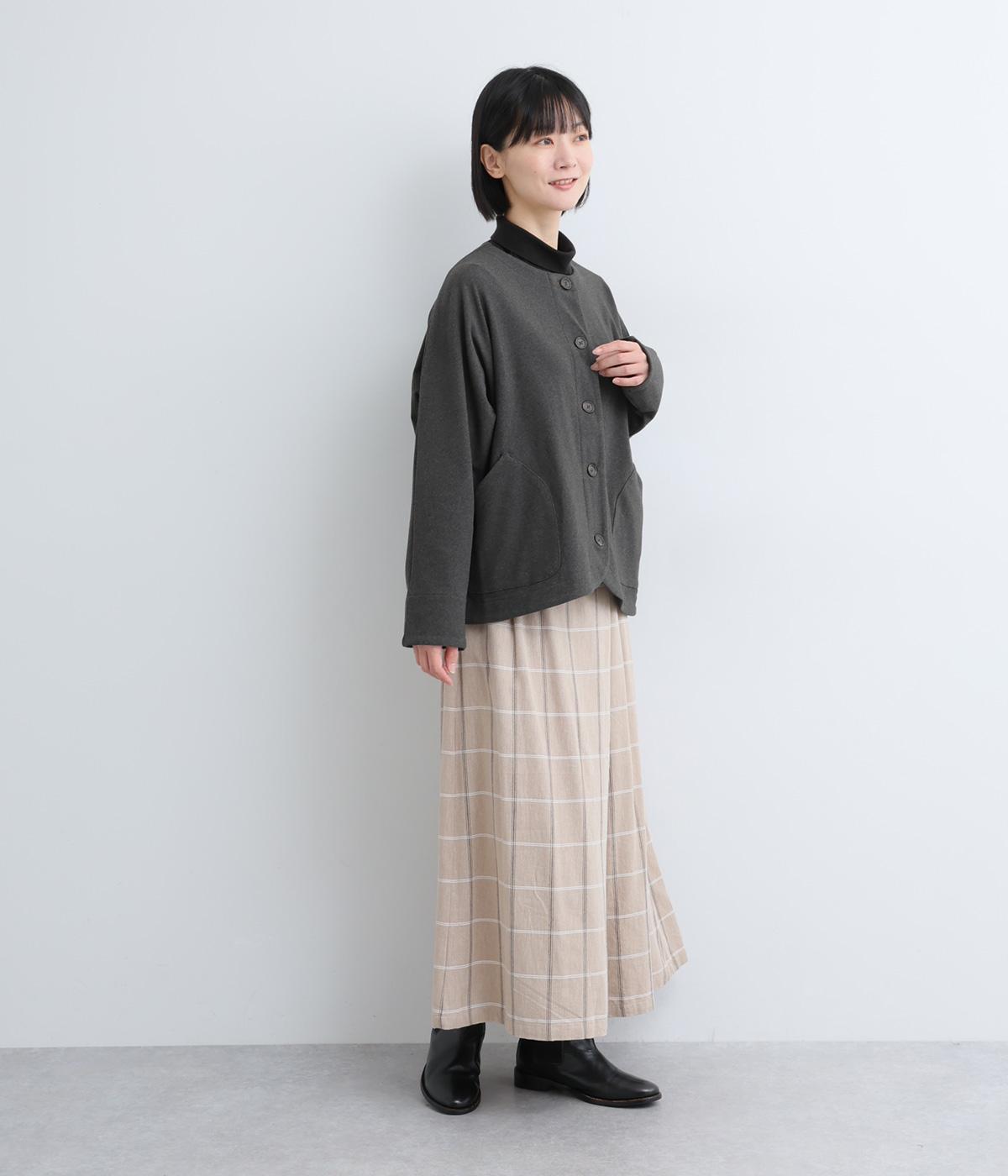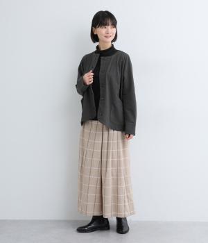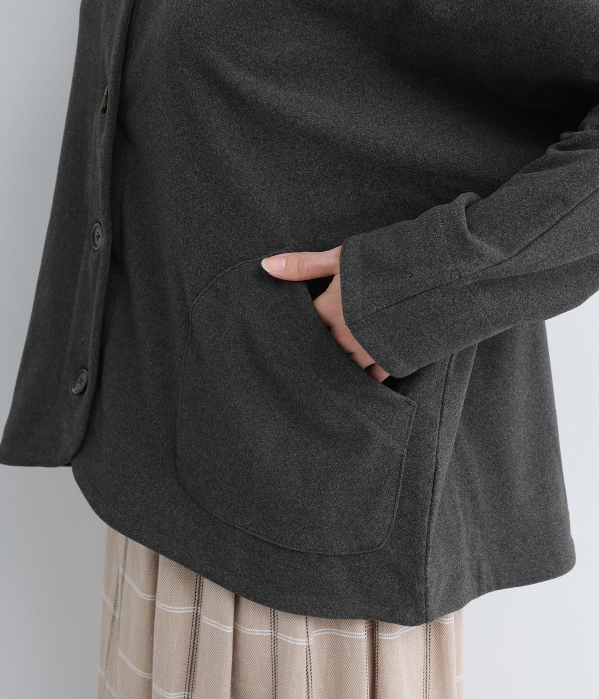 カジュアルにもきれいめにも羽織れるシンプルさが魅力のノーカラージャケット。身頃と袖の切り替えを省くことで、体のラインになじみやすいきれいなドルマンスリーブを表現しました。形にこだわった上品見えするフロントのポケットにも注目です。