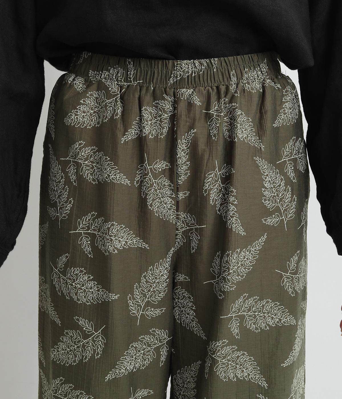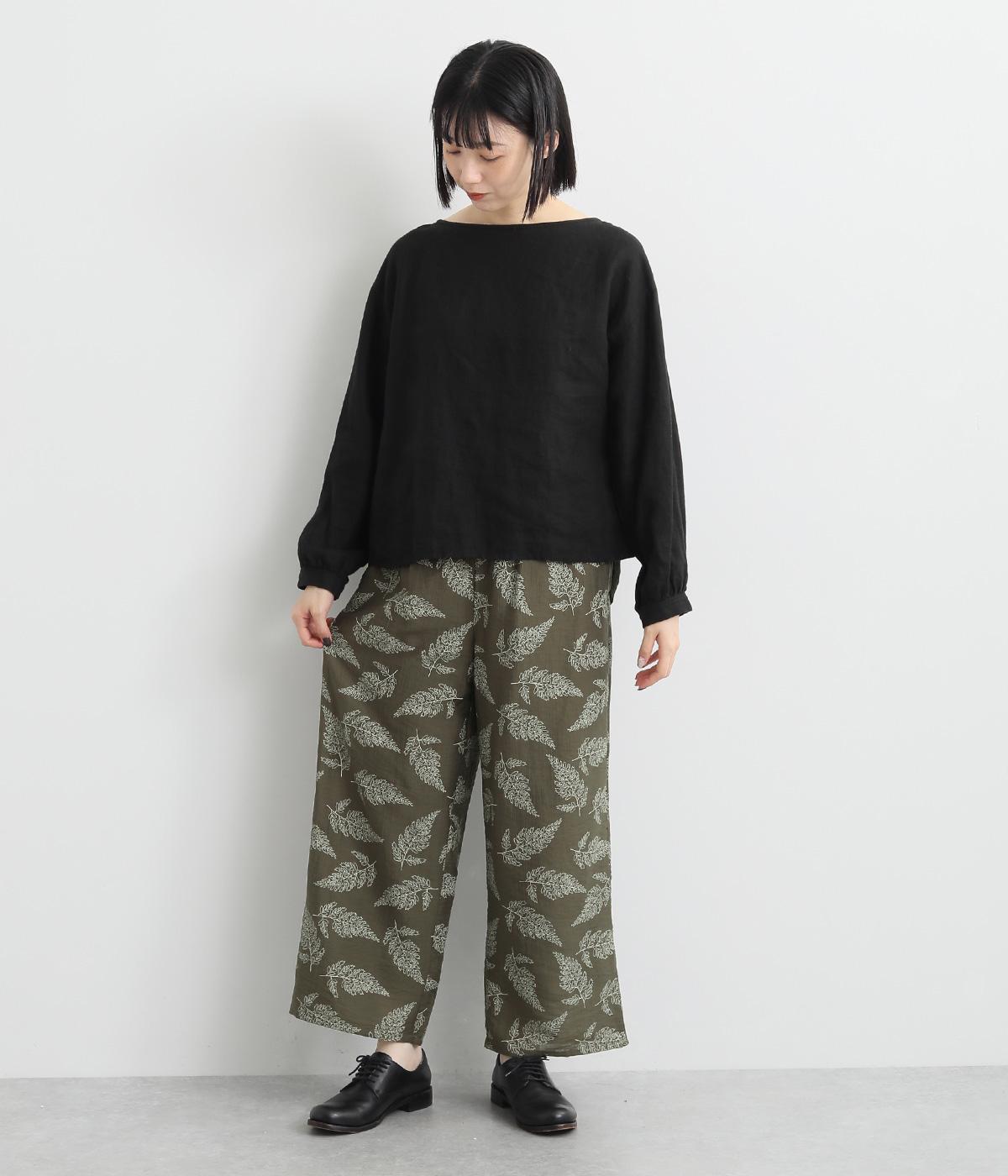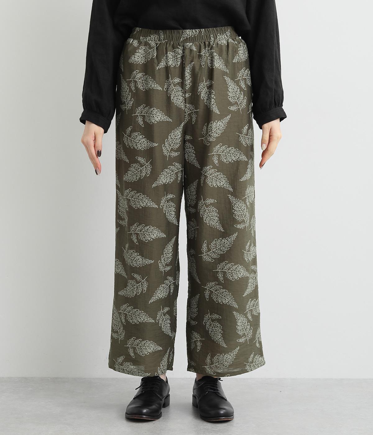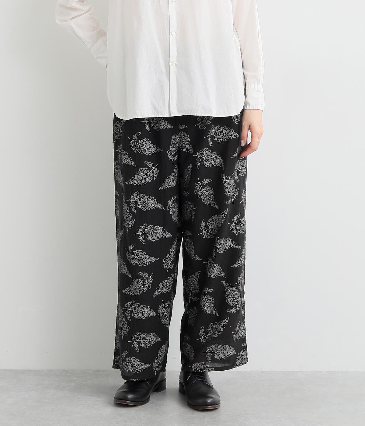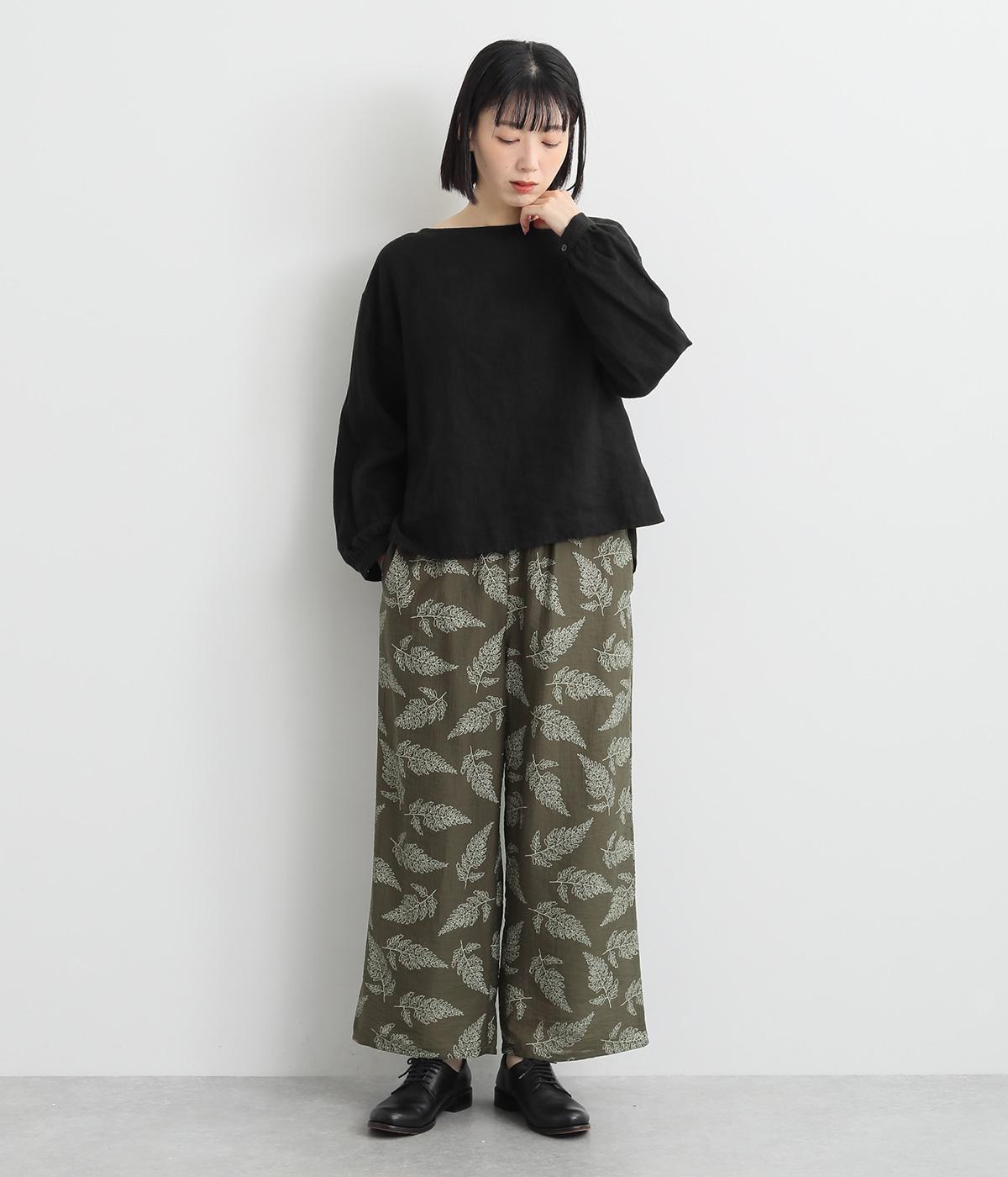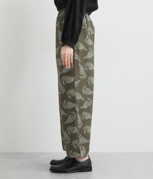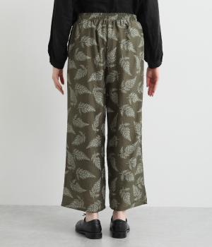 線画で表現したリーフ柄が、着こなしを品よくおしゃれに昇華するパンツです。適度にゆとりがありつつ脚をすっきりと見せてくれるセミワイドシルエットが◎。総ゴム仕様のウエスト内側に紐を通して、フィット感のあるイージーなはき心地を叶えてくれます。