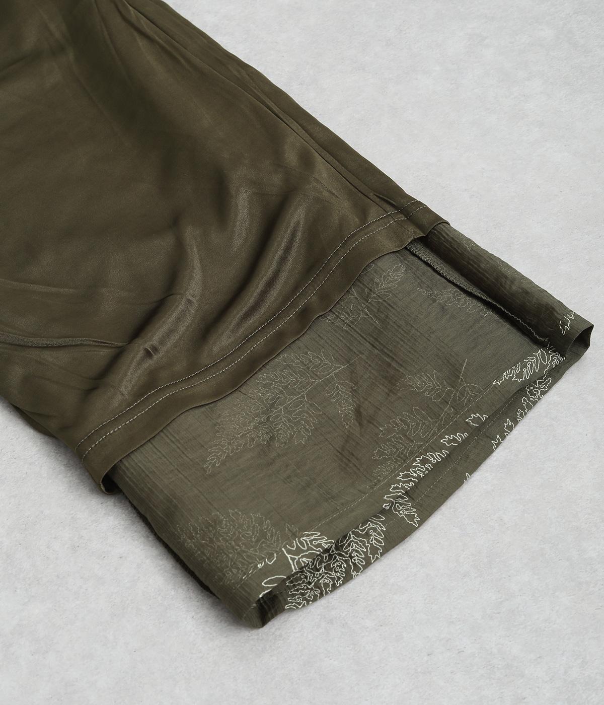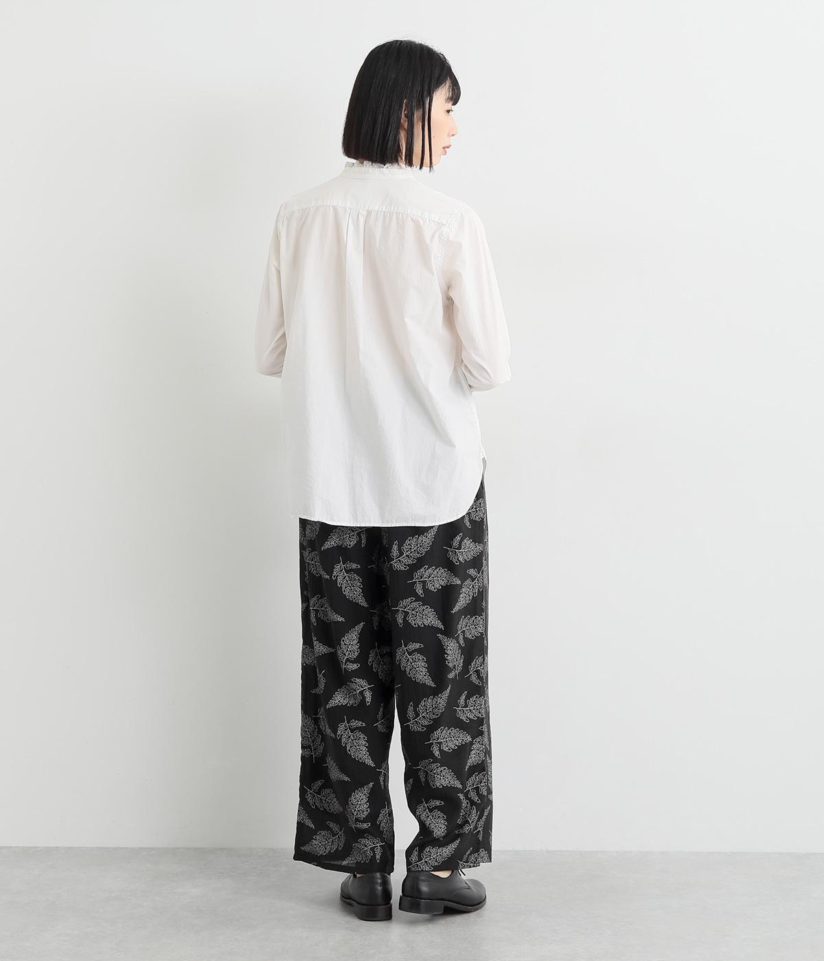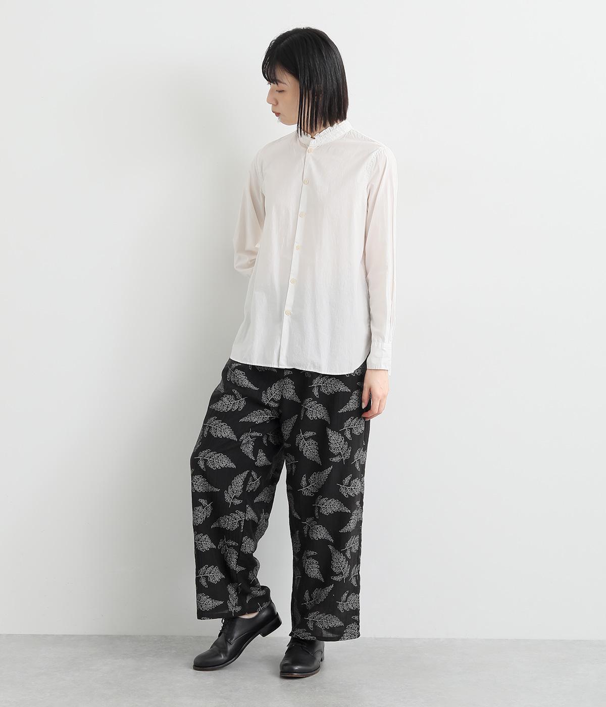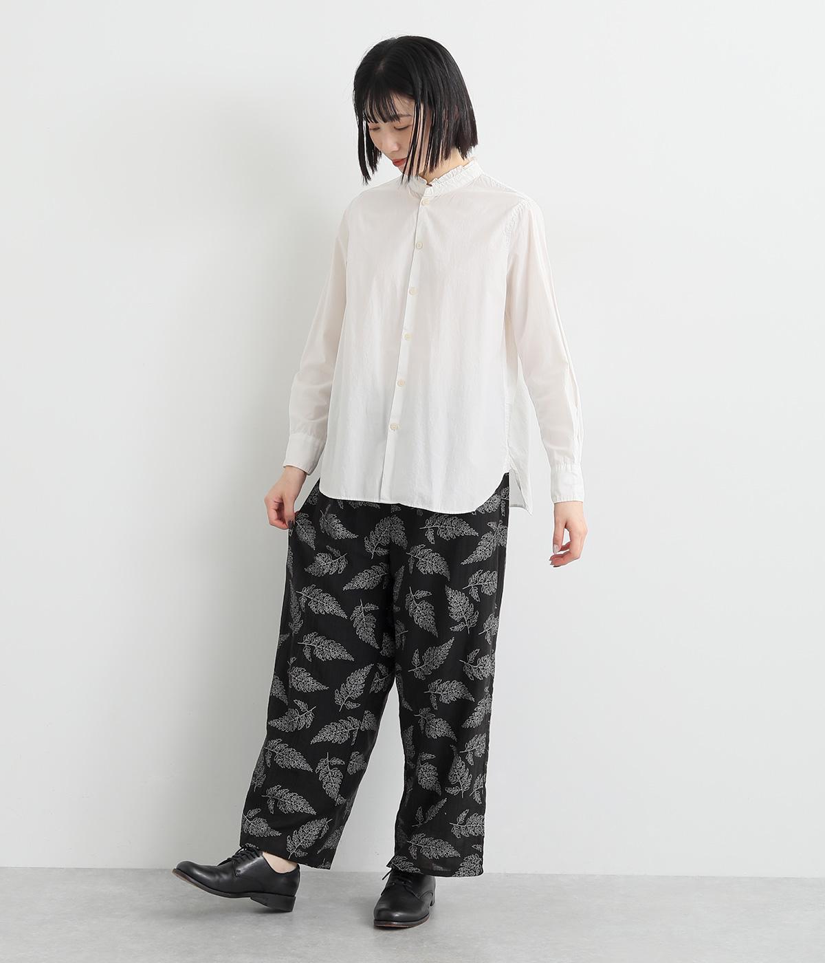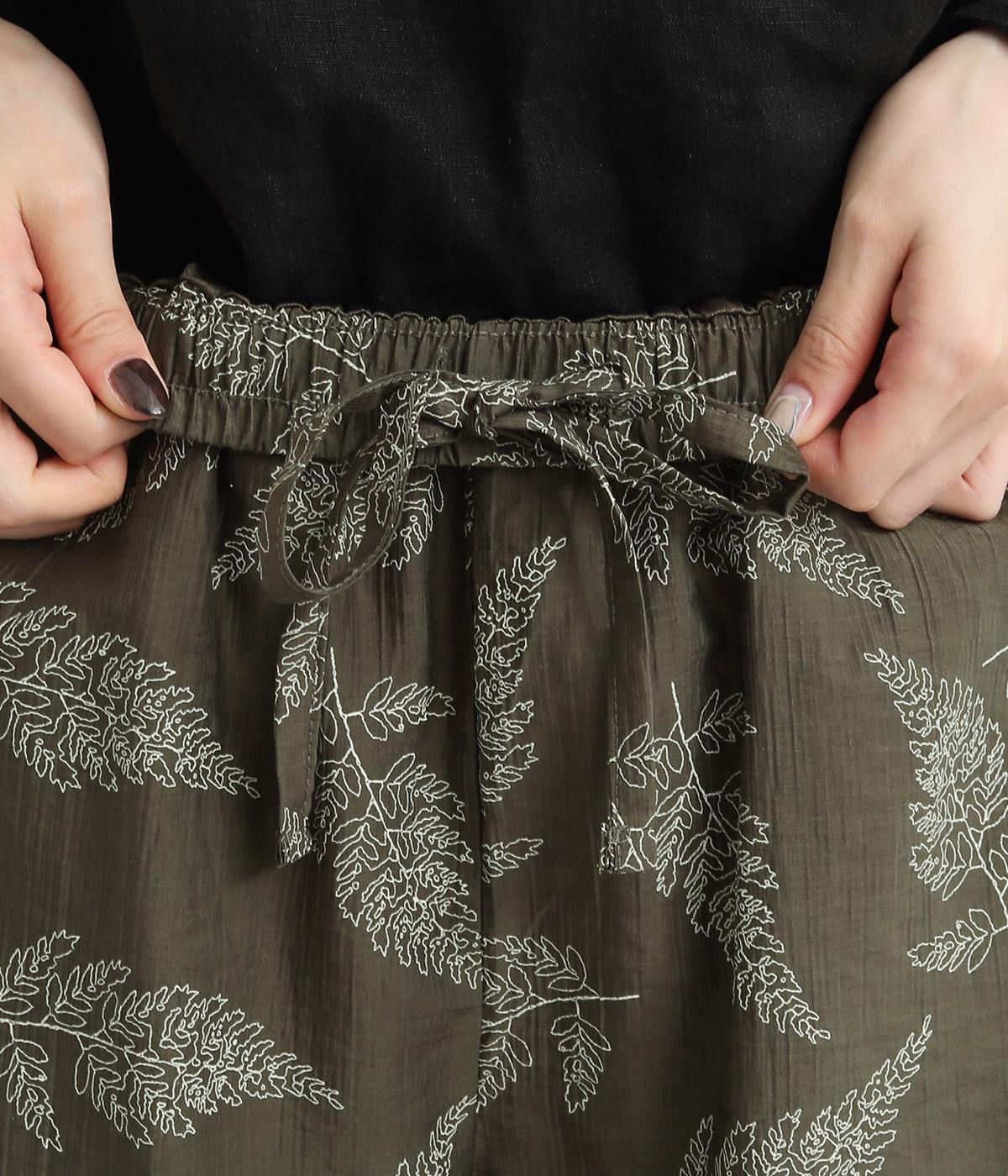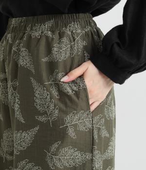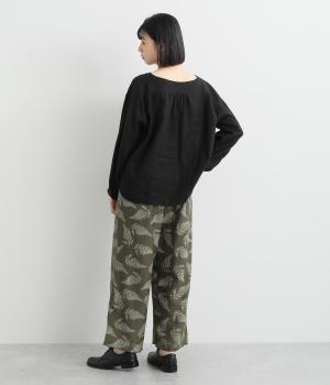 線画で表現したリーフ柄が、着こなしを品よくおしゃれに昇華するパンツです。適度にゆとりがありつつ脚をすっきりと見せてくれるセミワイドシルエットが◎。総ゴム仕様のウエスト内側に紐を通して、フィット感のあるイージーなはき心地を叶えてくれます。