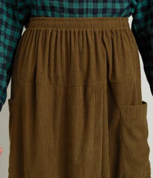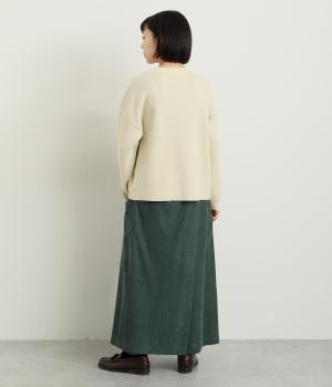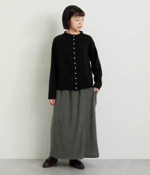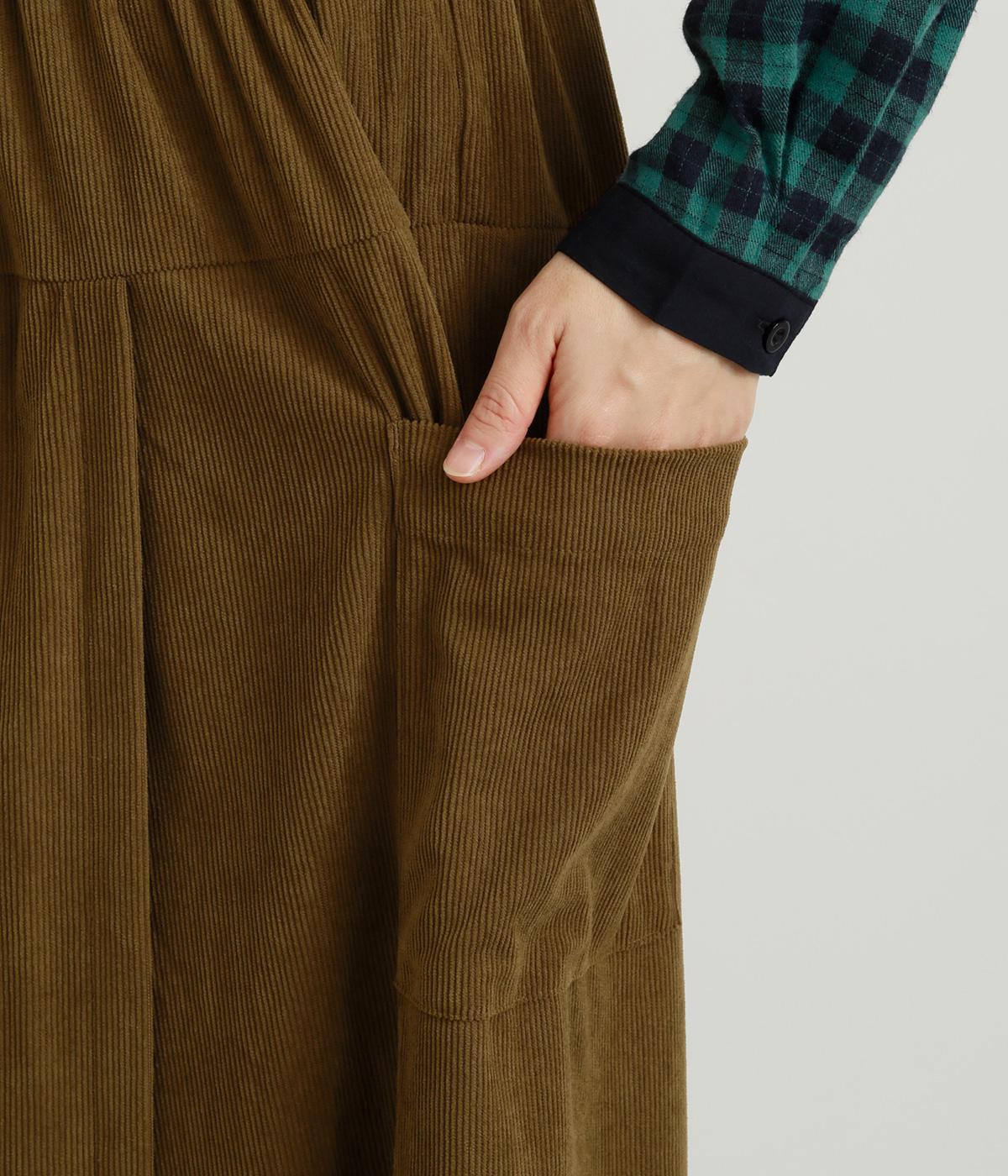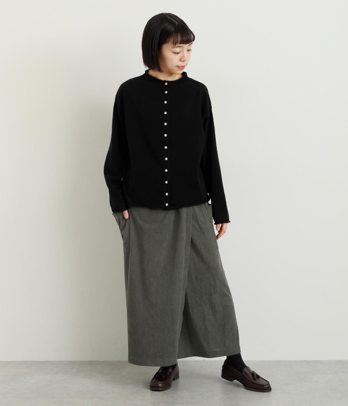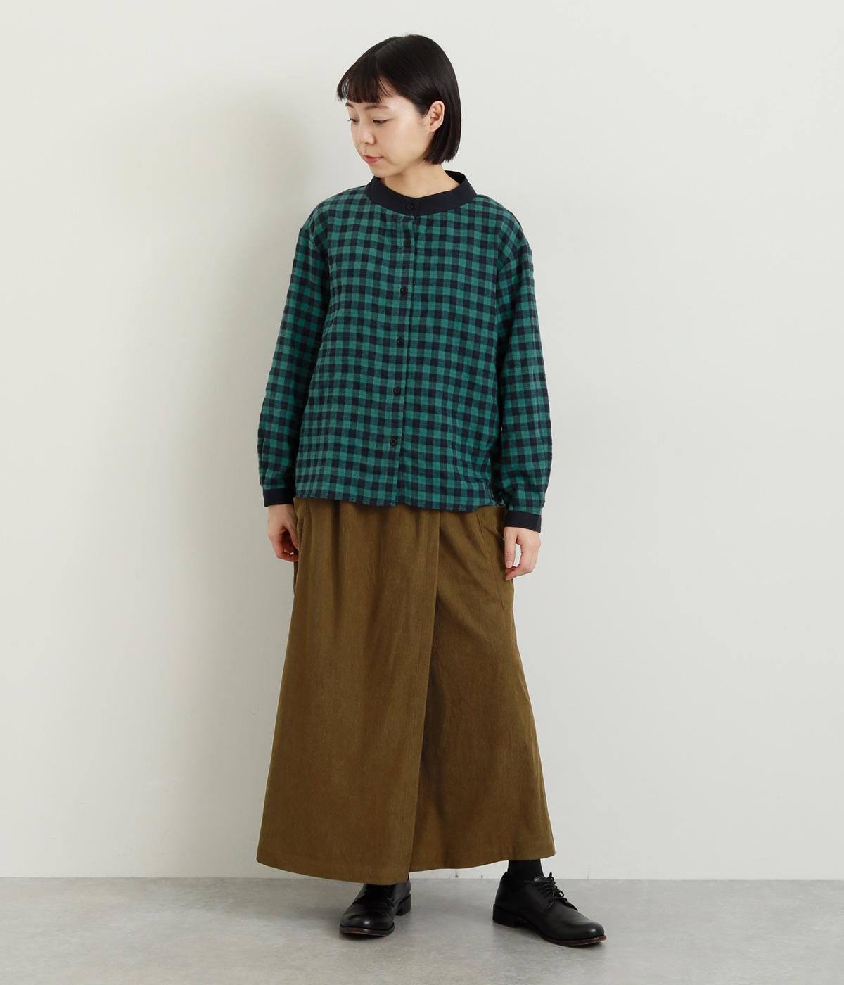 ほどよい太さの畝がやわらかい表情をつくる、薄手のコーデュロイ生地を使用しました。裏側は肌ばなれのよいつるりとした仕上がりで、軽やかに着用できる質感です。