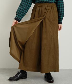 フロントを重ね合わせたラップ仕様が、やさしいゆれ感を生む一着。スカート見えするシルエットながら、パンツならではの動きやすさも備えています。腰の位置から生地を重ねているので、ウエストまわりがもたつかないのも◎。大きめのパッチポケットは実用性もあり、デイリー使いに活躍します。