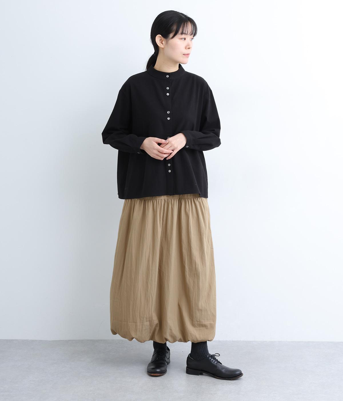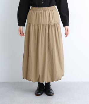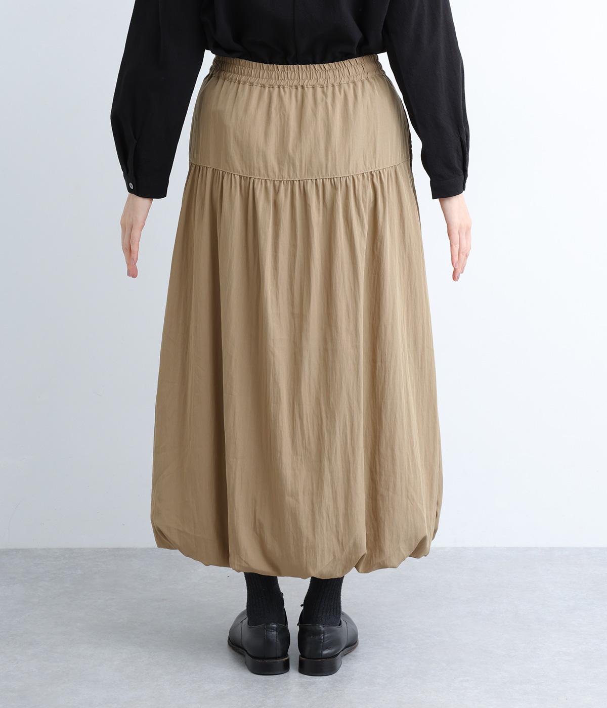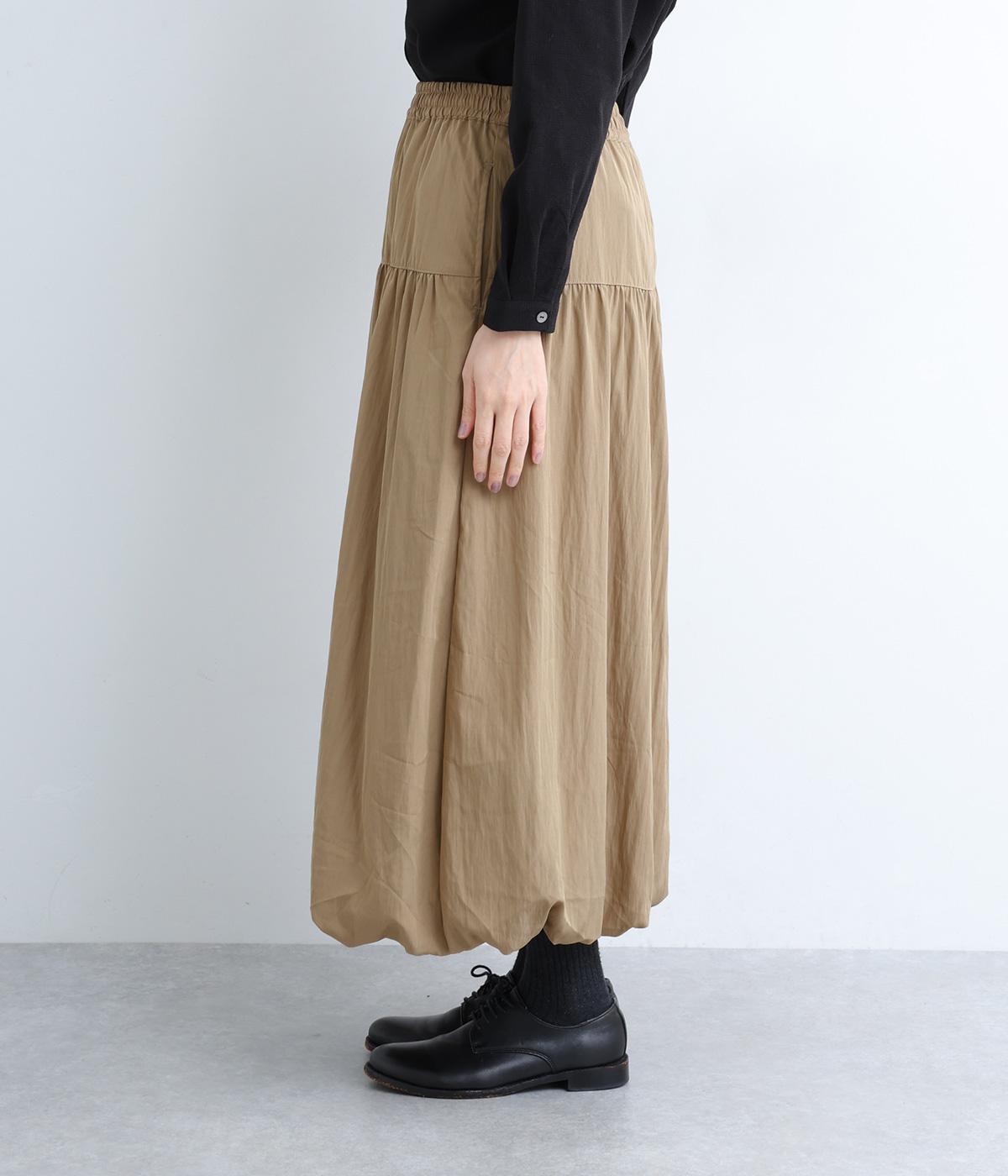 ふっくらとしたバルーンシルエットがやさしい印象を醸すスカート。タフな素材感とのアンバランスさも魅力で、フェミニンだけど甘すぎない装いがたのしめます。ウエストはオールゴムに内紐を入れたイージー仕様。