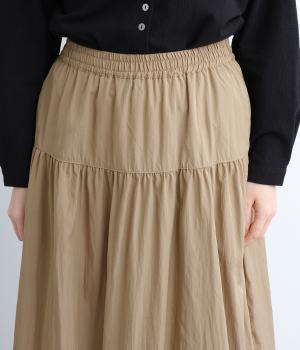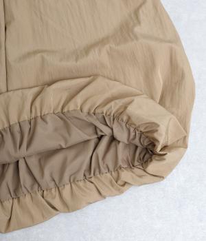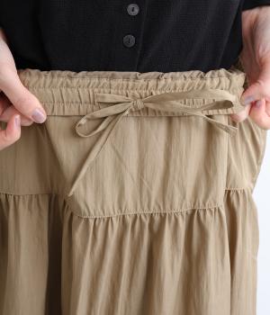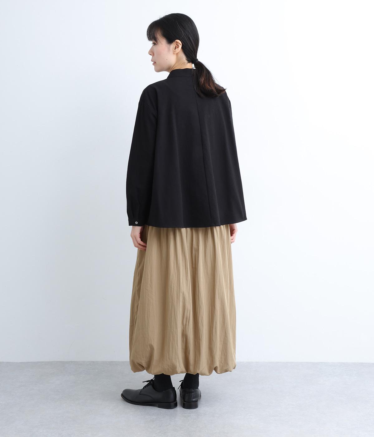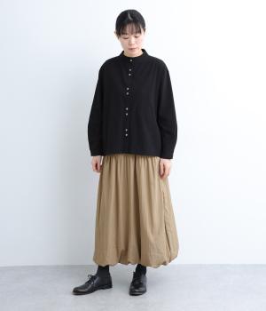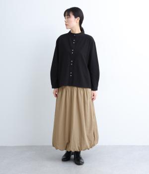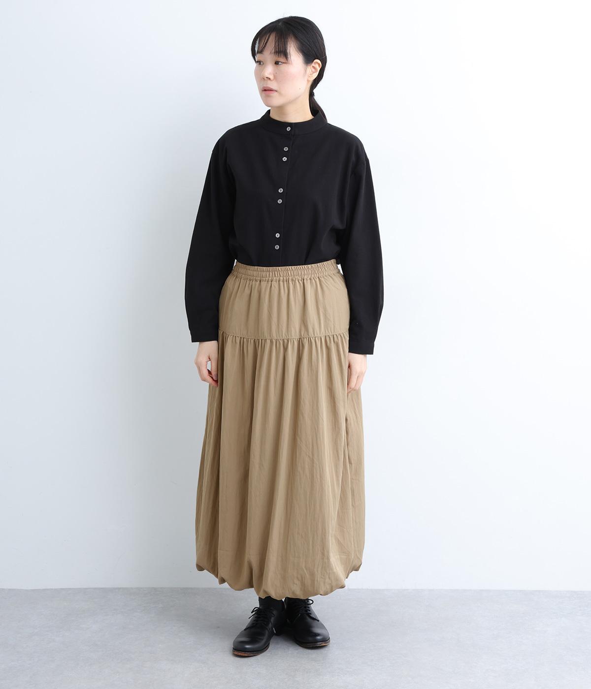 ふっくらとしたバルーンシルエットがやさしい印象を醸すスカート。タフな素材感とのアンバランスさも魅力で、フェミニンだけど甘すぎない装いがたのしめます。ウエストはオールゴムに内紐を入れたイージー仕様。