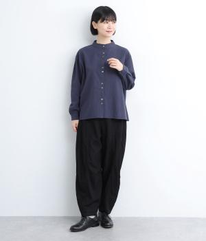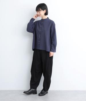 コットンとレーヨンをミックスさせた、着心地のいい混紡生地仕立てです。さらっとしたナチュラルな風合いと適度な落ち感で、デイリースタイルに品のいいエッセンスを足してくれます。