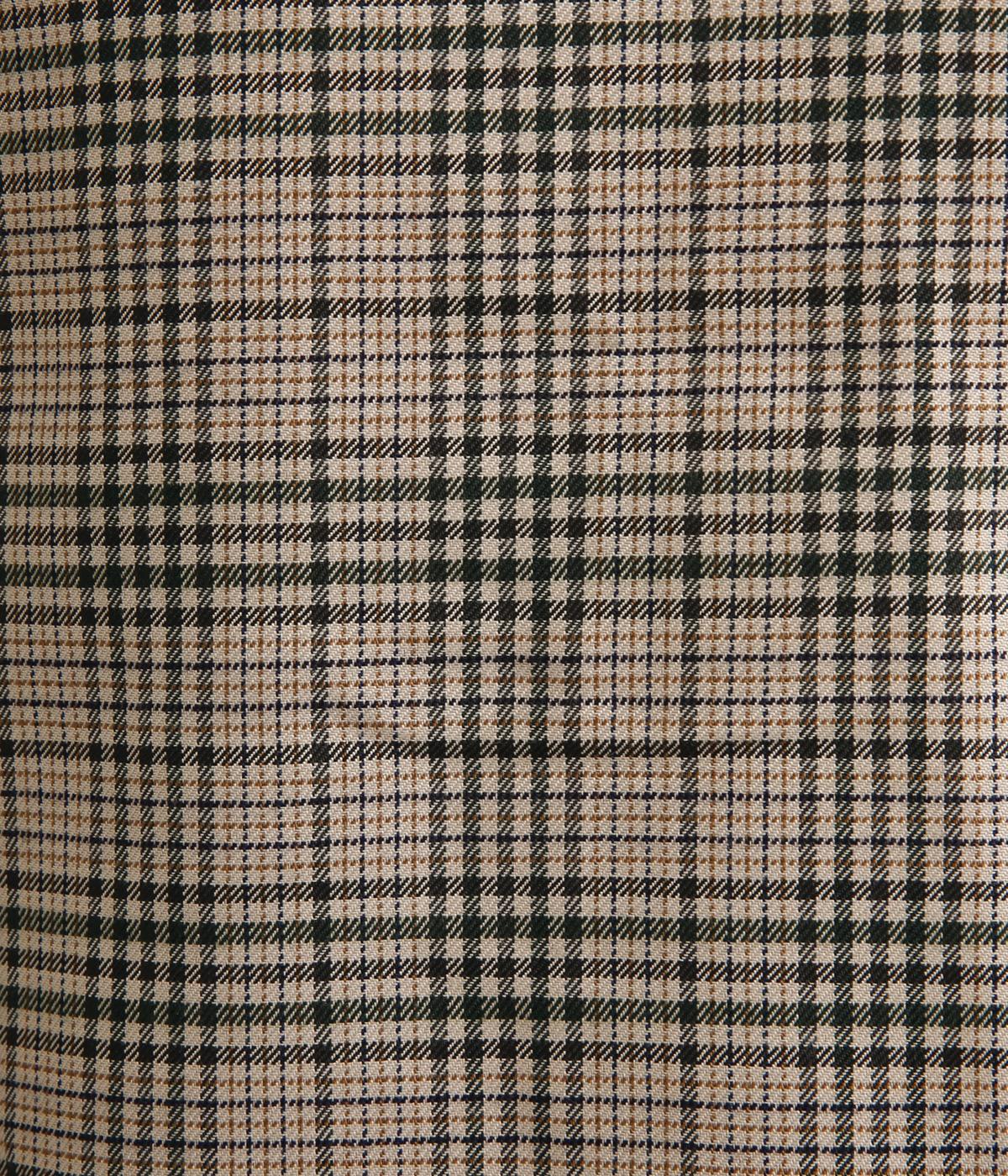寒い時期にはアウターの下にも難なく合わせやすい、厚手すぎず軽くさらりとしたグレンチェックの生地を使用しています。シワになりにくいのでお手入れも簡単です。