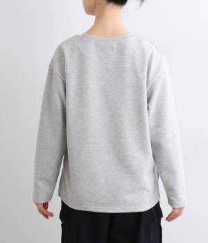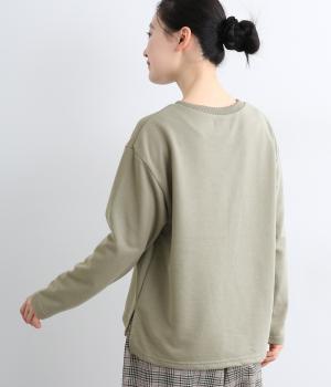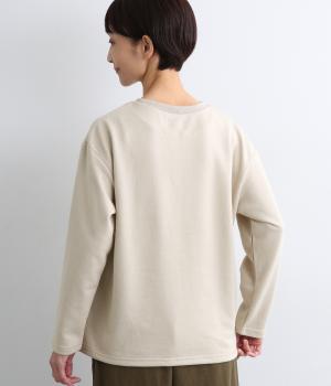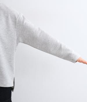 一般的なスエットよりも薄手でロングシーズンたのしめるポリエステルコットンのミニ裏毛生地。とてもやわらかな風合いで通気性がよく、快適に着用できます。