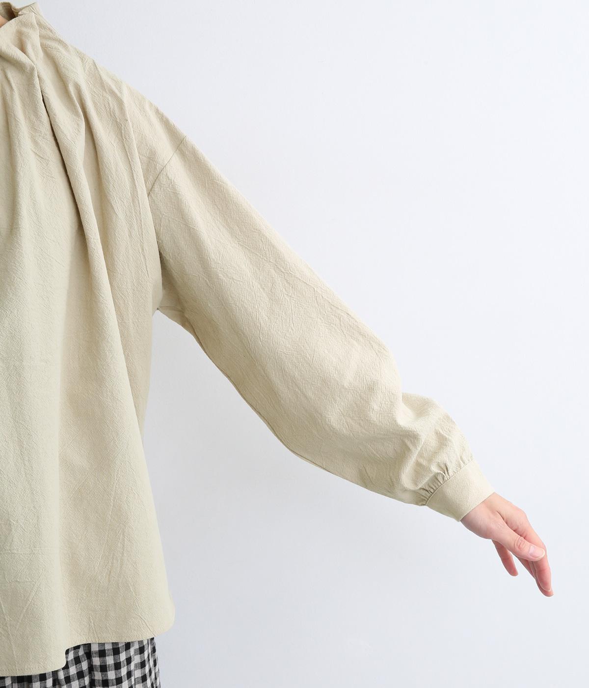 適度なハリと軽さを持ちあわせたコットン生地を使用しました。洗いざらしのような自然なシワ感が大人らしいナチュラルなムードを演出してくれます。