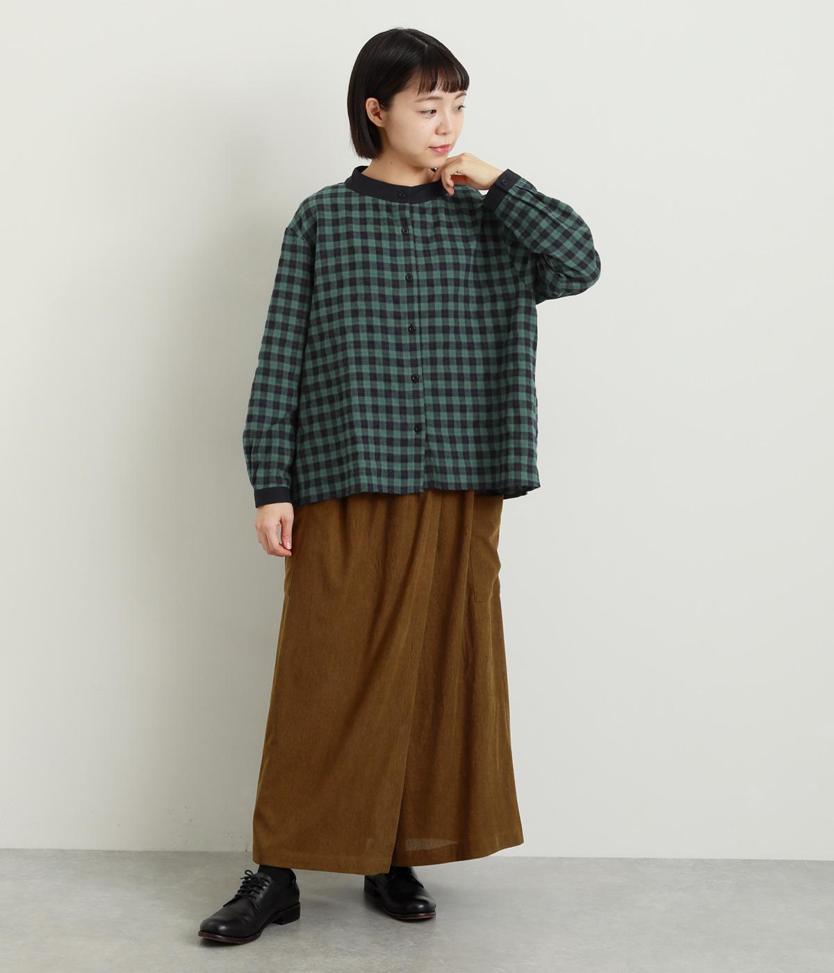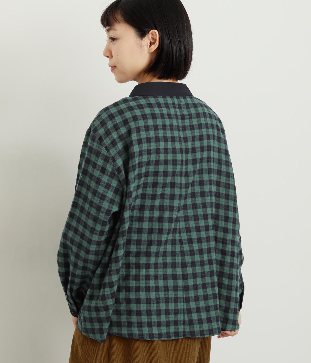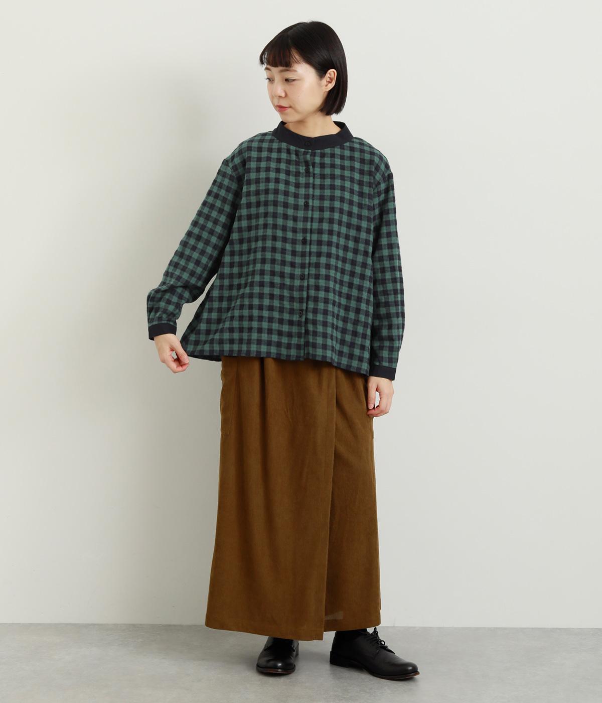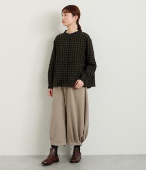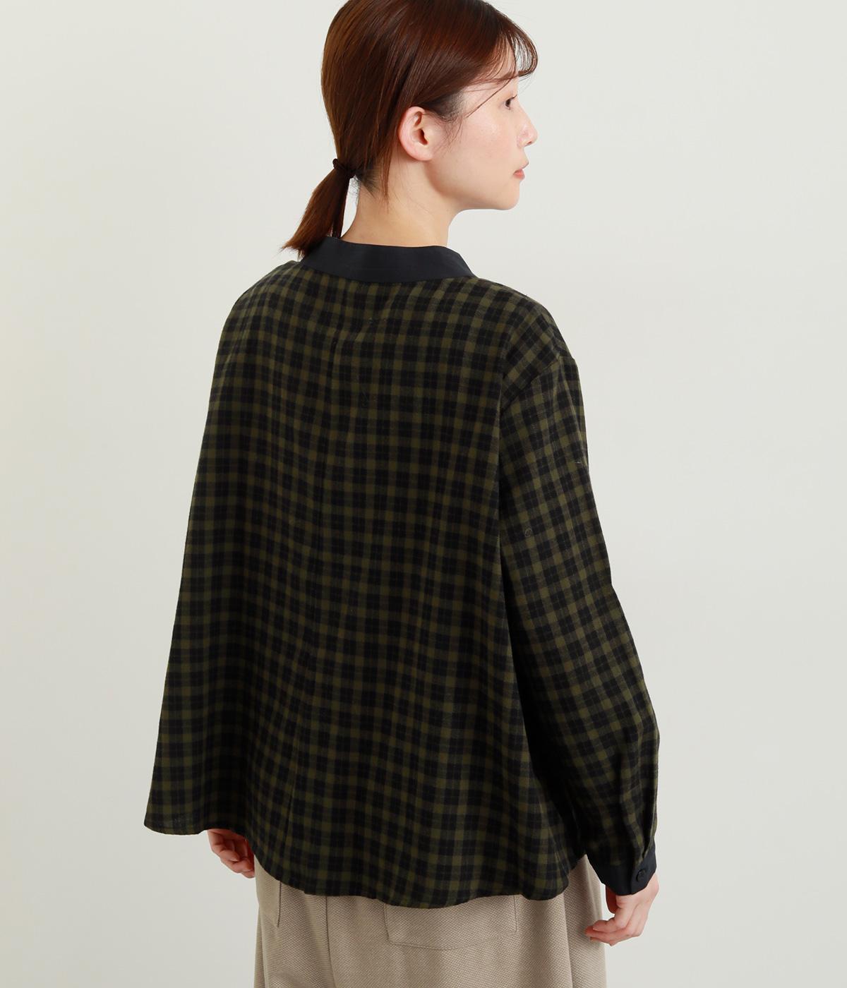 ナチュラルなチェック柄が、大人のかわいらしさを引き立てるブラウスです。ほどよく首から離れたちびハイネックが、上品な抜け感をプラス。襟と袖口にあしらった配色がさり気ないアクセントになり、表情のある仕上がりに。後ろ身頃はゆるやかに広がるフレアシルエットで、動くたびにきれいな立体感が生まれます。