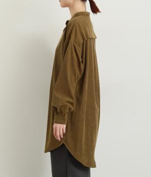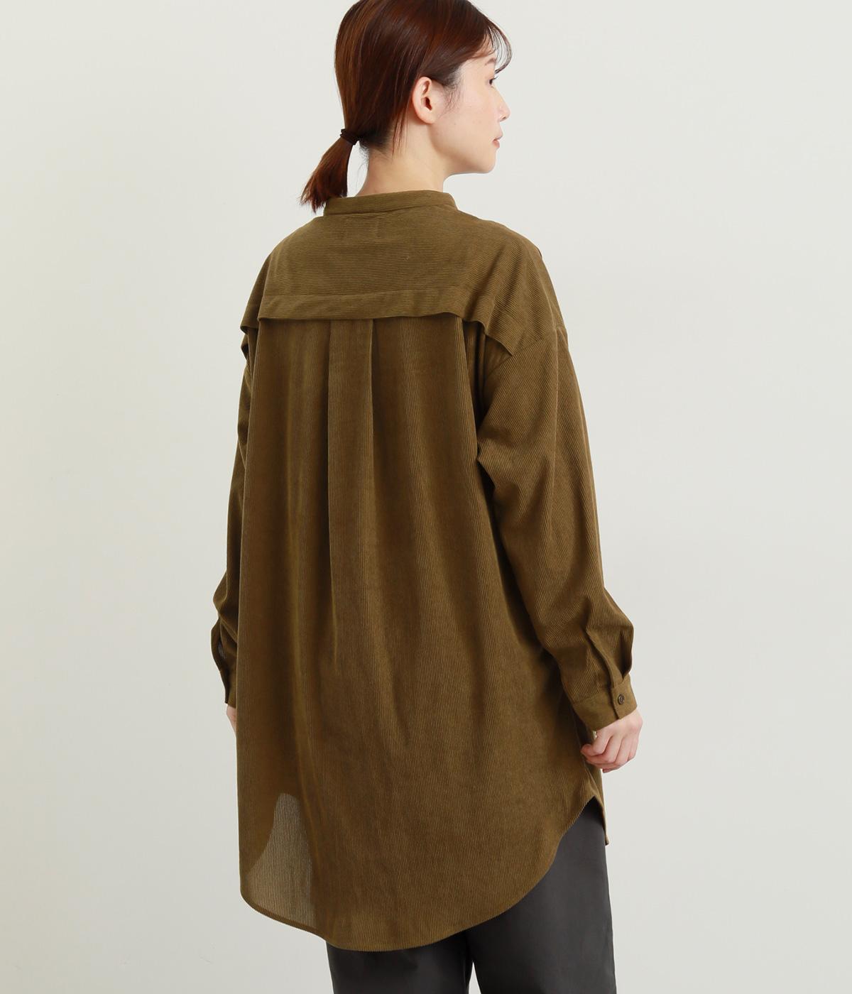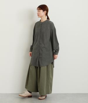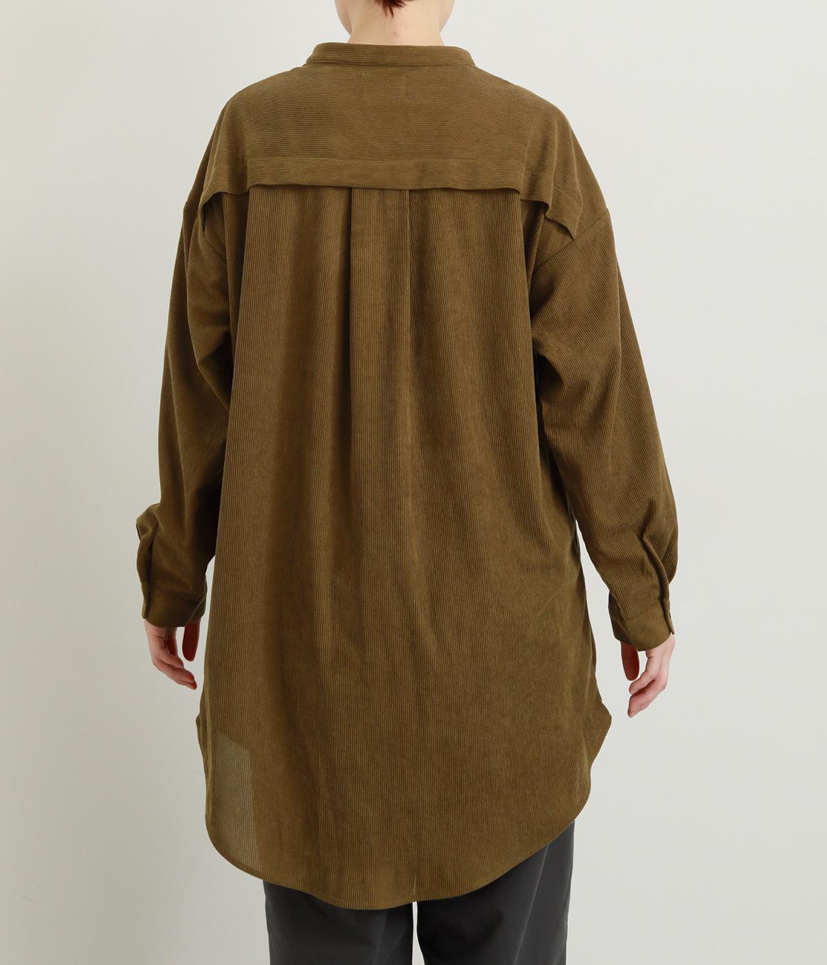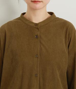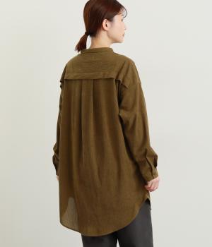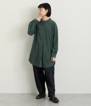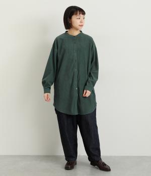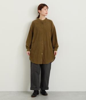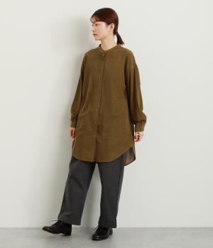 コーデュロイ特有のやわらかな表情が映えるチュニックです。すっきりと首元をまとめてくれるスタンドカラーに、背面ヨークから贅沢に入れたタックがふんわりと立体感を生みます。裾はラウンドシルエットに仕上げ、ヒップまわりをやさしくつつみながら抜け感のある印象に。