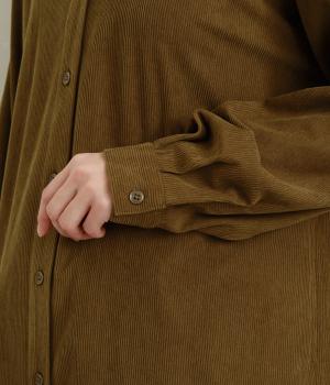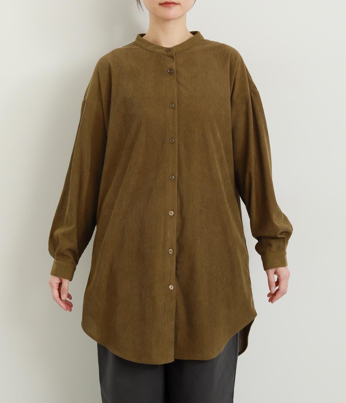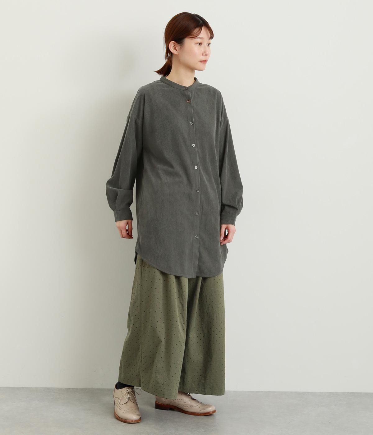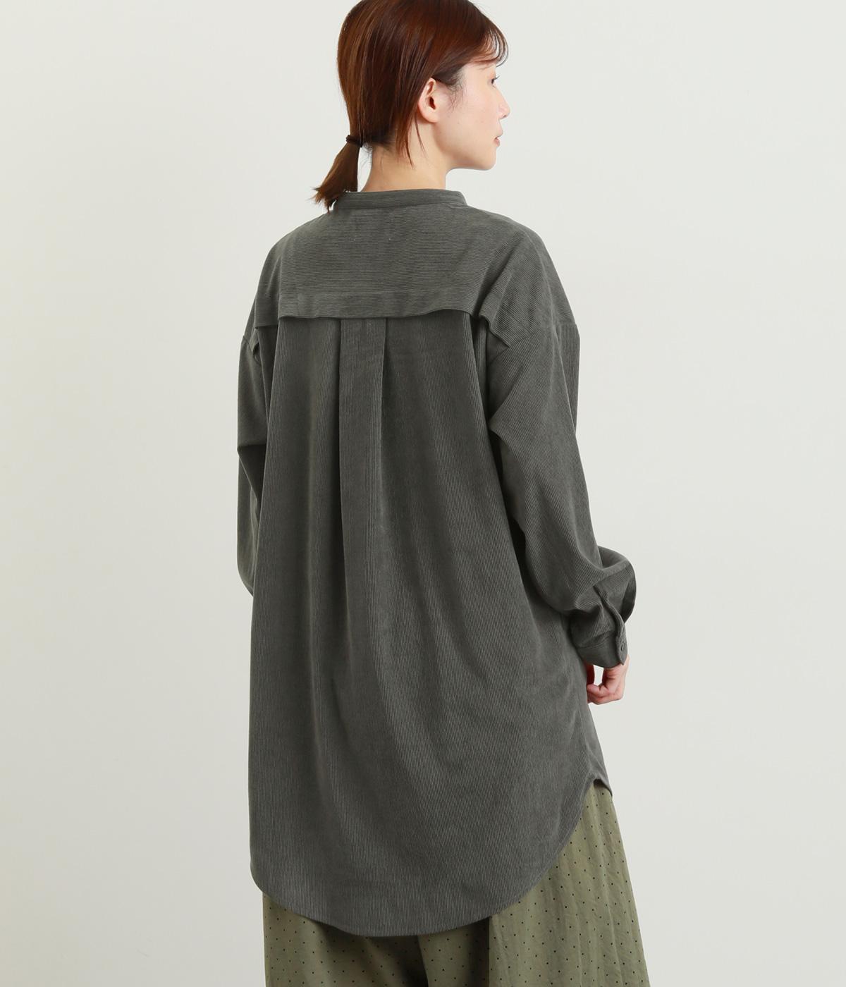 コーデュロイ特有のやわらかな表情が映えるチュニックです。すっきりと首元をまとめてくれるスタンドカラーに、背面ヨークから贅沢に入れたタックがふんわりと立体感を生みます。裾はラウンドシルエットに仕上げ、ヒップまわりをやさしくつつみながら抜け感のある印象に。