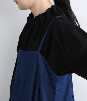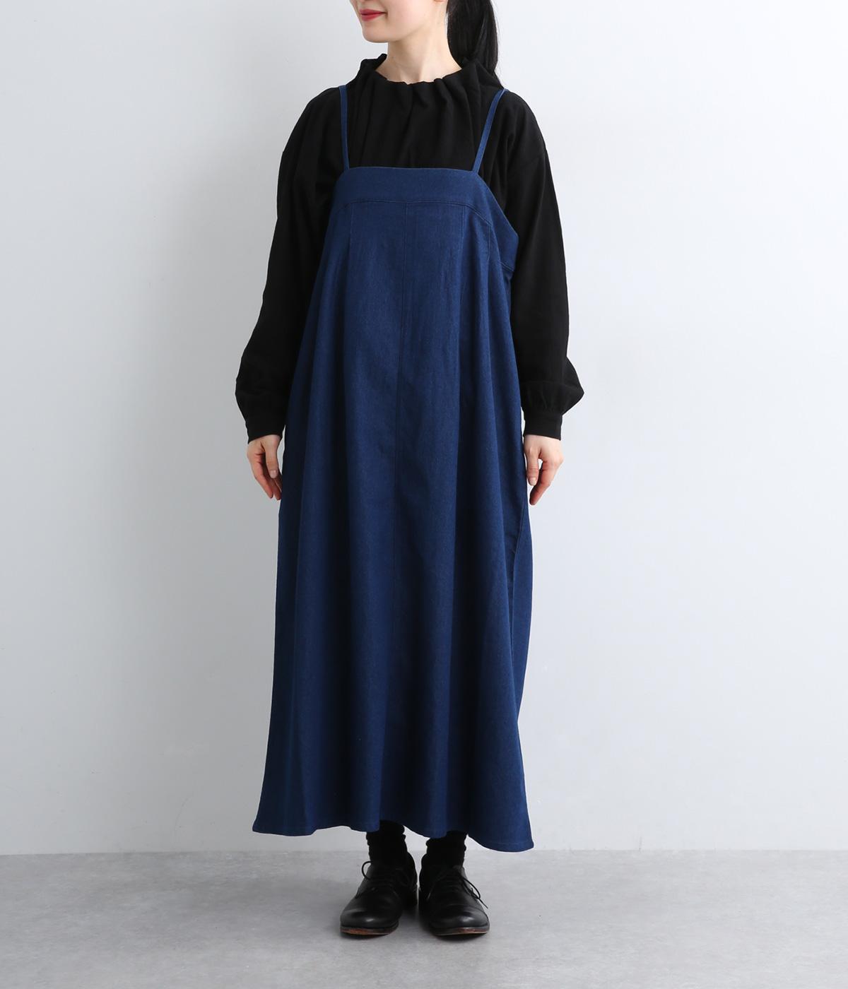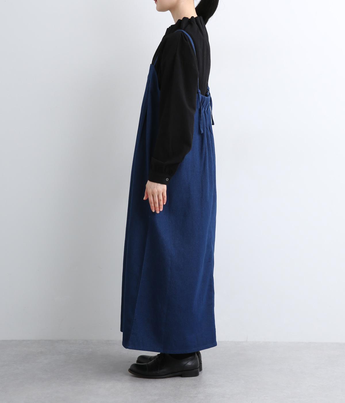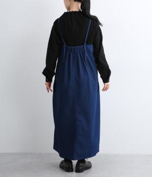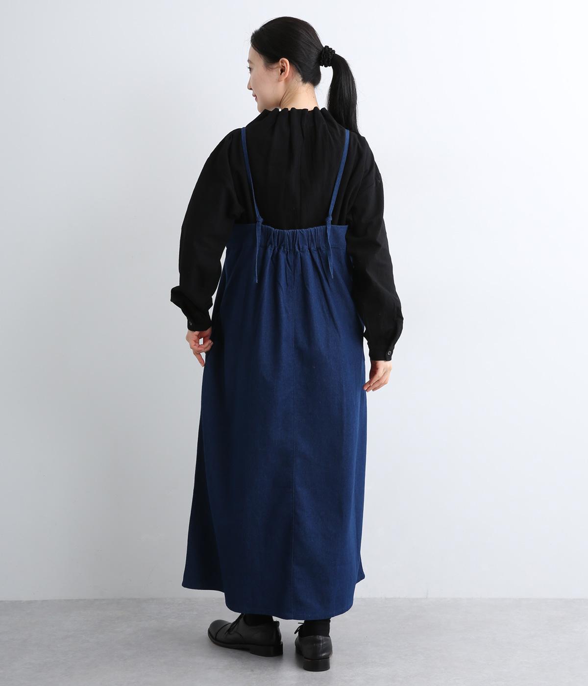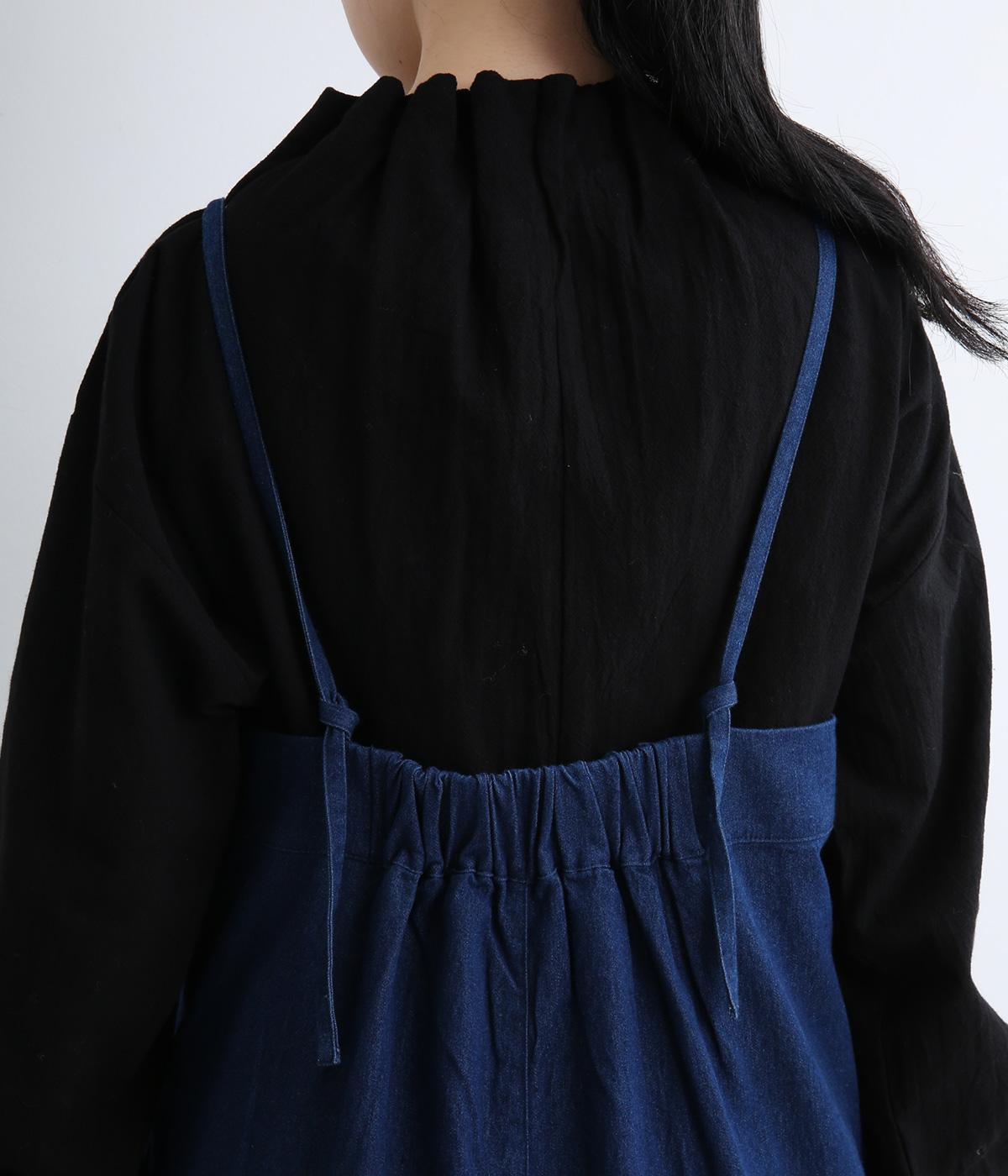 華奢な肩紐で大人らしく仕上げたデニムのキャミワンピース。前にはタックを入れて、体のラインを拾いにくい立体的なシルエットに仕上げています。後ろ上端の中心部分にはゴムを通して心地よいフィット感に。後ろの紐の結び位置を変えて自由にが長さ調節可能です。