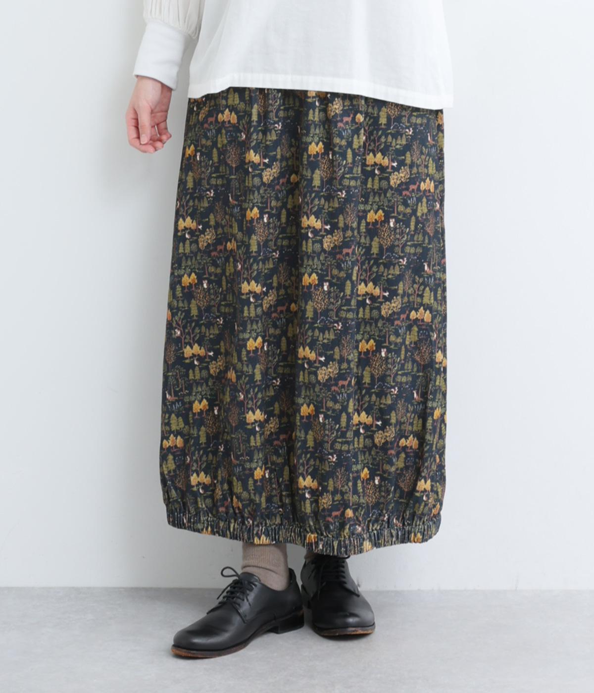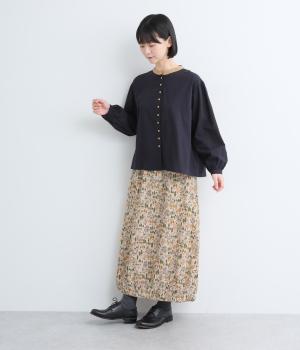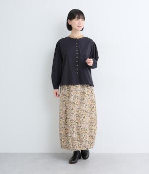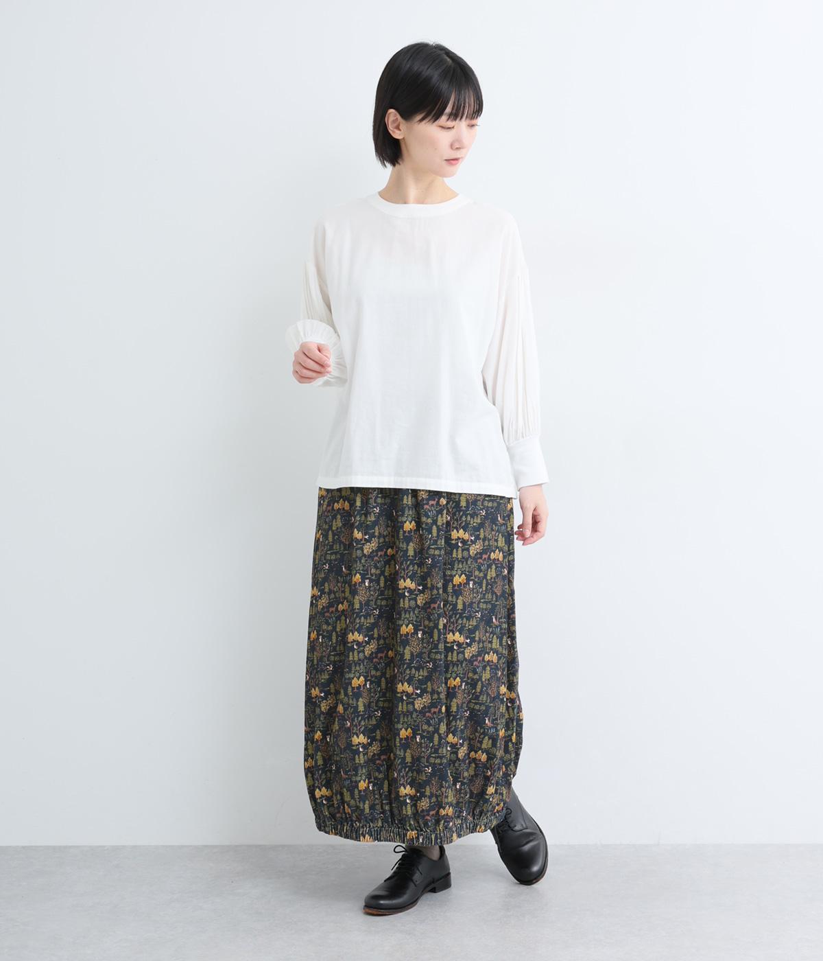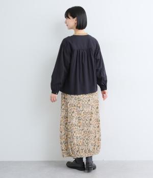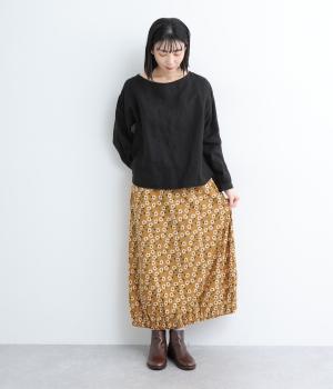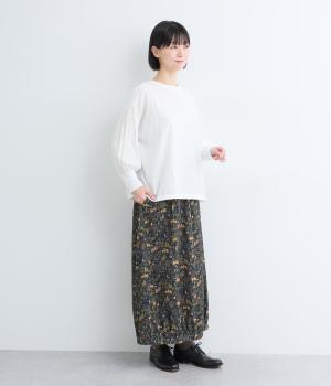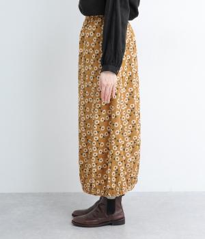 コーディネートのポイントになる、着映え力の高い総柄スカート。裾にさり気なくゴムギャザーを入れて、ふっくらとしたコクーンシルエットに仕上げました。落ち着いた印象を与えるロング丈も◎。ウエストは総ゴム&内紐入りです。