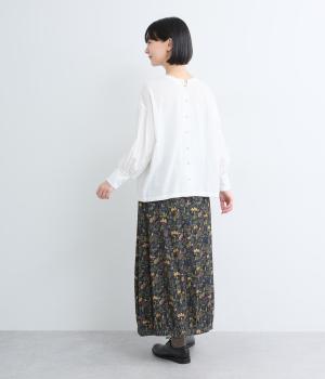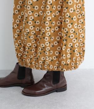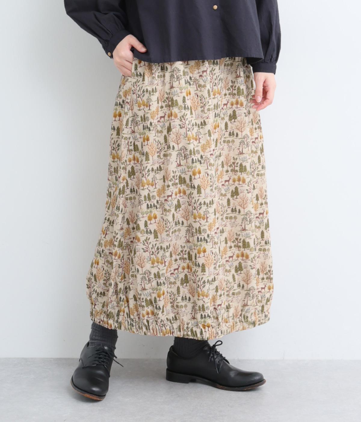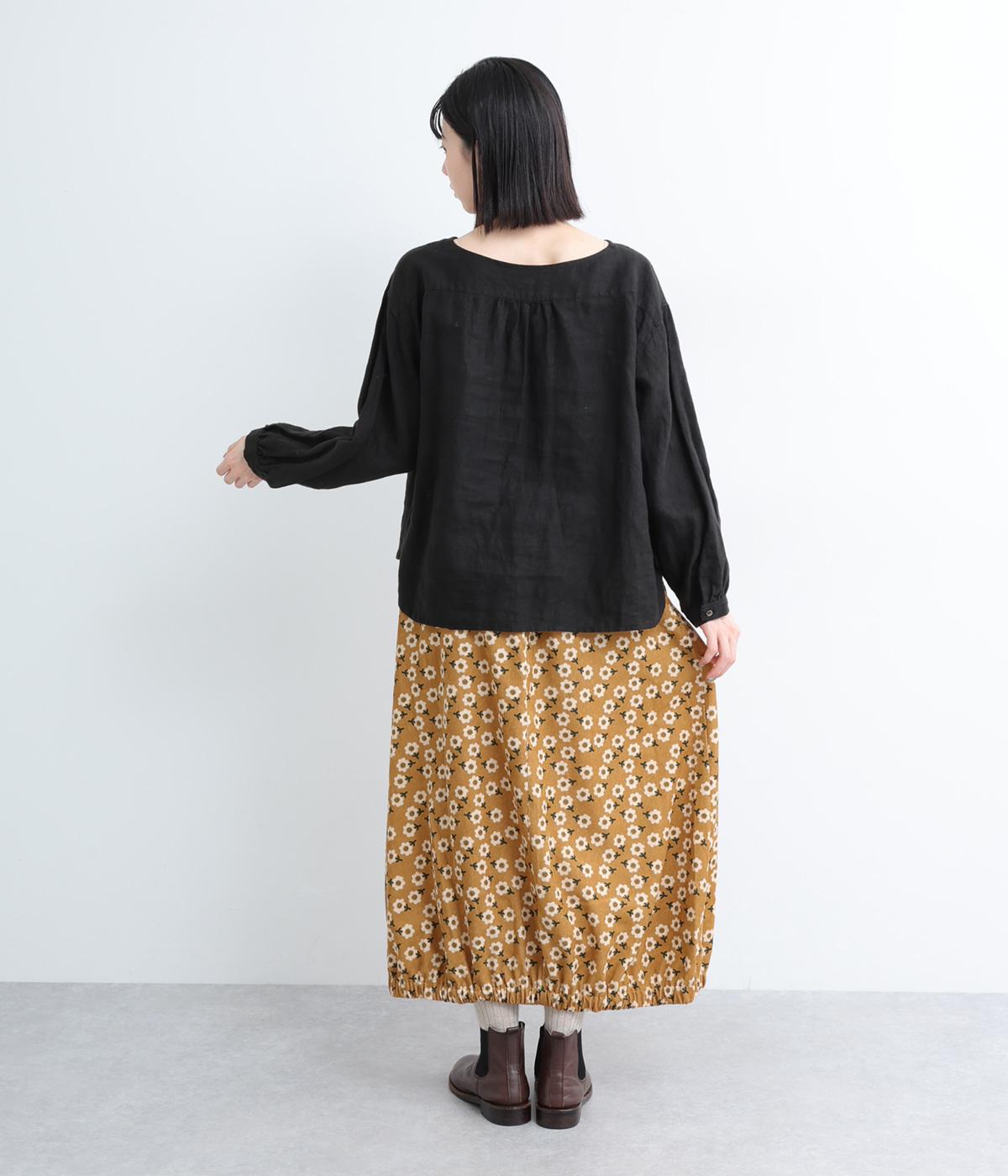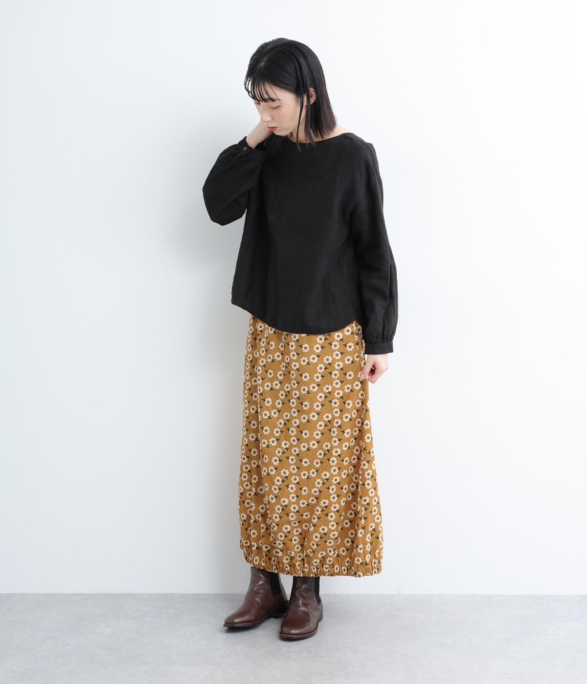 コーディネートのポイントになる、着映え力の高い総柄スカート。裾にさり気なくゴムギャザーを入れて、ふっくらとしたコクーンシルエットに仕上げました。落ち着いた印象を与えるロング丈も◎。ウエストは総ゴム&内紐入りです。