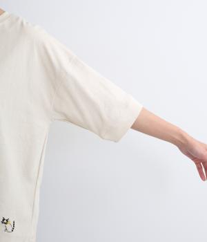 スカーフをまいたネコのワンポイント刺繍がかわいいプルオーバー。ほどよいゆるさがたまらなく、気持ちまでほっこりさせてくれます。ゆったりとしたシルエットで、ボトムを選ばずデイリー使いにぴったりです。