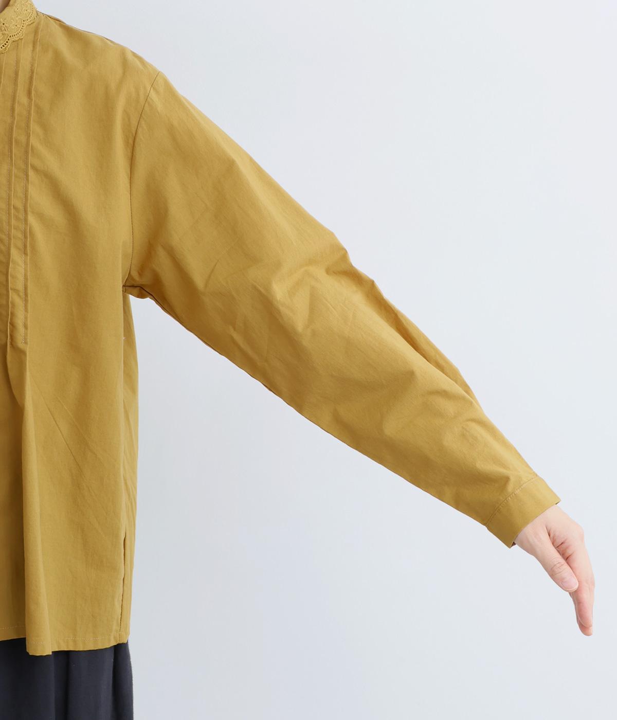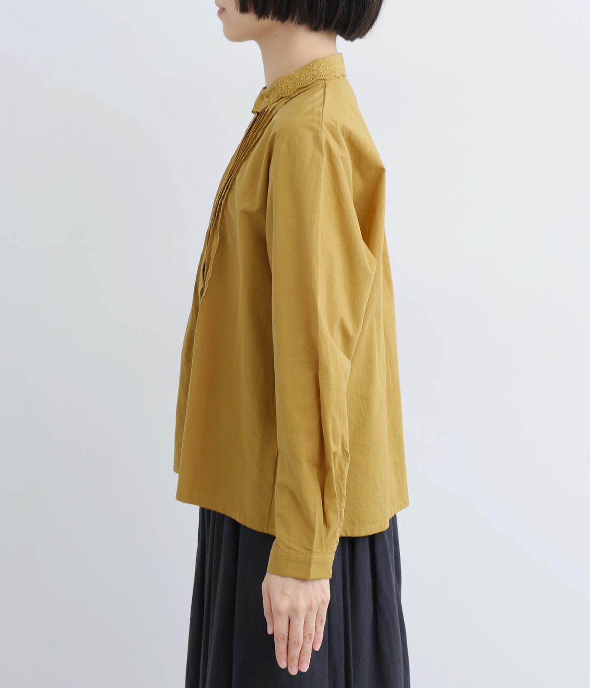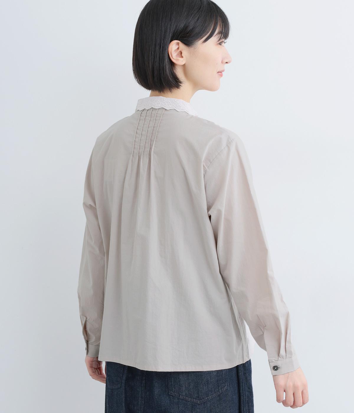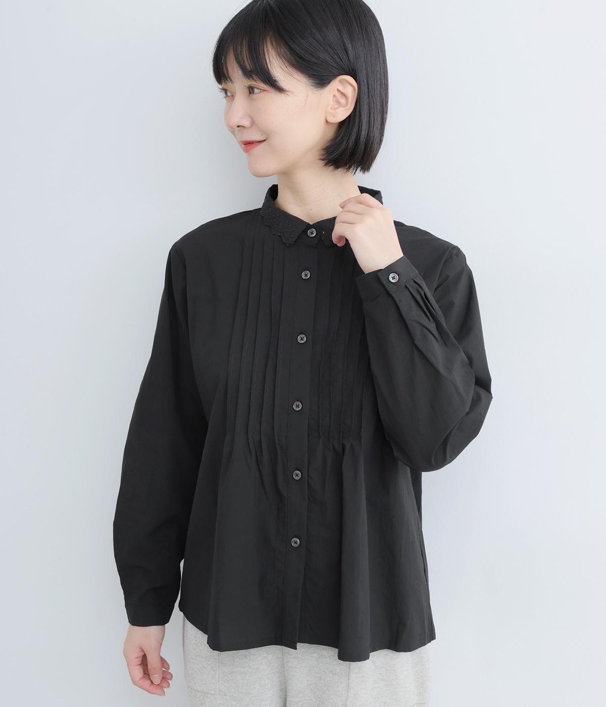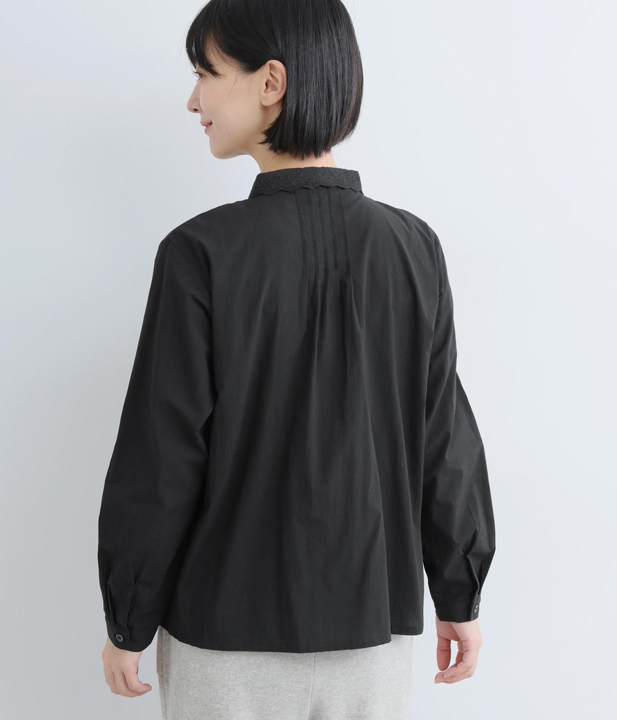 シンプルなシルエットに洗練されたディテールが美しいブラウスです。ピンタック仕立てとレース素材のコンパクトな襟元は繊細さを演出しています。デニムと合わせてきれいめカジュアルにも、クラシカルなボトムと合わせてエレガントにも、シーンを選ばず女性らしさを表現できる素敵な一枚です。