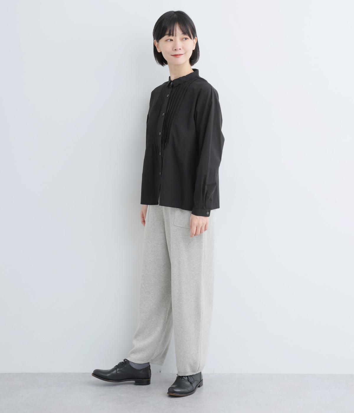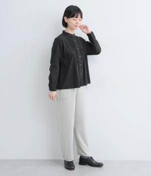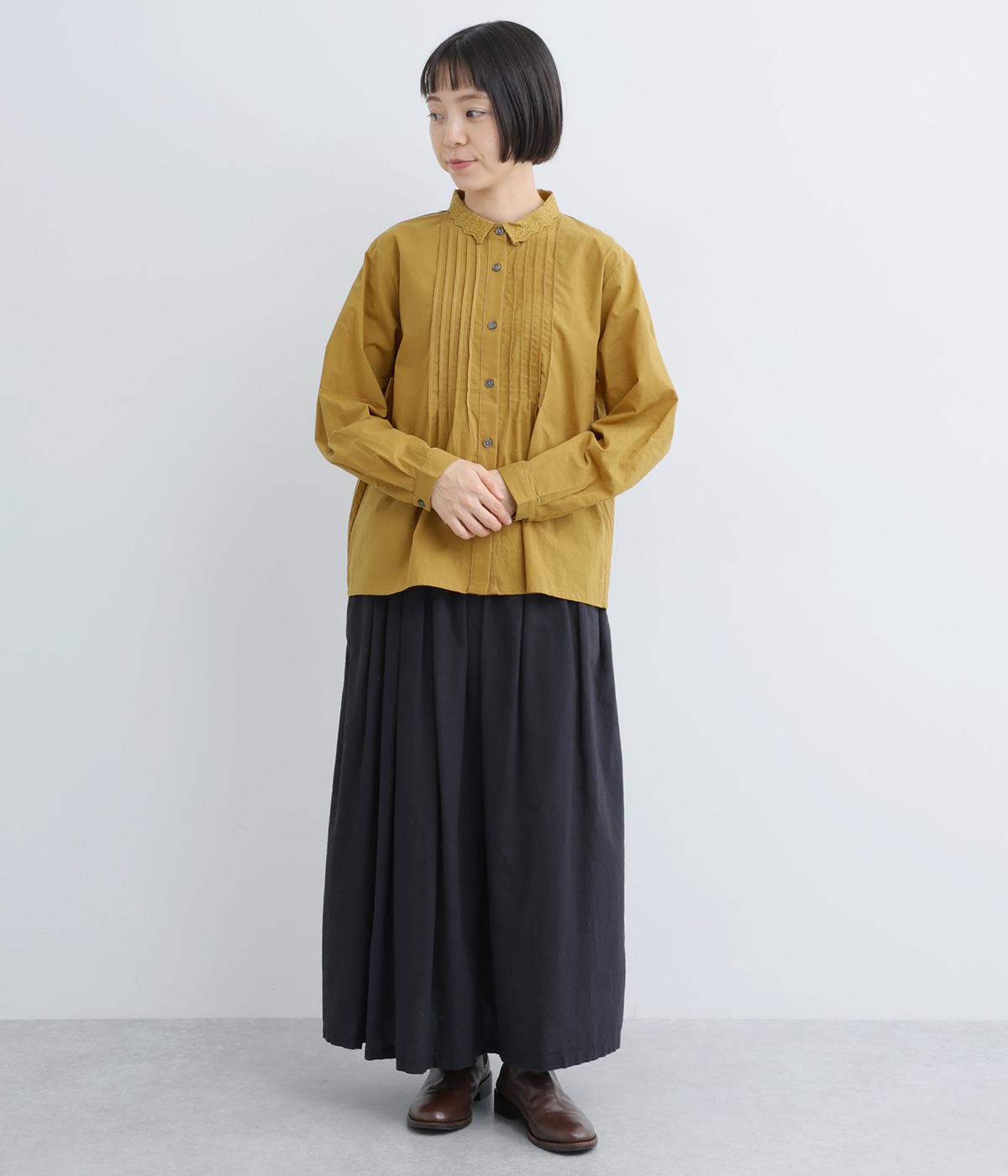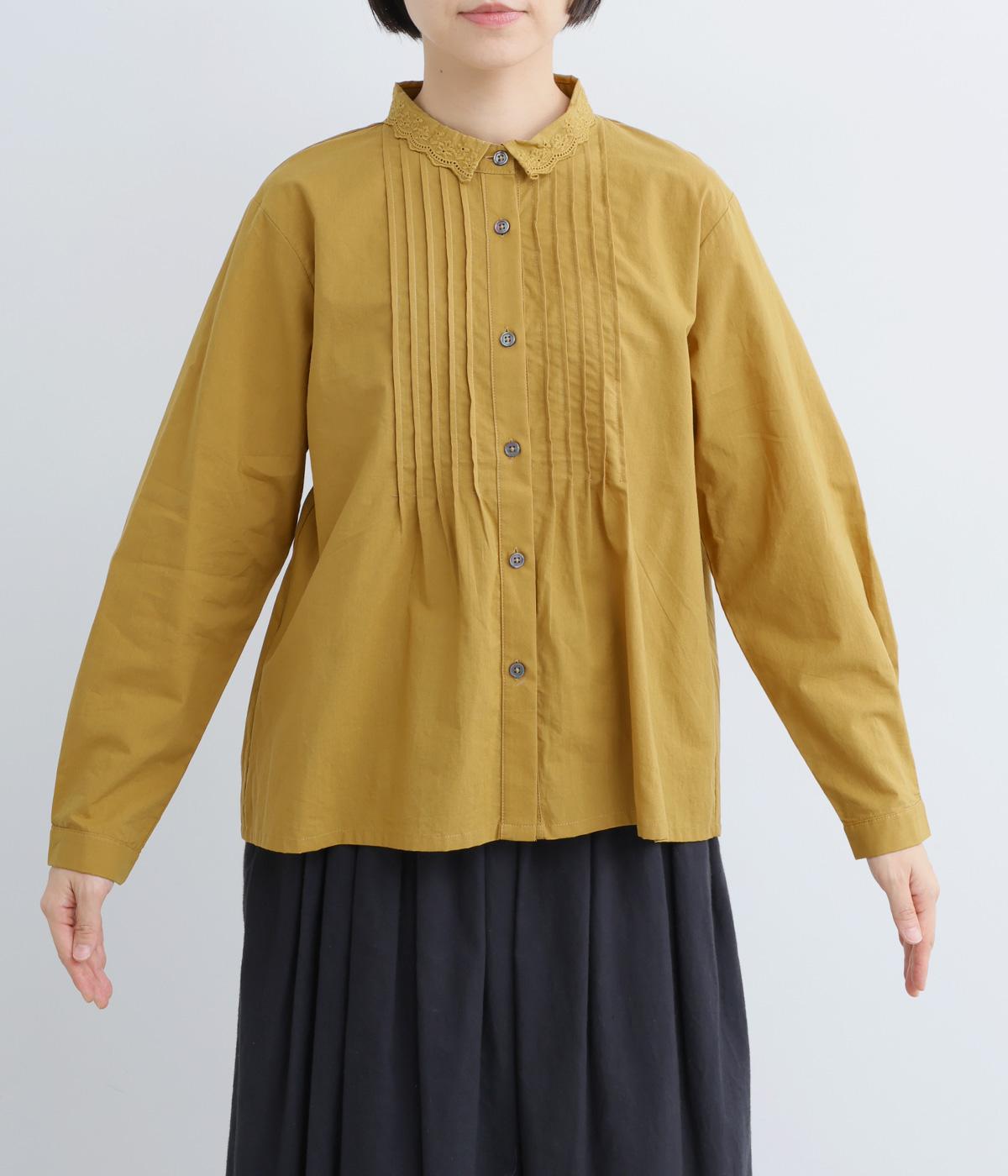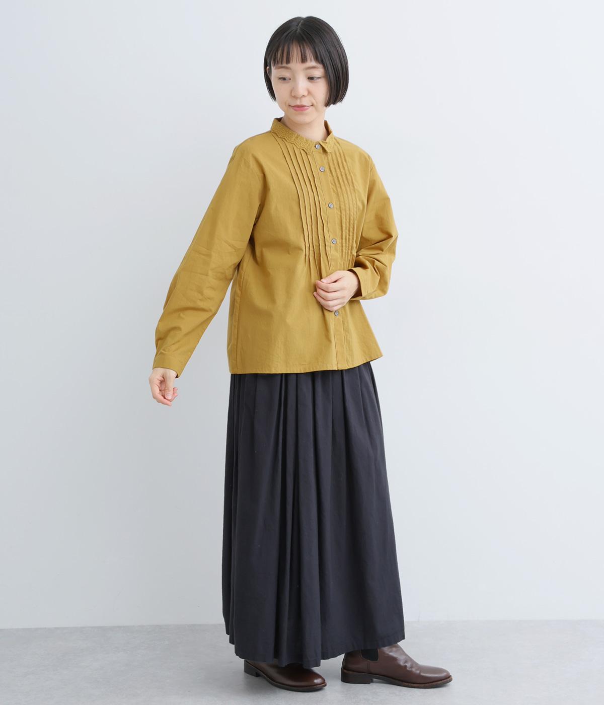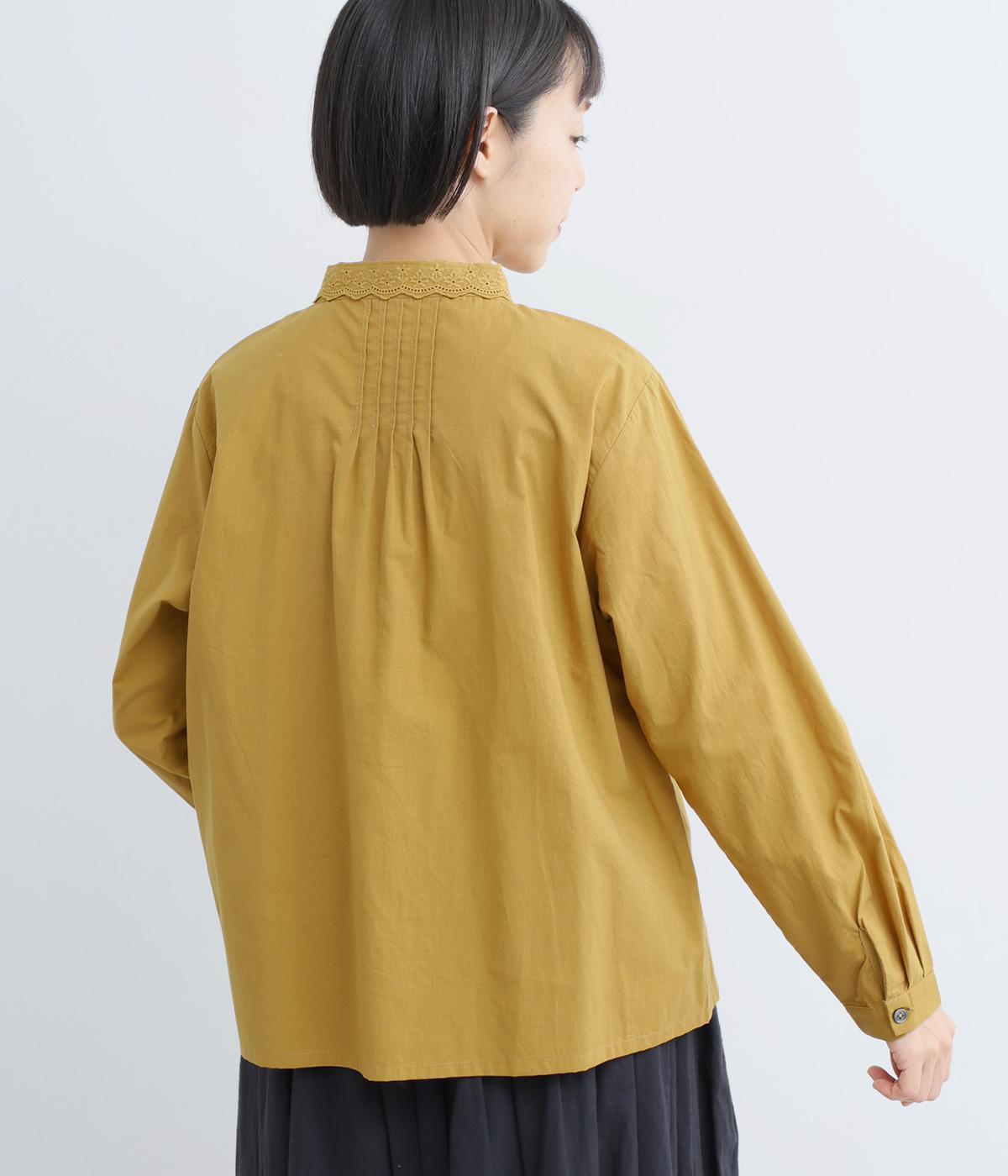 シンプルなシルエットに洗練されたディテールが美しいブラウスです。ピンタック仕立てとレース素材のコンパクトな襟元は繊細さを演出しています。デニムと合わせてきれいめカジュアルにも、クラシカルなボトムと合わせてエレガントにも、シーンを選ばず女性らしさを表現できる素敵な一枚です。