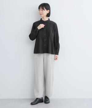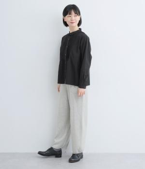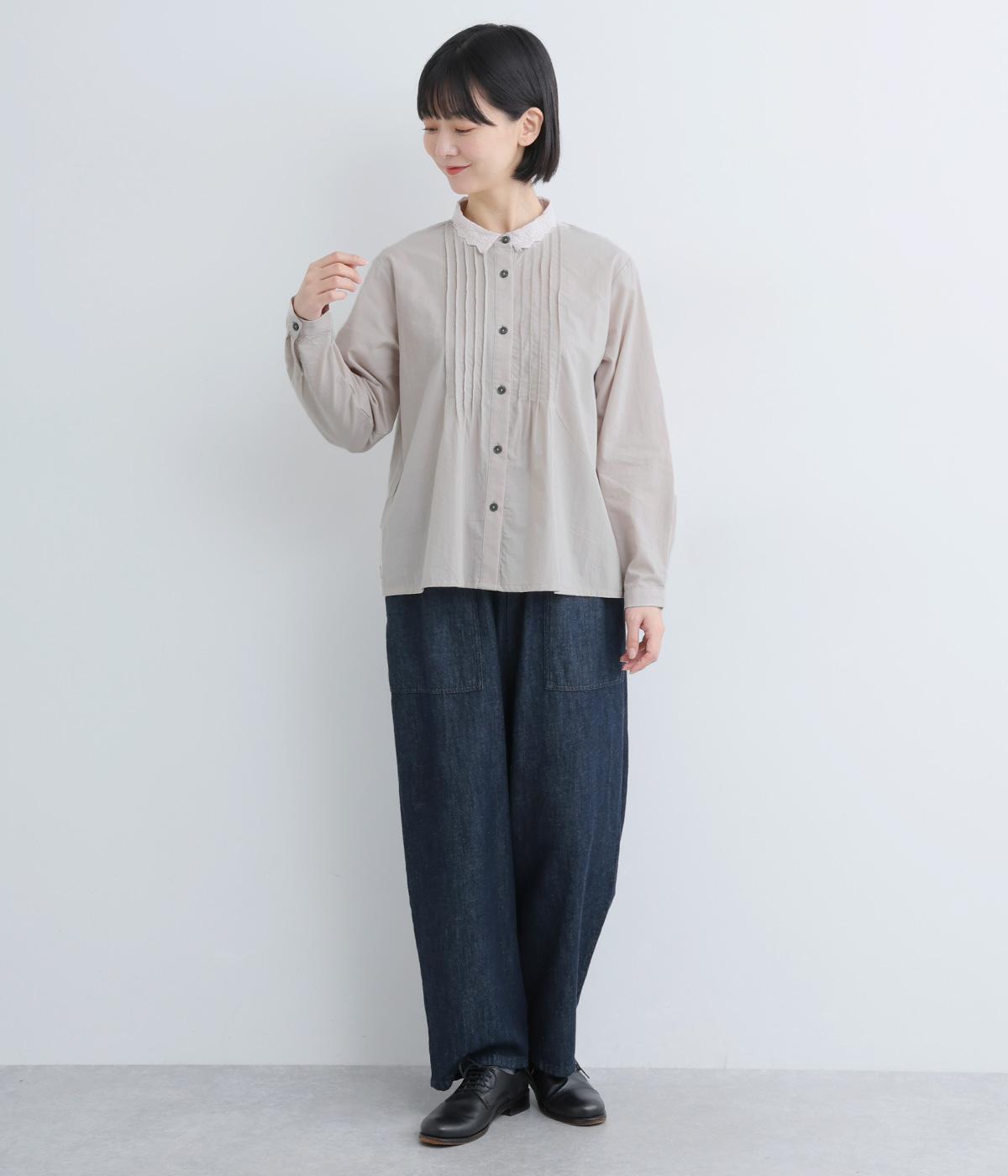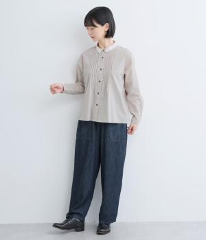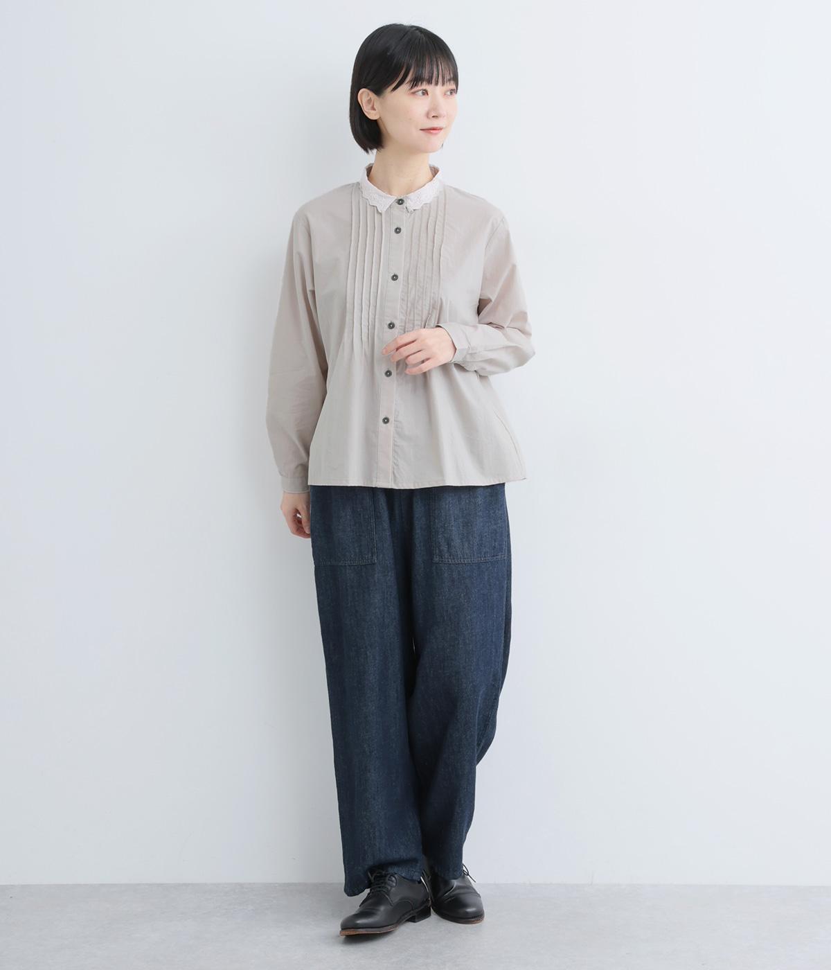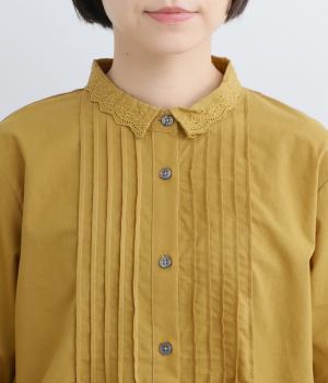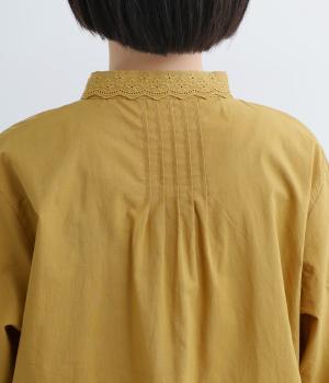 柔らかくやさしい雰囲気が魅力の、着まわしやすい軽量コットンです。同色のレース素材の襟も綿素材で仕立ててあります。オールシーズン楽しめる心地よさが◎です。
