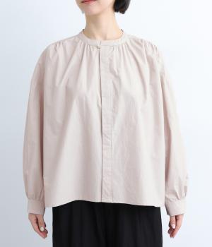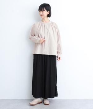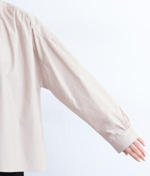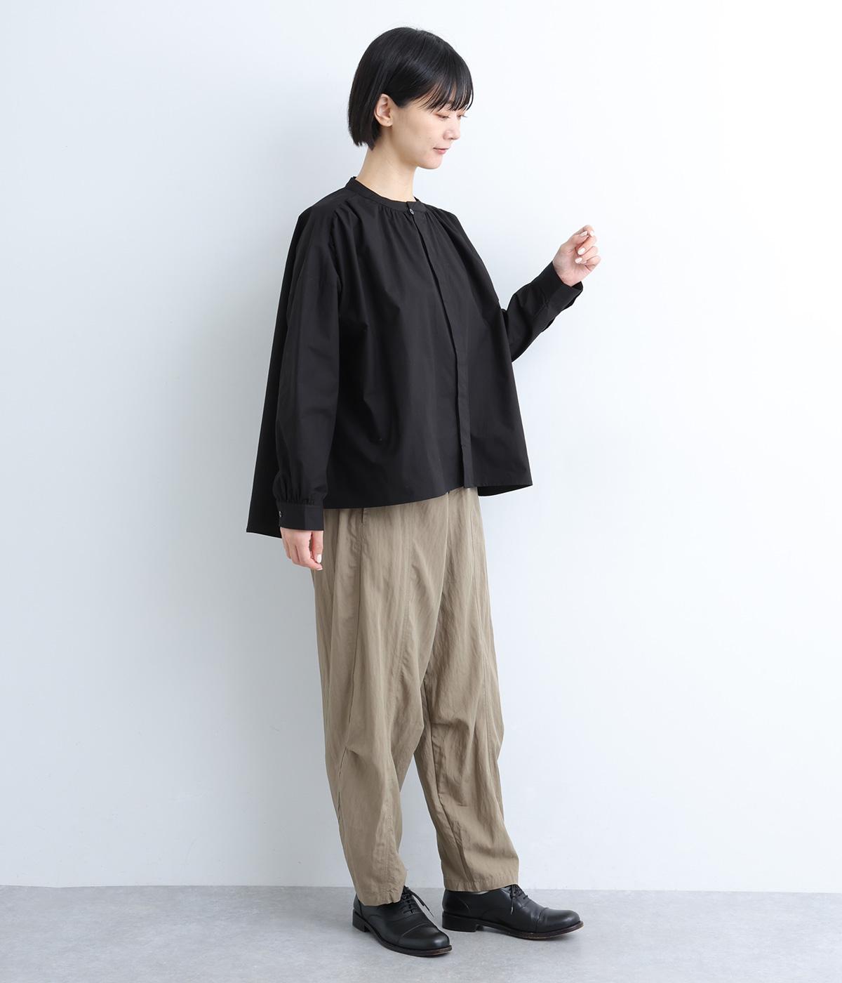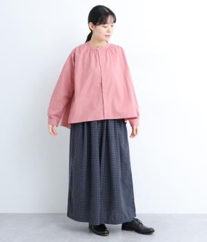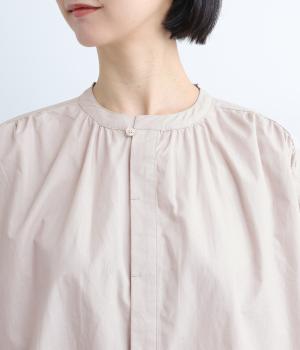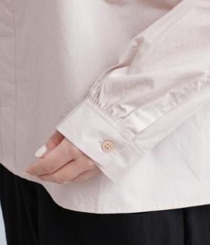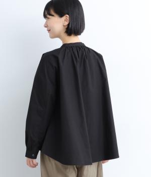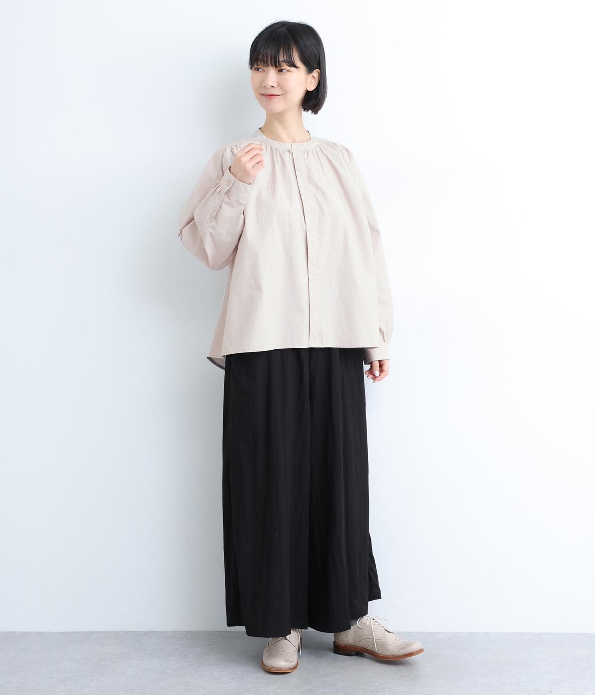 ギャザーをたっぷり入れたフレアシルエットが印象的な一枚。適度にハリのある生地がきれいな立体感を描き、シンプルながらも存在感を発揮。比翼仕立てなのですっきりと着こなせ、羽織りにしたり着まわし力も◎。