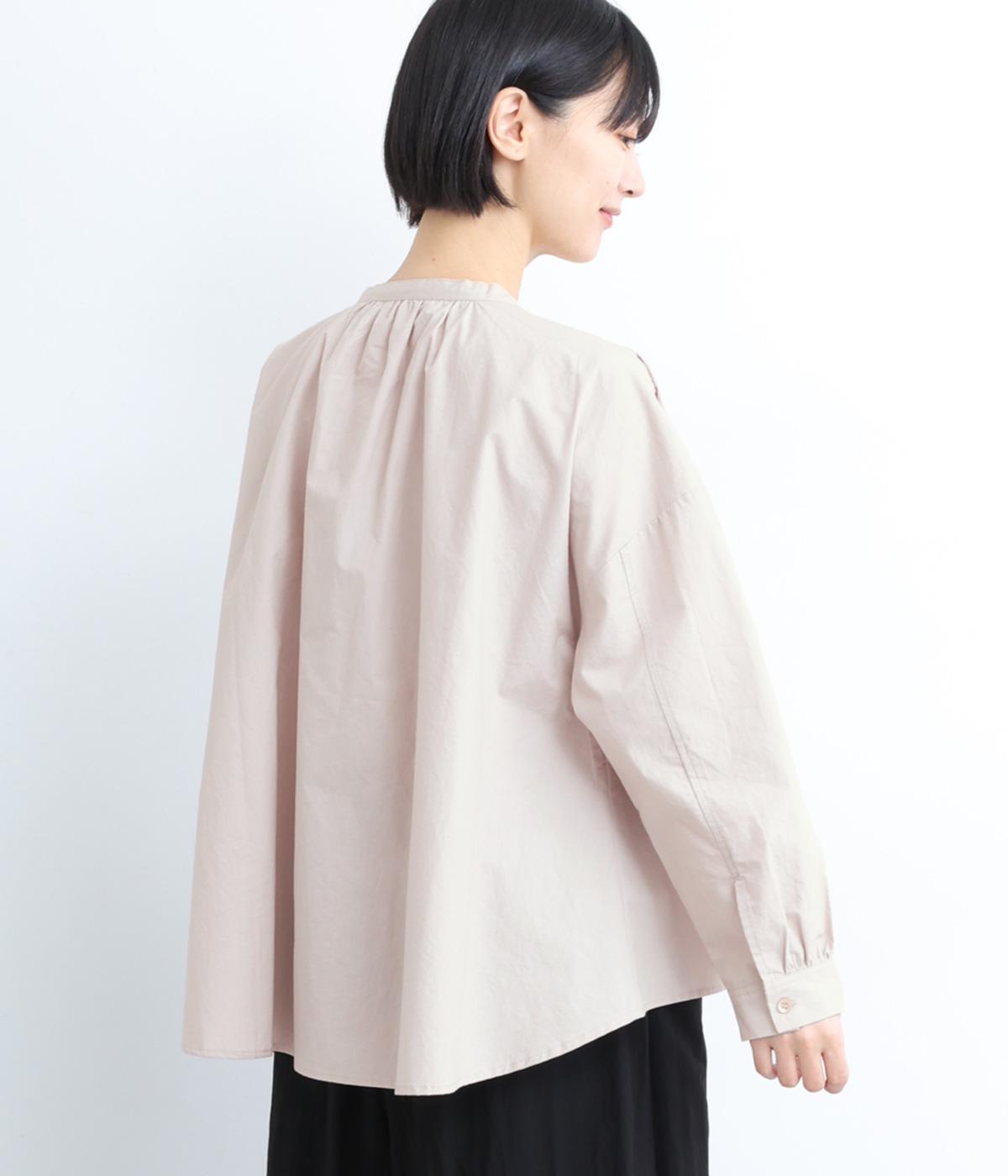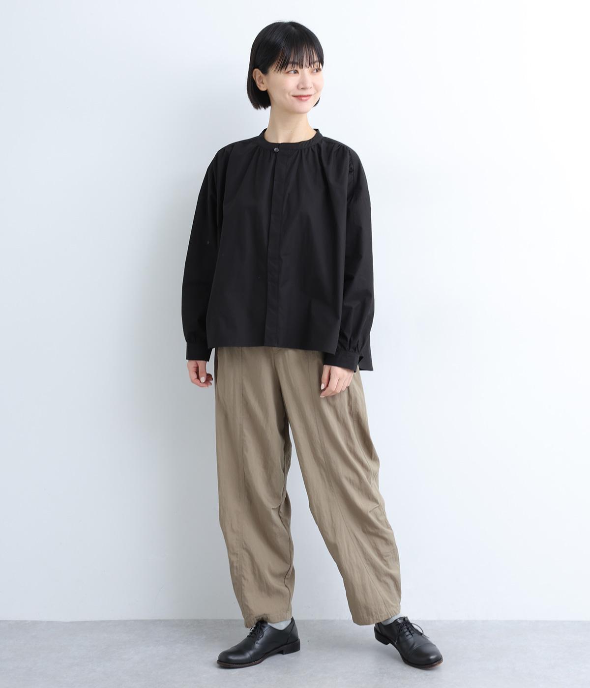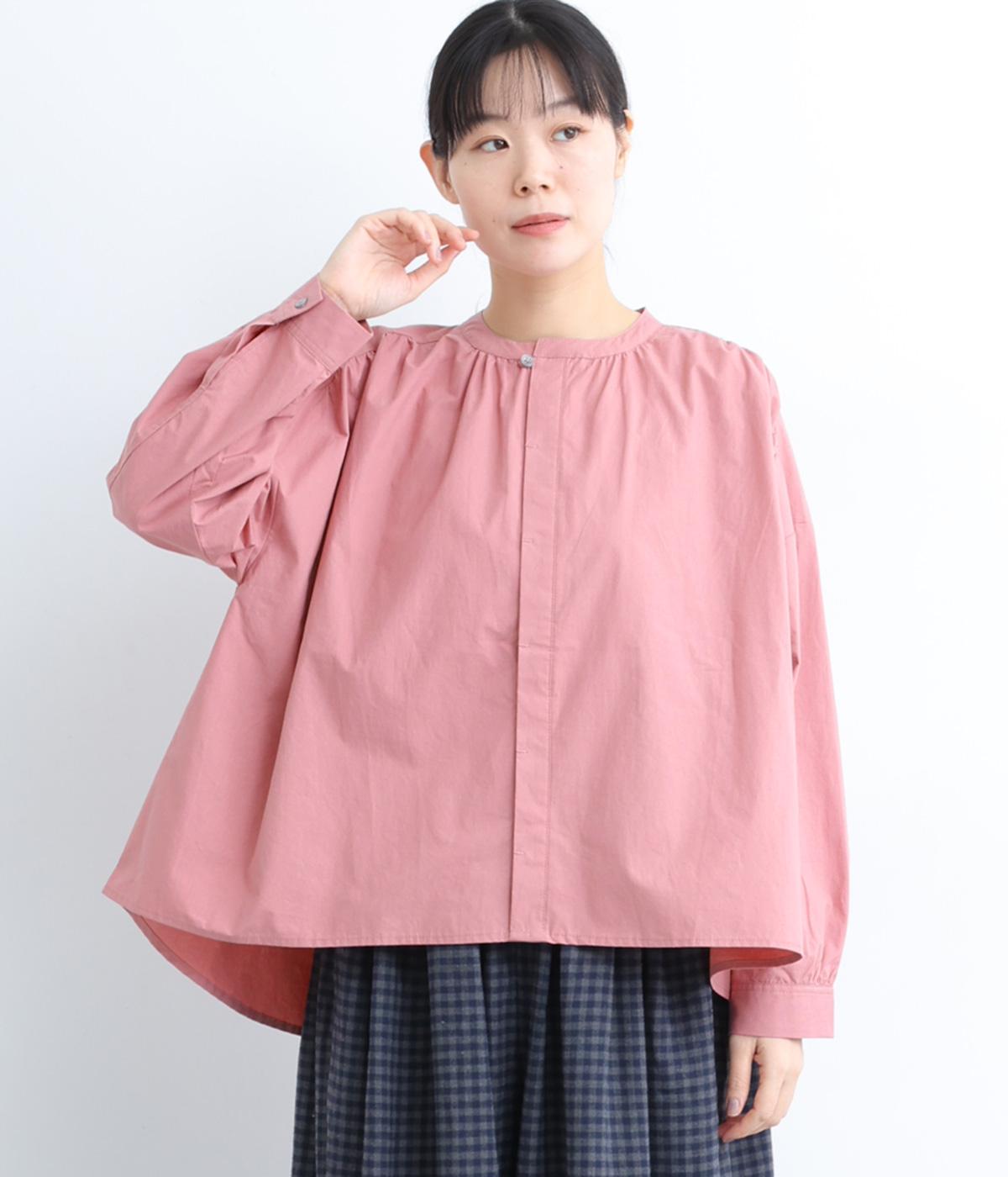 ギャザーをたっぷり入れたフレアシルエットが印象的な一枚。適度にハリのある生地がきれいな立体感を描き、シンプルながらも存在感を発揮。比翼仕立てなのですっきりと着こなせ、羽織りにしたり着まわし力も◎。