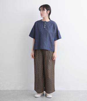 ロールカラー布帛プルオーバー