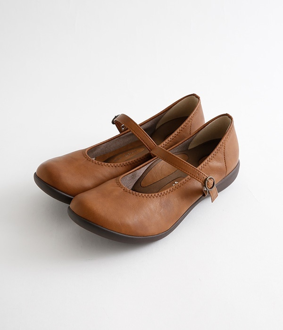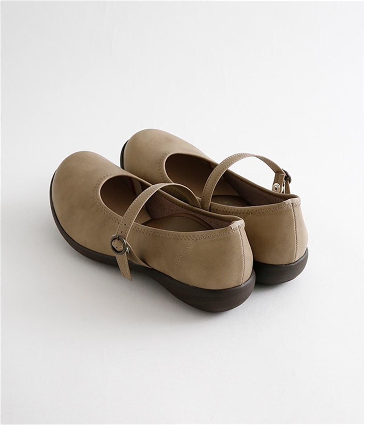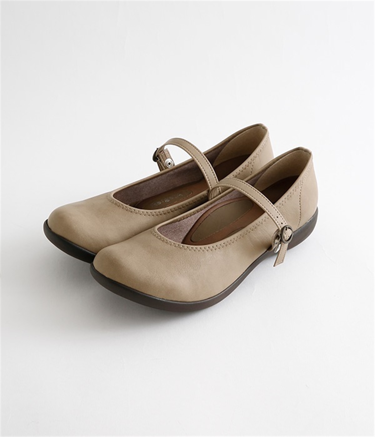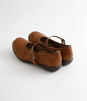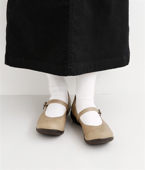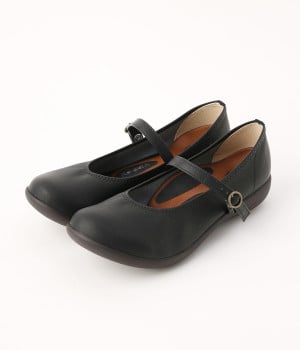 コロンとした丸みのあるフォルムがかわいらしいローヒールパンプスです。足裏のアーチに沿ってフィットするインソールが、足裏にかかる圧力を分散。長時間の歩行でも足の疲れを軽減してくれます。甲ストラップの長さはベルト穴で調節可能。ベルトの裏にはスナップボタンがあり、内側がゴム切り替え仕様なので、脱ぎはきがスムーズにできます。インソールのつま先部分に抗菌防臭素材を使っているのもうれしいポイント。