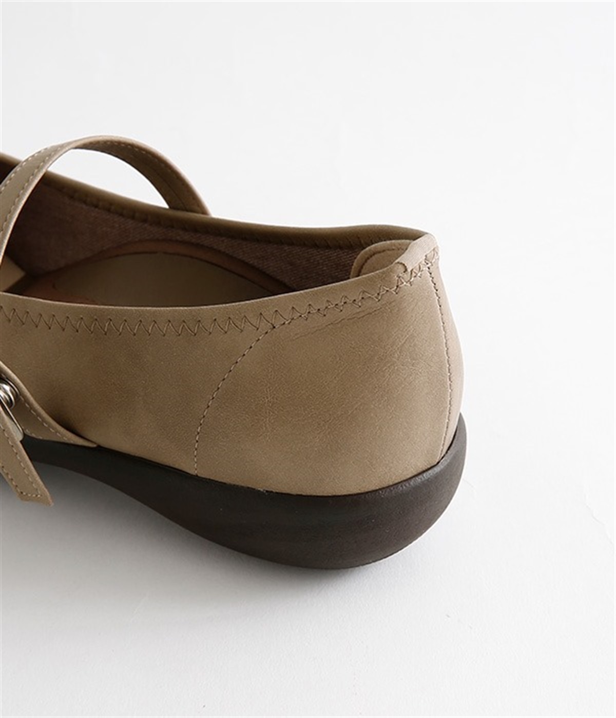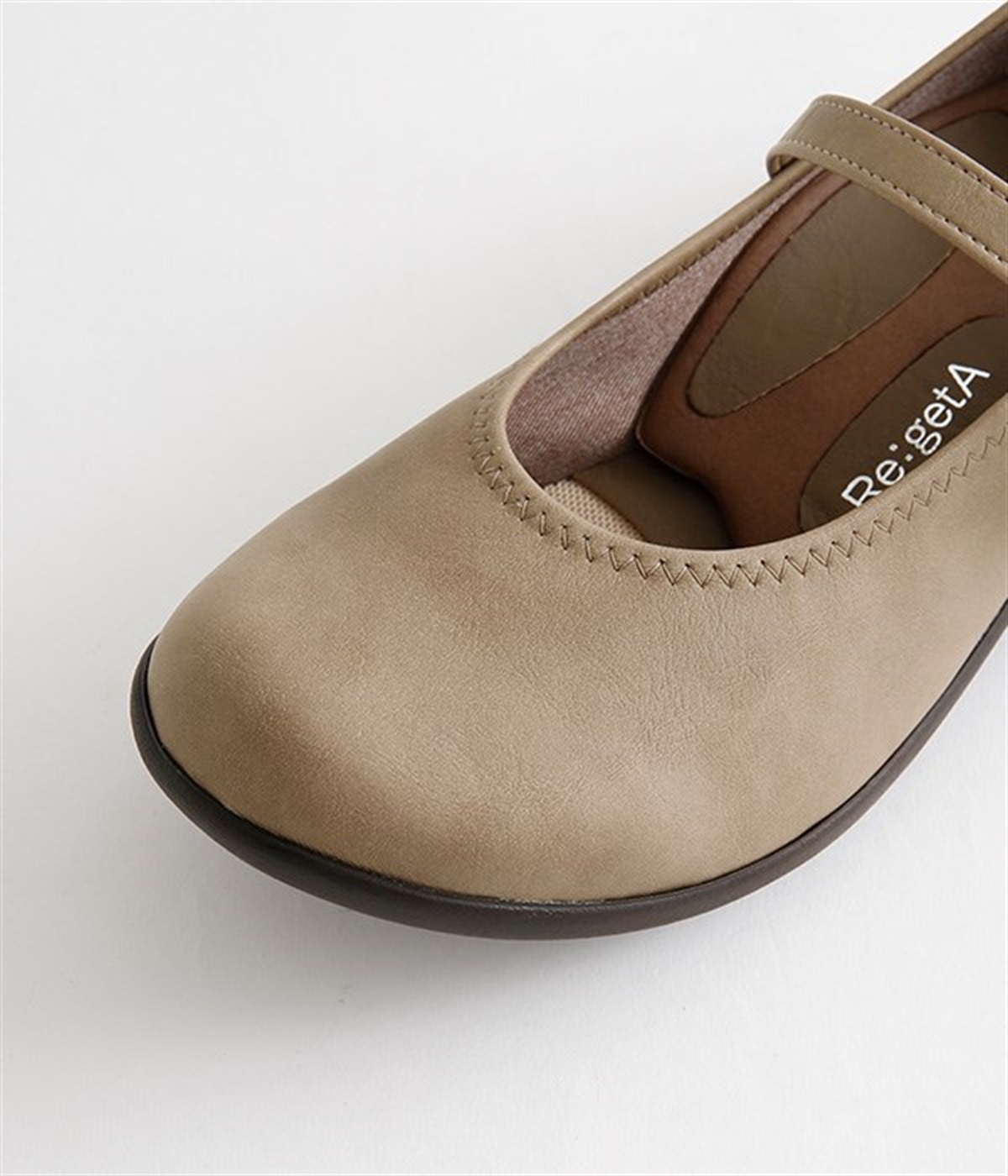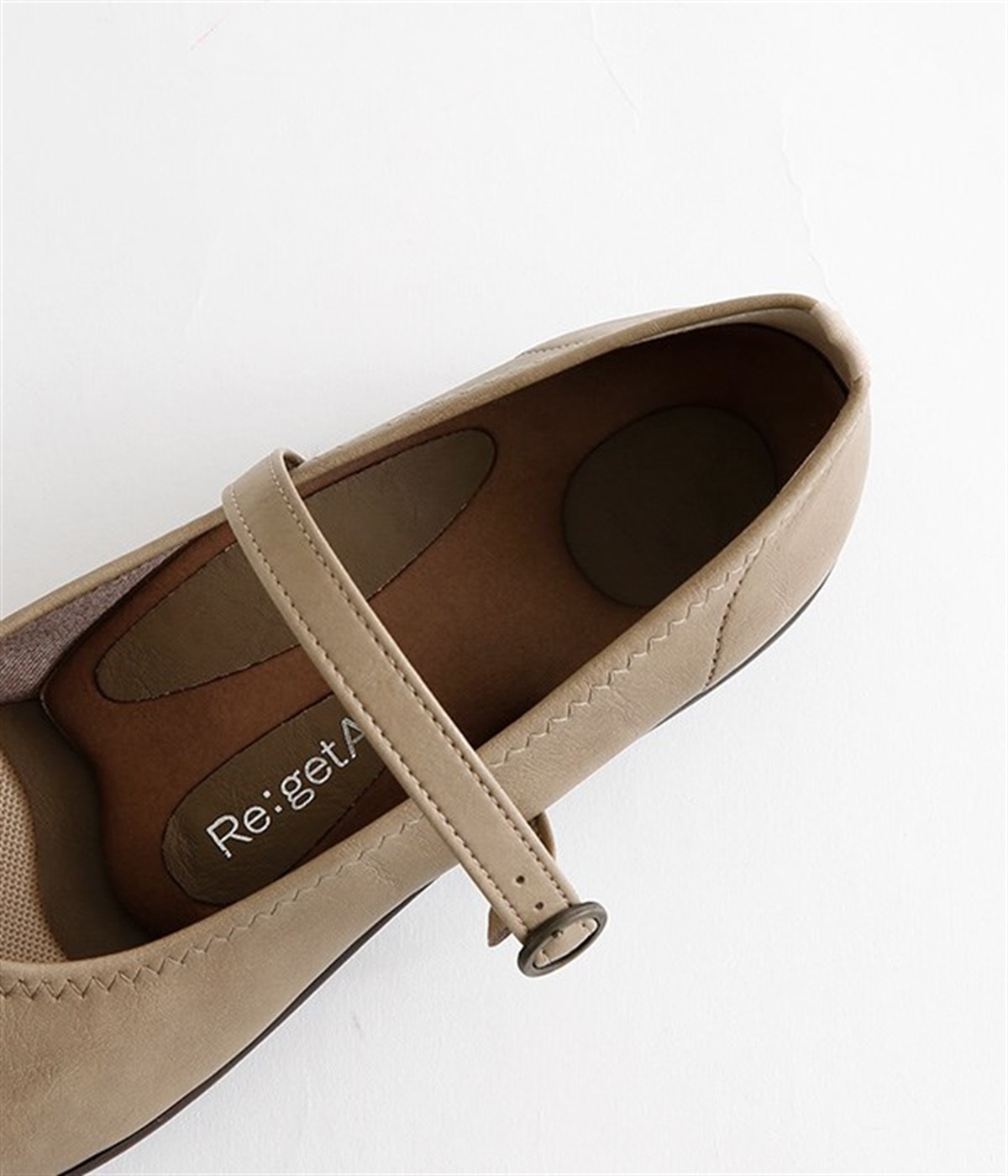 コロンとした丸みのあるフォルムがかわいらしいローヒールパンプスです。足裏のアーチに沿ってフィットするインソールが、足裏にかかる圧力を分散。長時間の歩行でも足の疲れを軽減してくれます。甲ストラップの長さはベルト穴で調節可能。ベルトの裏にはスナップボタンがあり、内側がゴム切り替え仕様なので、脱ぎはきがスムーズにできます。インソールのつま先部分に抗菌防臭素材を使っているのもうれしいポイント。