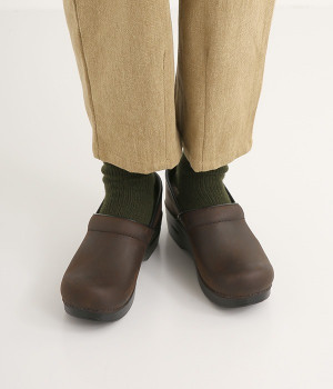 シンプルでトラディショナルなデザインのクロッグ。アッパーには独特の風合いがある、上質なレザーを使用しています。アウトソールのポリウレタンソールが衝撃を吸収し、弾力性にも優れているため快適な歩行をサポートします。素足にさらりと履くのはもちろん、ソックスやタイツでアクセントをプラスしたスタイリングもおすすめです。