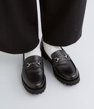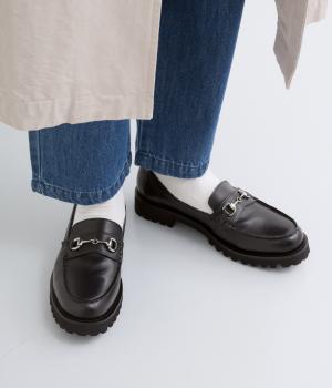 ビットデザインが上品さを引き立てるローファー。タンクソールが安定感をもたらし、実用性も兼ね備えた一足です。ほどよいボリュームがありながらもシンプルな佇まいで、オンオフ問わず幅広いスタイリングに活躍します。