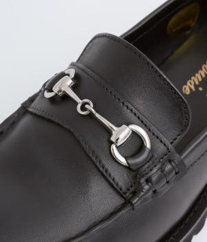 なめらかな牛革に上品なビットデザインをあしらいました。底には安定感と存在感を両立するタンクソールを合わせました。