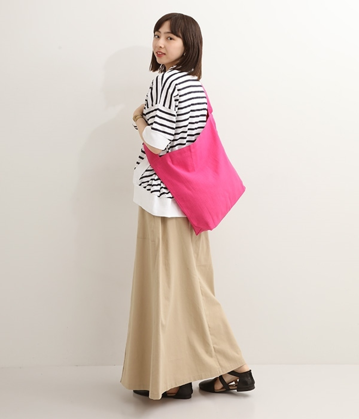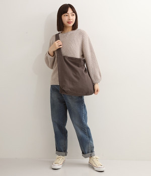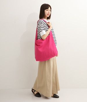 中身を厳選せずにたっぷり入れられる大容量サイズのショルダーバッグ。ビッグシルエットなので実際にスタイリングにプラスすると華奢見えを狙えます。A4サイズもラクラク入るためつい荷物が多くなりがちな方にもうってつけ。体にやさしくなじむコットン素材を使用しています。ショルダー部分は太幅に設定して肩への負担がかかりにくいよう配慮。いつものスタイルにスッと溶け込むシンプルさがうれしいアイテムです。