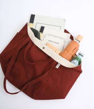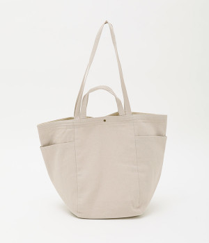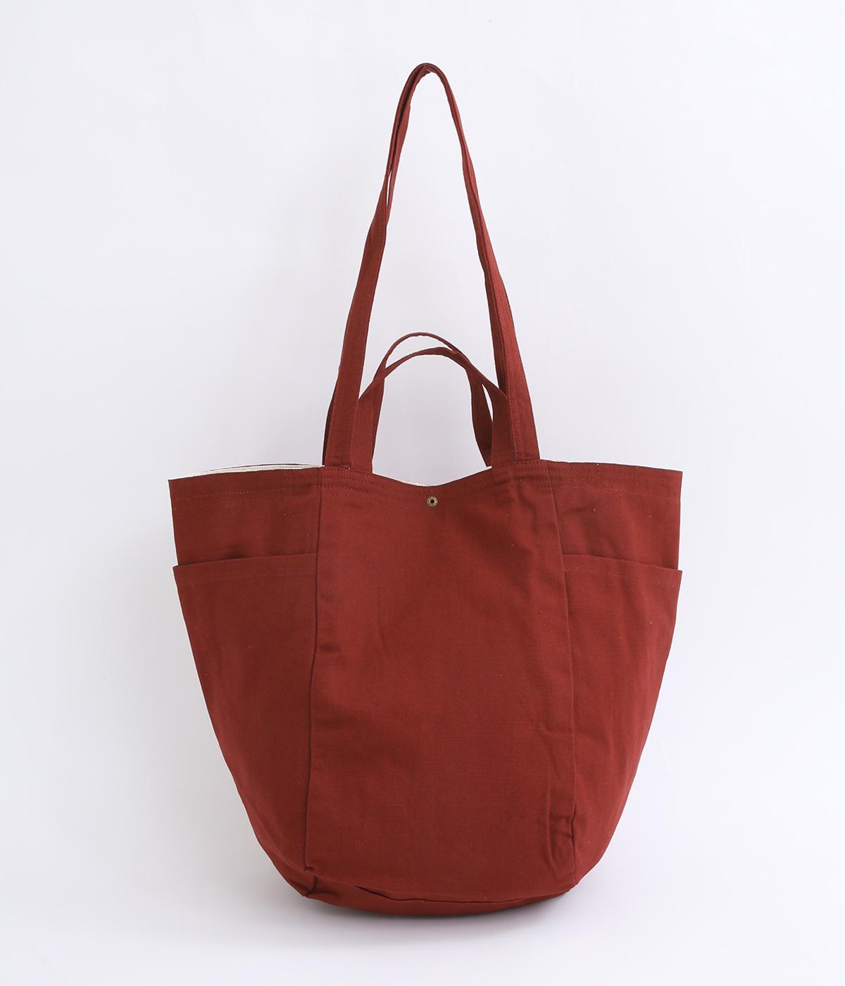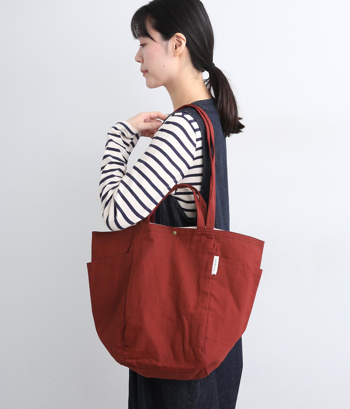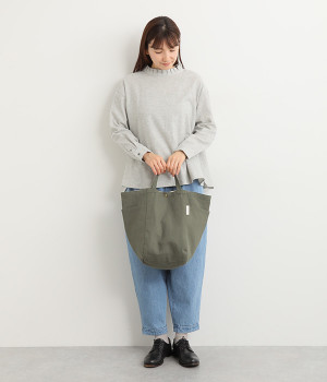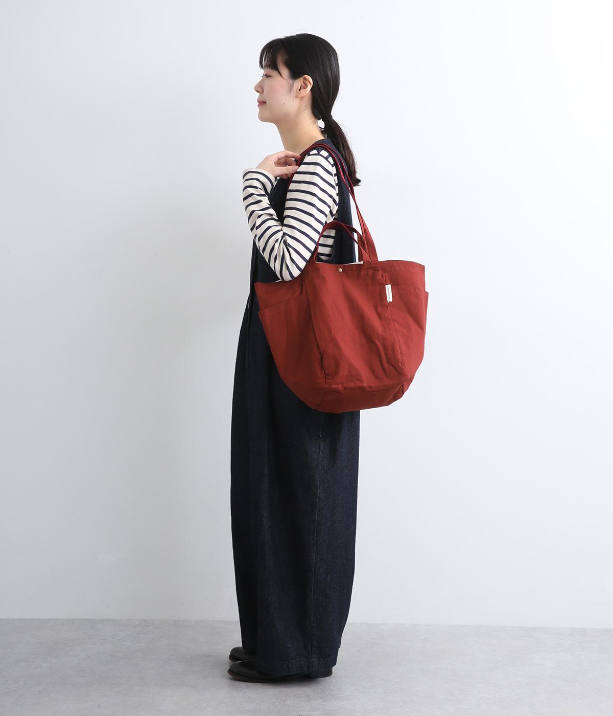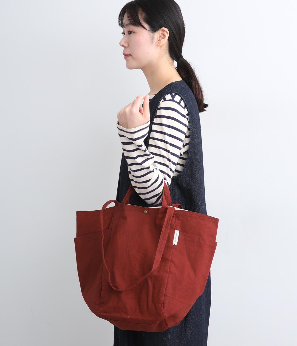 丸みのあるフォルムとソフトな質感が心地いいバッグ。手持ちにも肩掛けにもなるので、シーンに合わせて使い分けられます。マチが広くたっぷり収納できるうえ、サイドにもオープンポケットつき。間口はスナップボタンで閉じられる安心設計です。