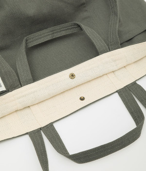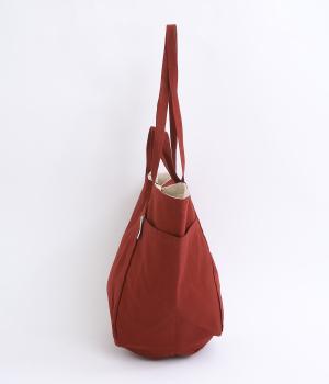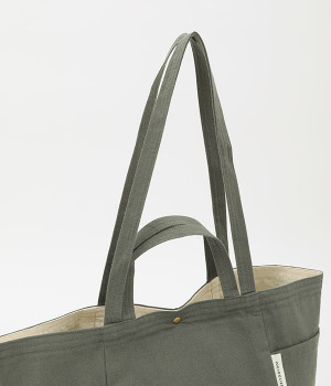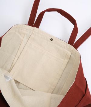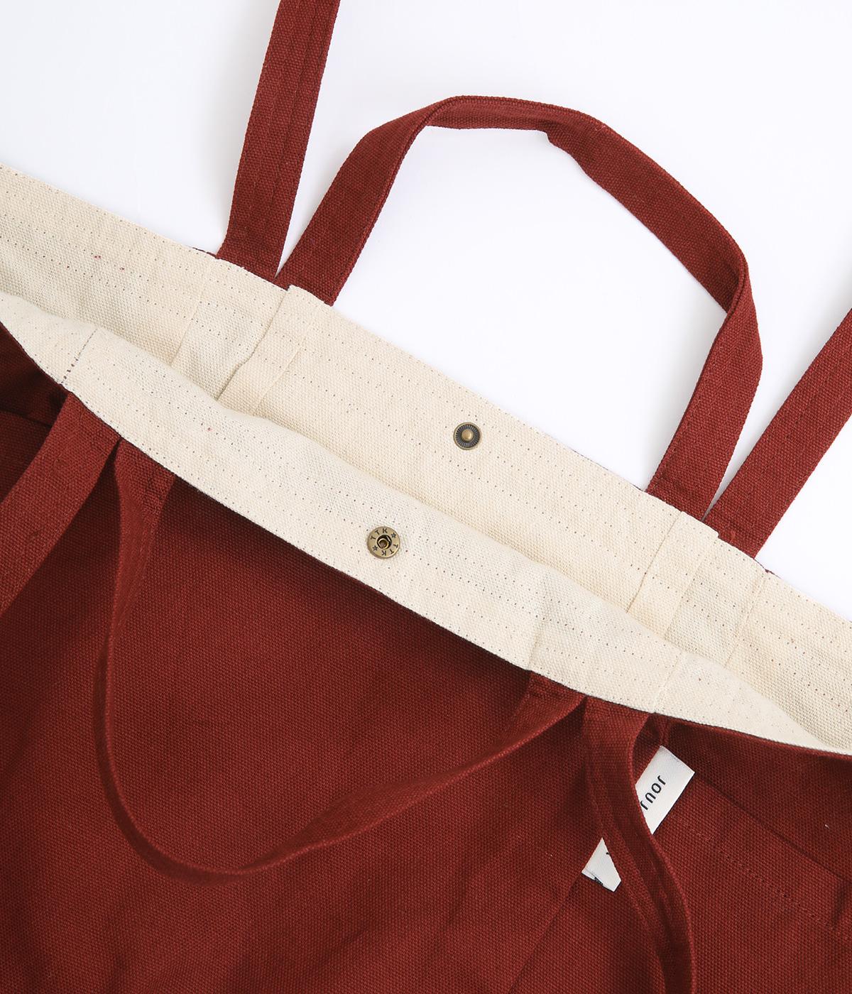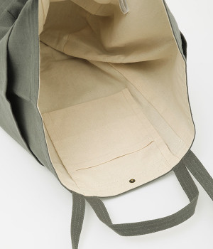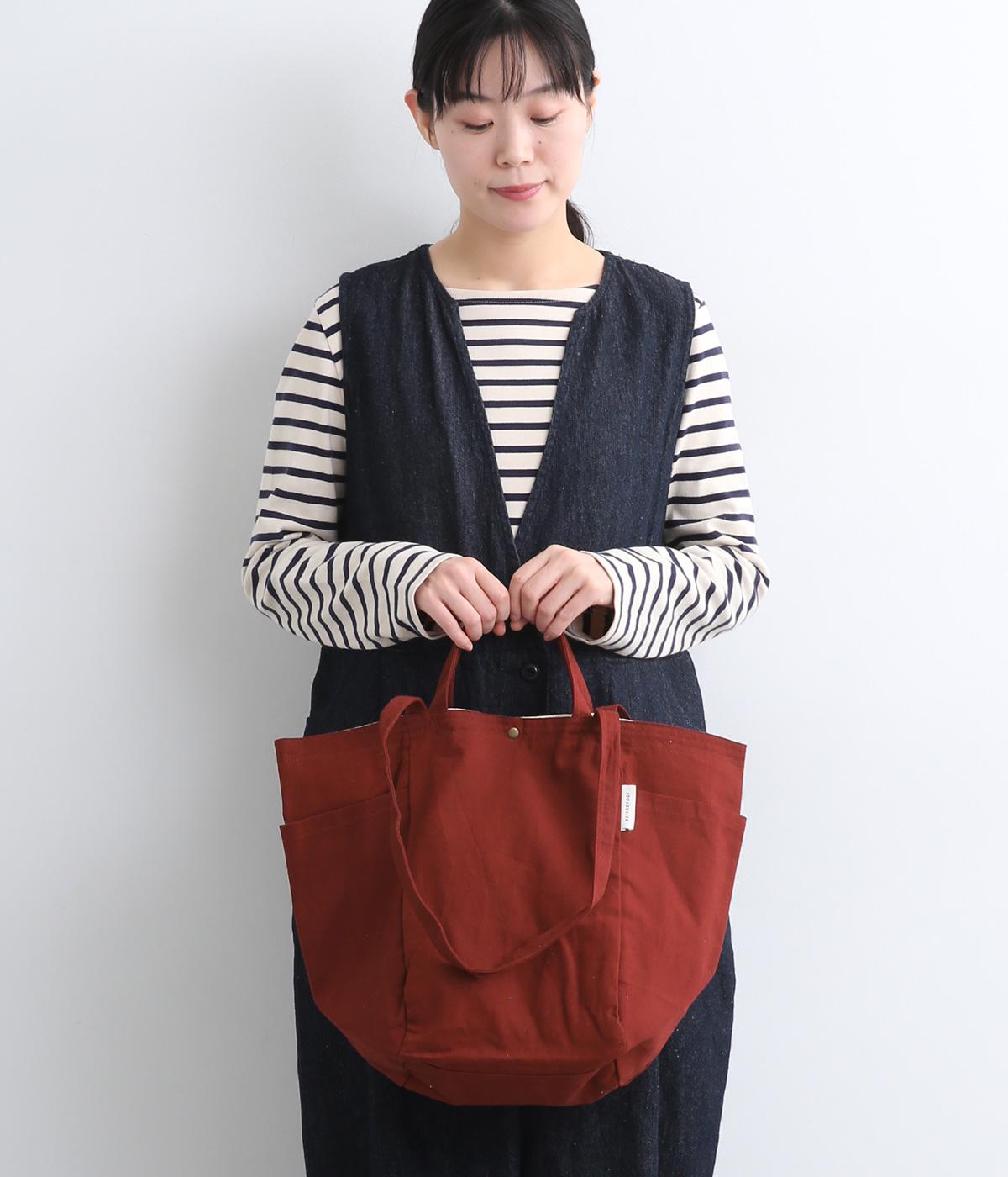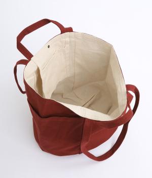 やわらかくくったりとした質感で、なじみよいコットン素材。裏地は物を出し入れしやすいよう、さらっとドライな質感です。