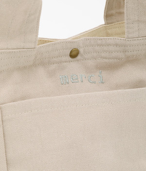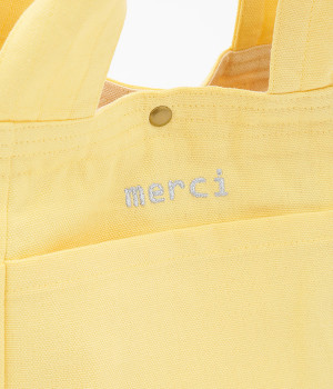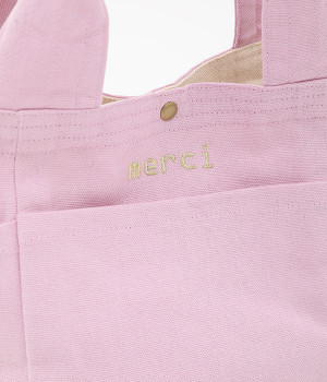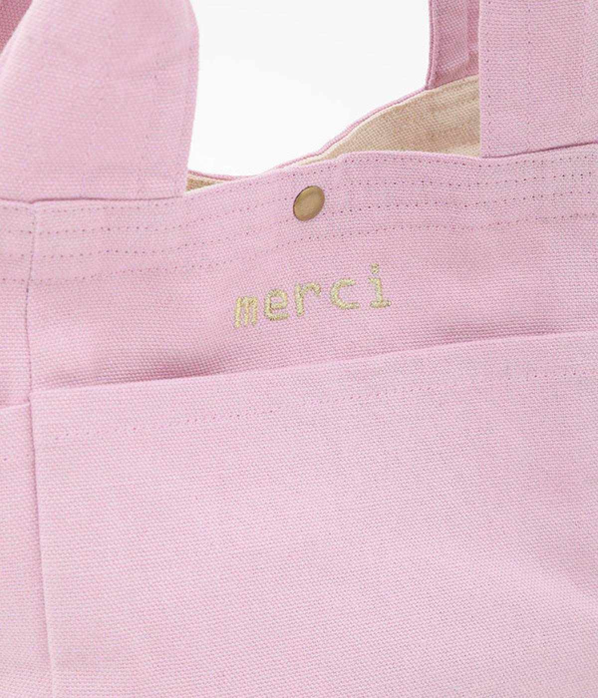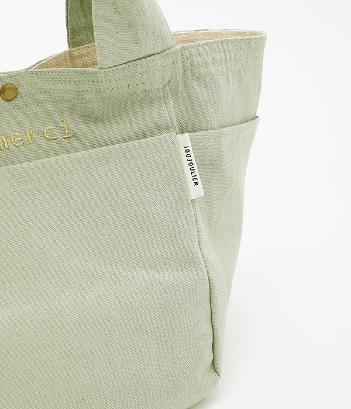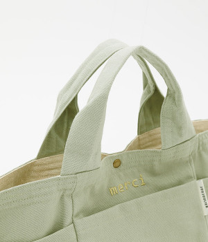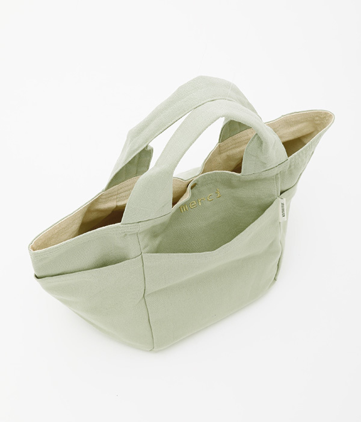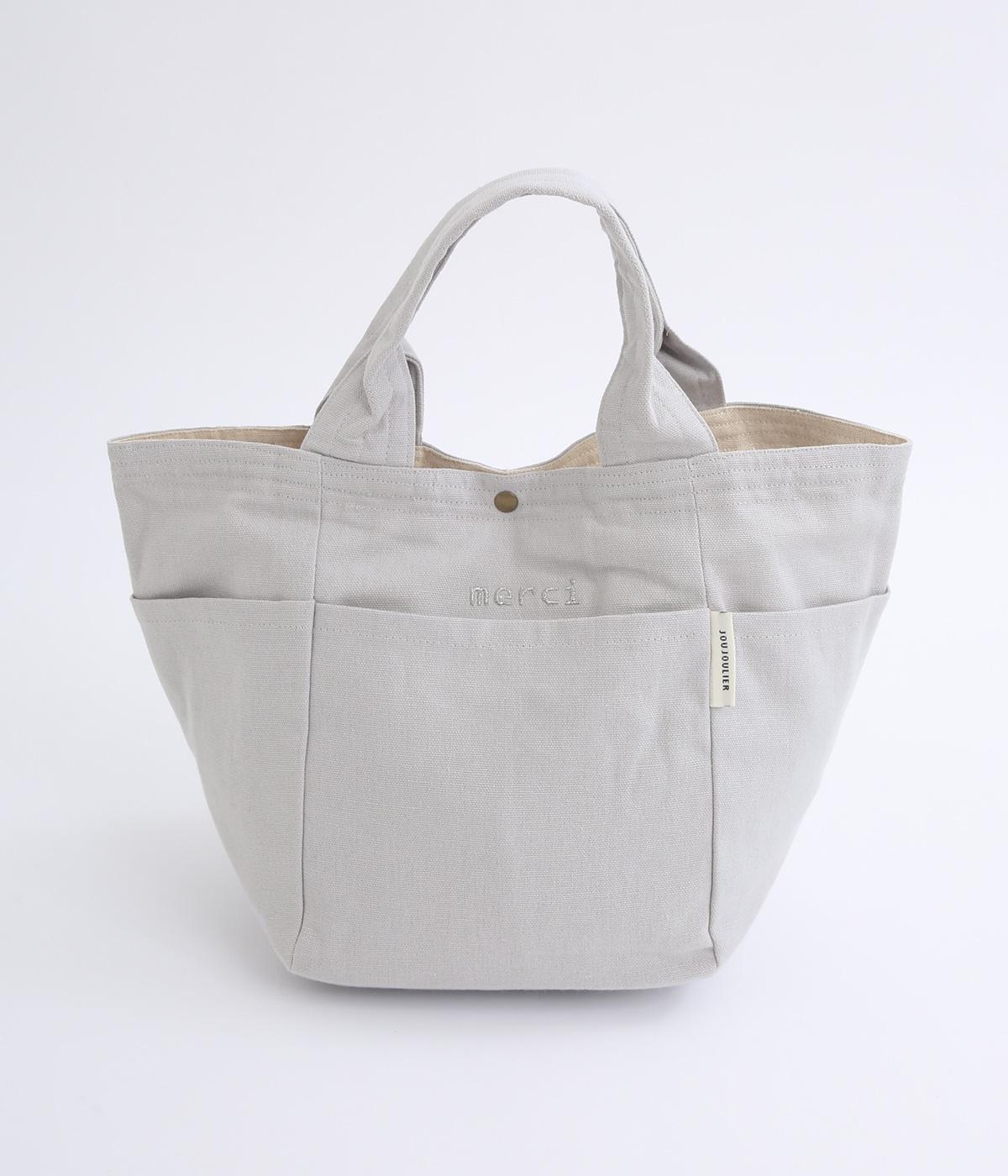 間口を広くとった舟形のバッグ。ランチトートとしてお弁当箱もすっぽり入るのはもちろん、マチが広いのでちょっとしたお出かけ用としても重宝します。外側に3つ。内側に1つポケットがついているので、整理整頓もしやすいです。