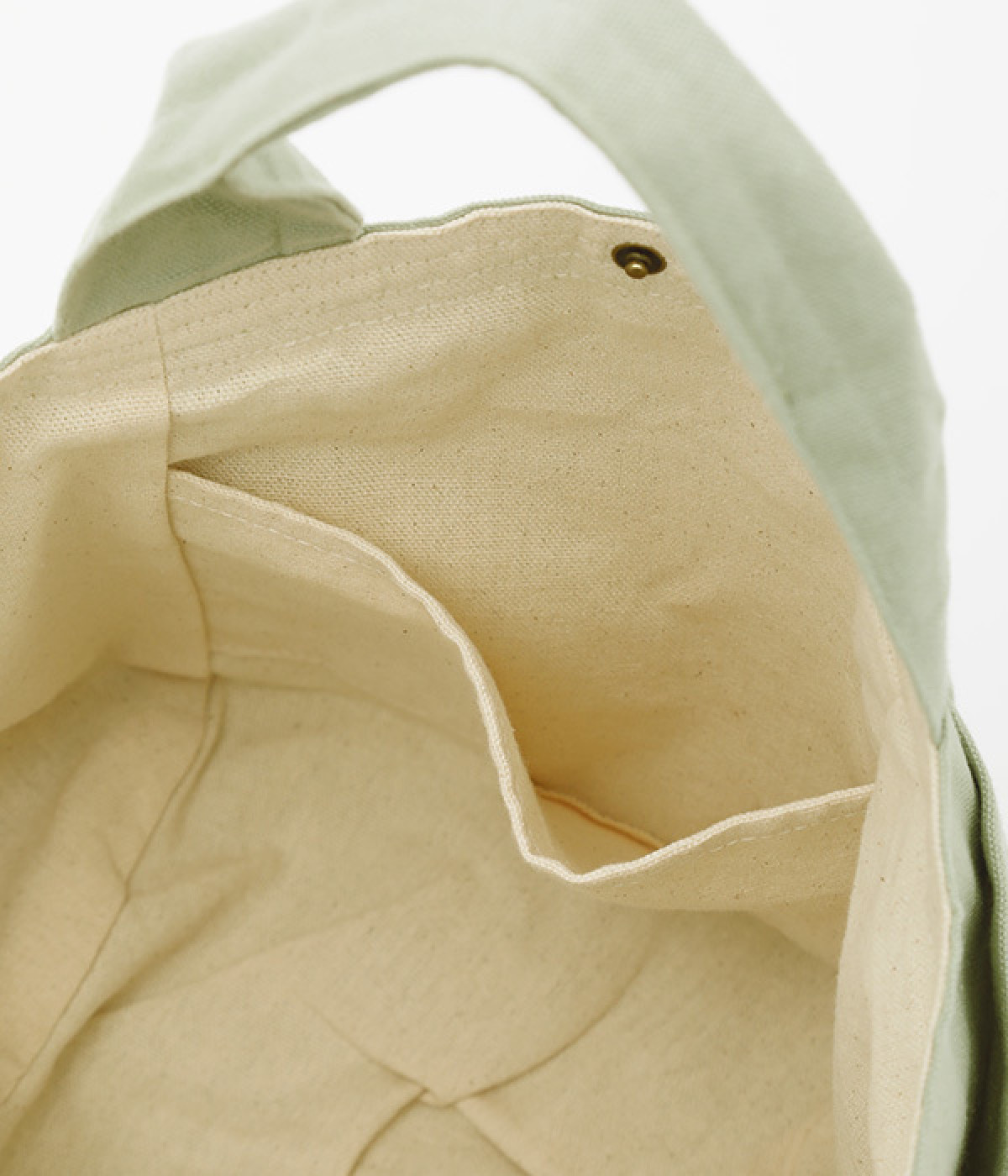 やわらかくくったりとした質感で、なじみよいコットン素材。裏地は物を出し入れしやすいよう、さらっとドライな質感です。