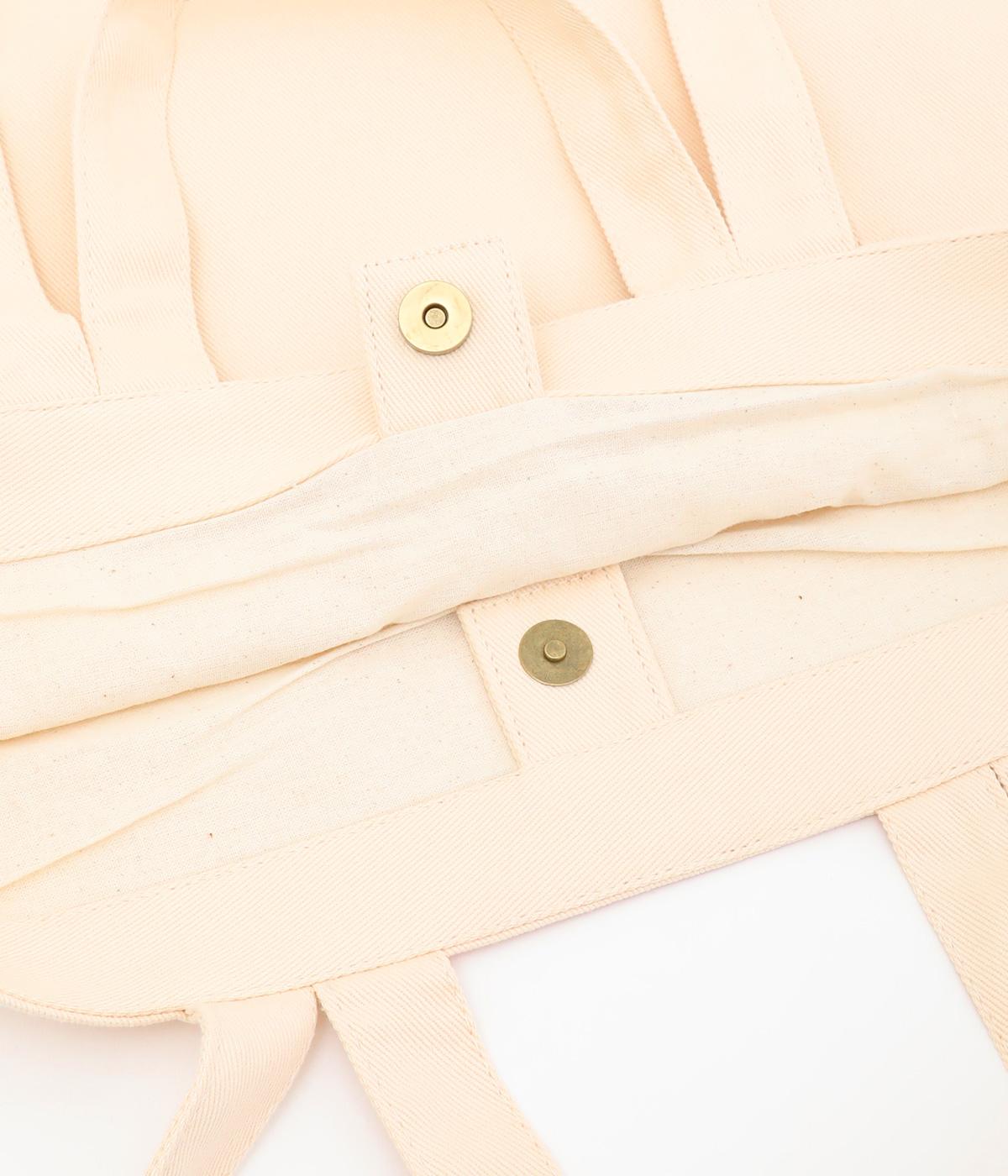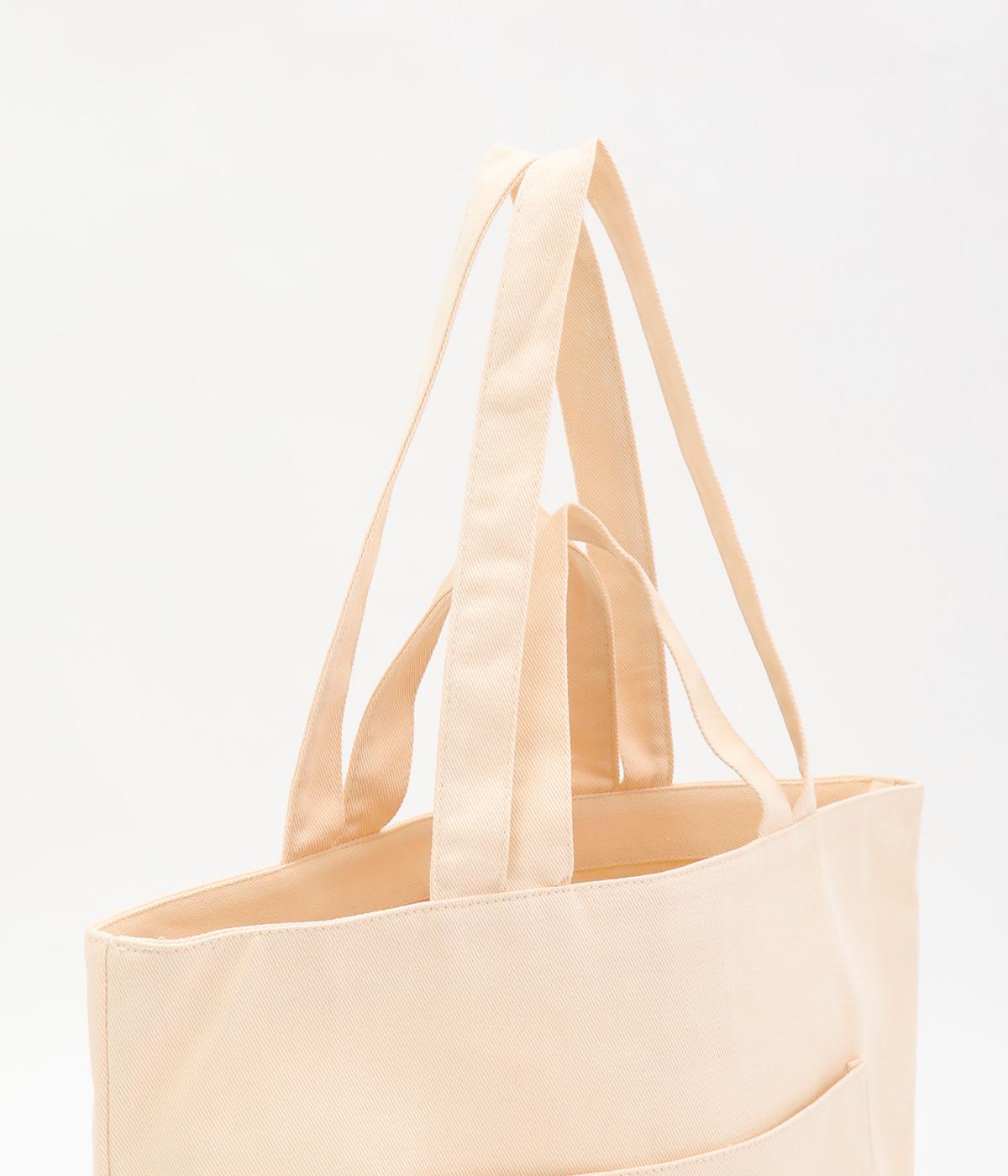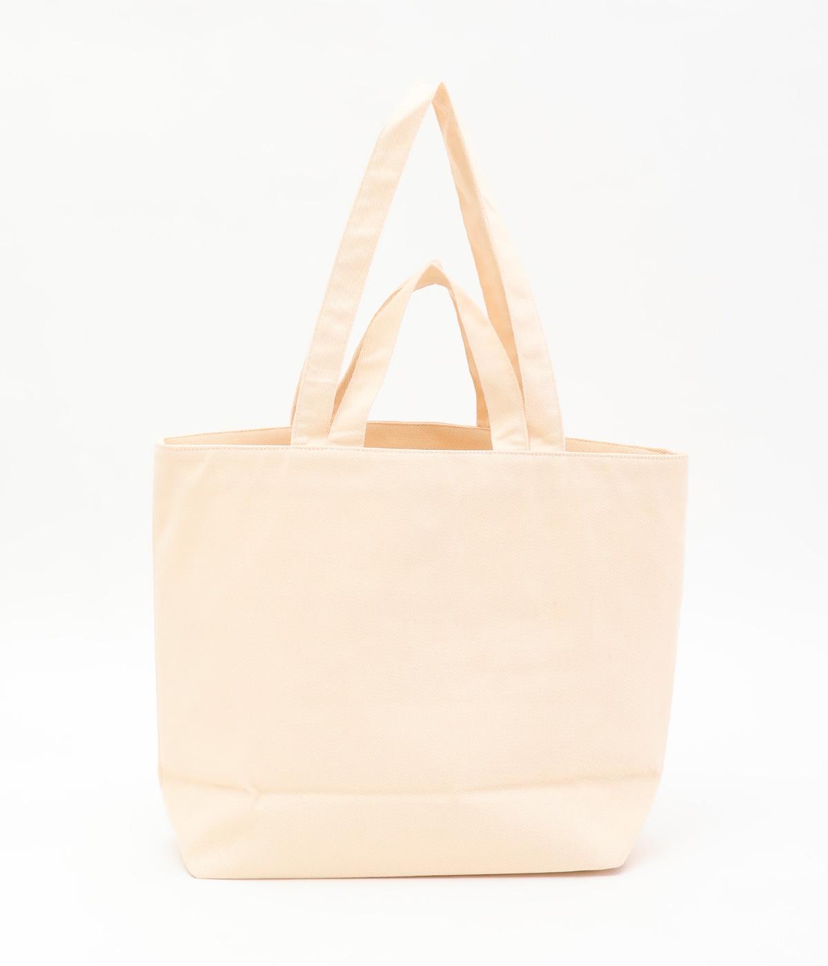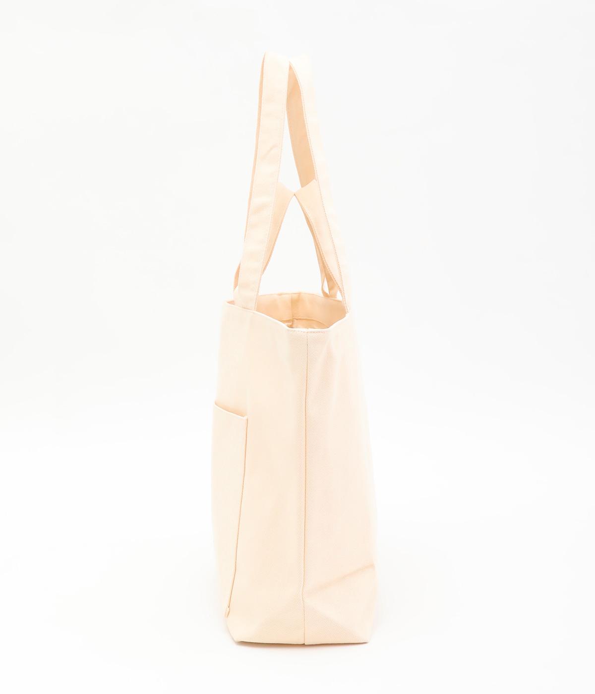 肩掛けも手提げもできるよう、2種のハンドルをつけた2way仕様のトートバッグです。大きめのマチつきで収納力も抜群なので、普段のお買い物やお出かけにも最適。内側にはドリンクホルダーつきでマザーズトートとしても活躍。
