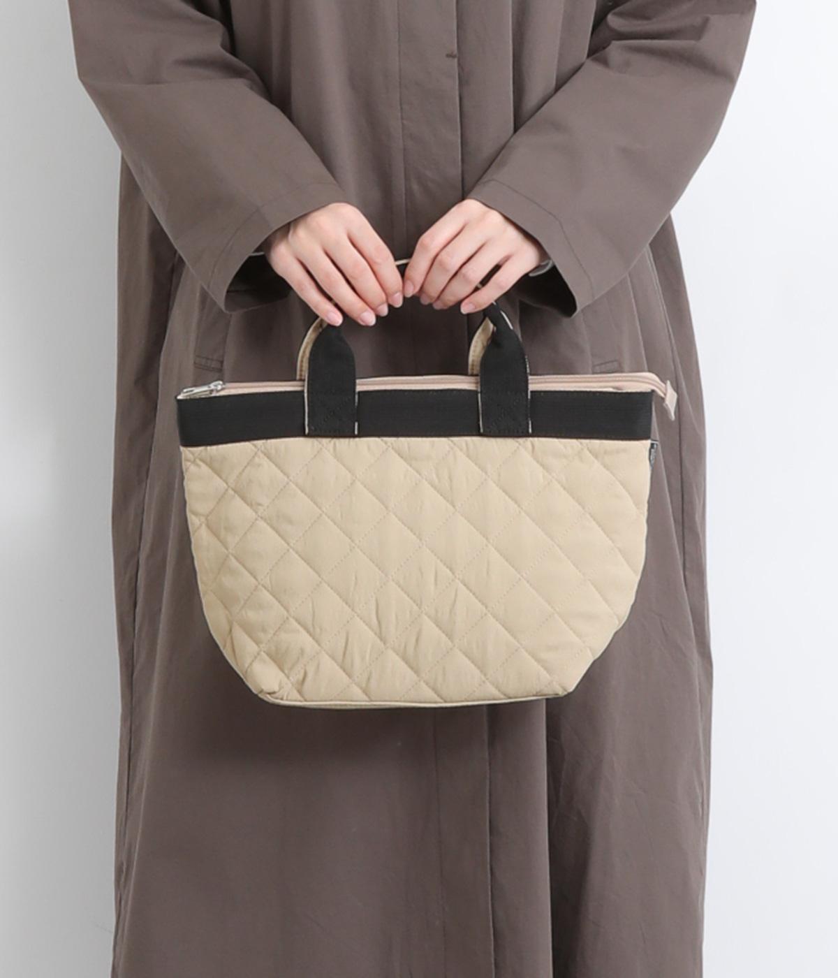毎日にちょうどいいサイズのキルティングミニトート。荷物をさっと取り出せるトップポケットにくわえ、内側にも3つのポケットを備えた充実の収納力です。軽くて持ちやすく、広めのマチがついているので、自立するのもうれしいポイント。ナチュラルな風合いで、カジュアルにもきれいめにも合わせやすい万能なバッグです。