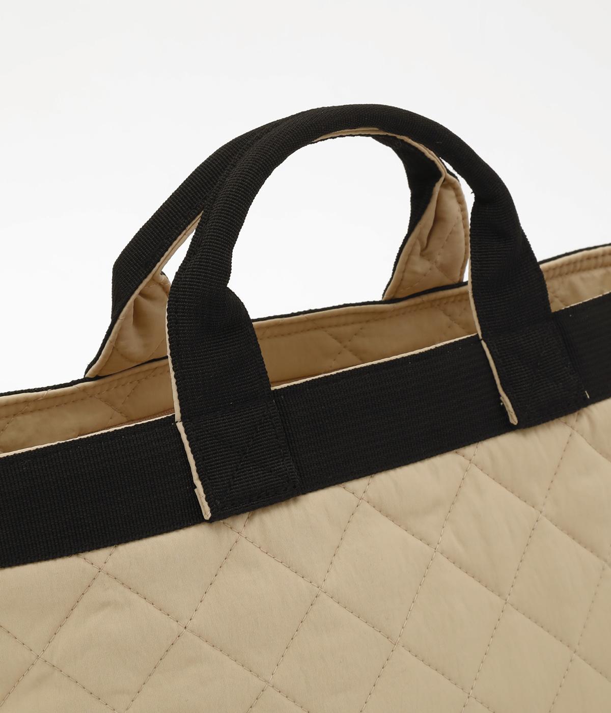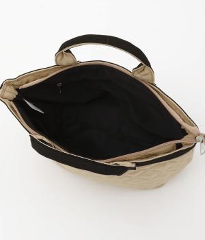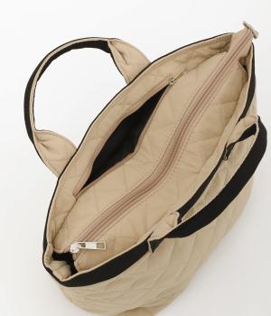 軽くて丈夫なナイロン素材を使用したキルティング生地。さらりとした質感で汚れにくく、普段使いにも安心です。ほんのりとした厚みがあり、荷物をやさしく守ります。