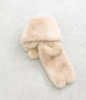 軽くてやわらかなポリエステルのフェイクファーを使用しました。ふんわりとした毛並みがやさしく首元を包み込み、まるで本物のネコちゃんを抱きしめているようなぬくもりを感じます。